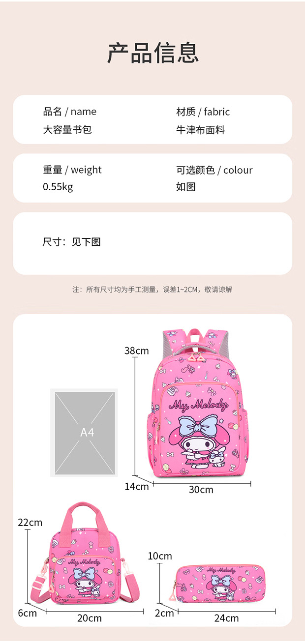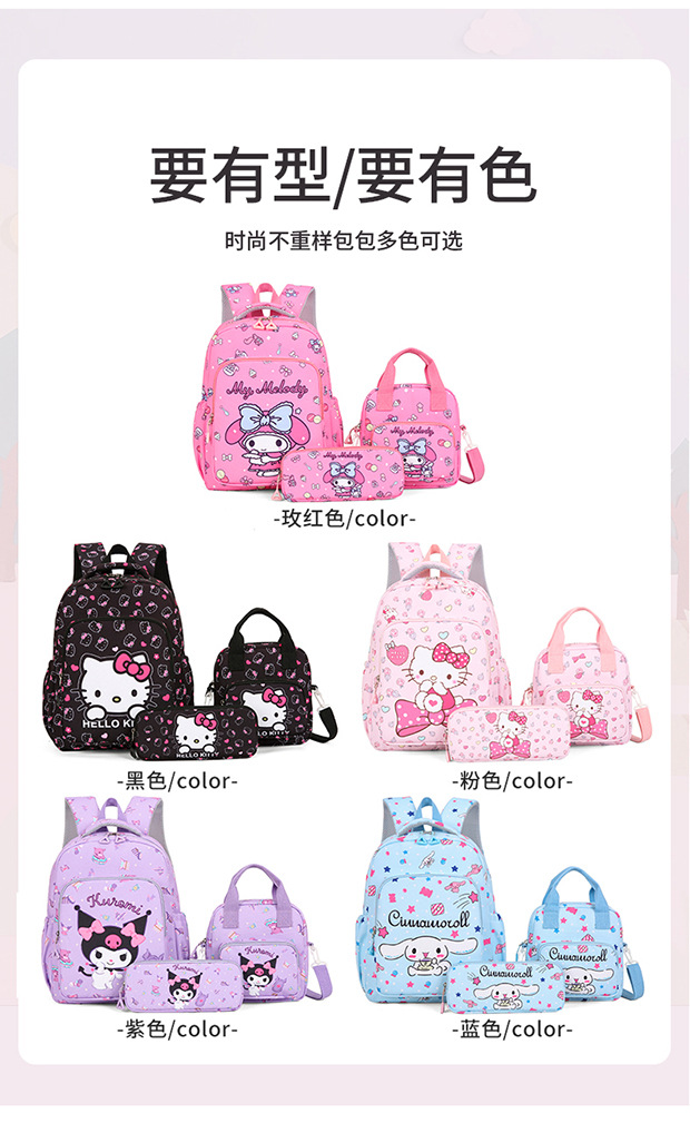 국경을 넘나드는 산리오 프린트 배낭 3피스 대용량 학생용 가방