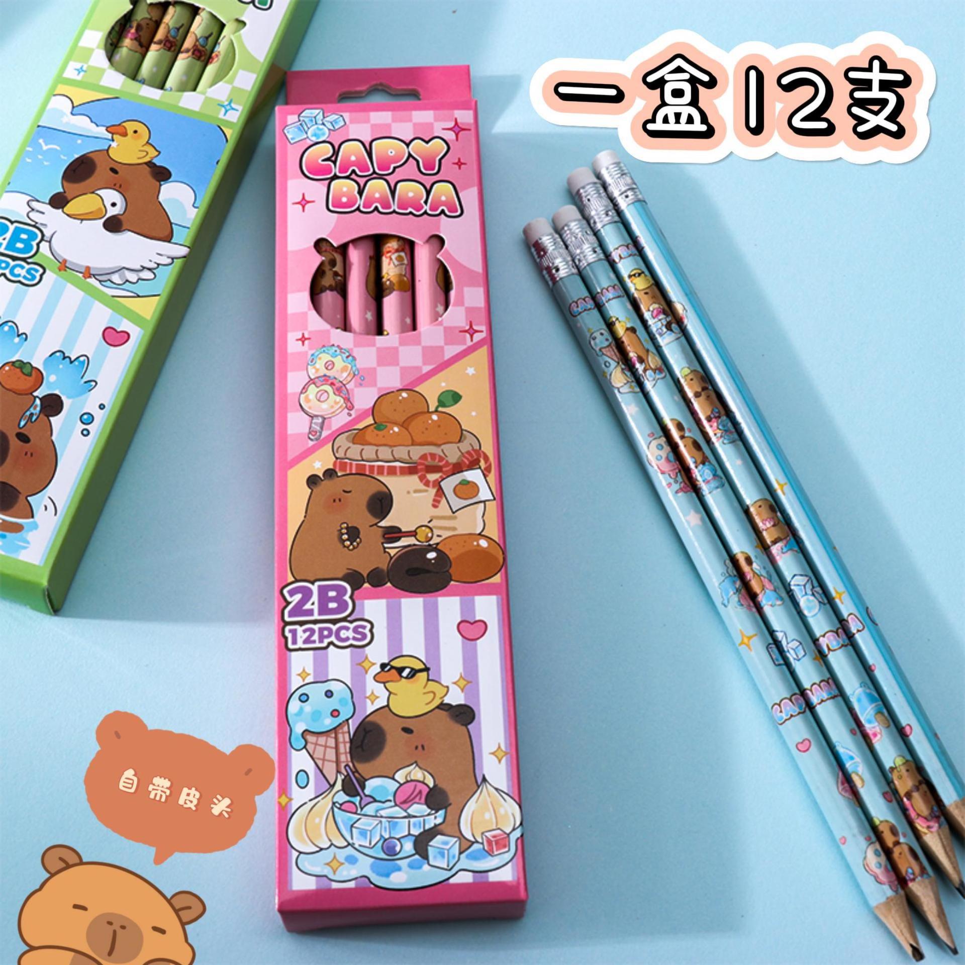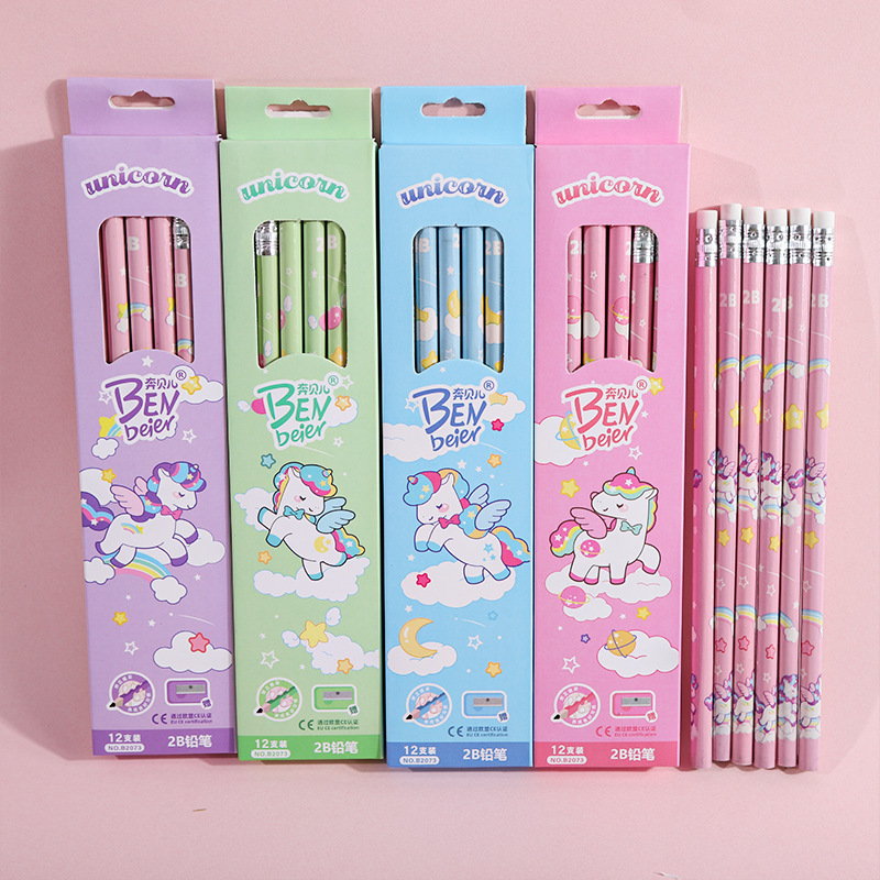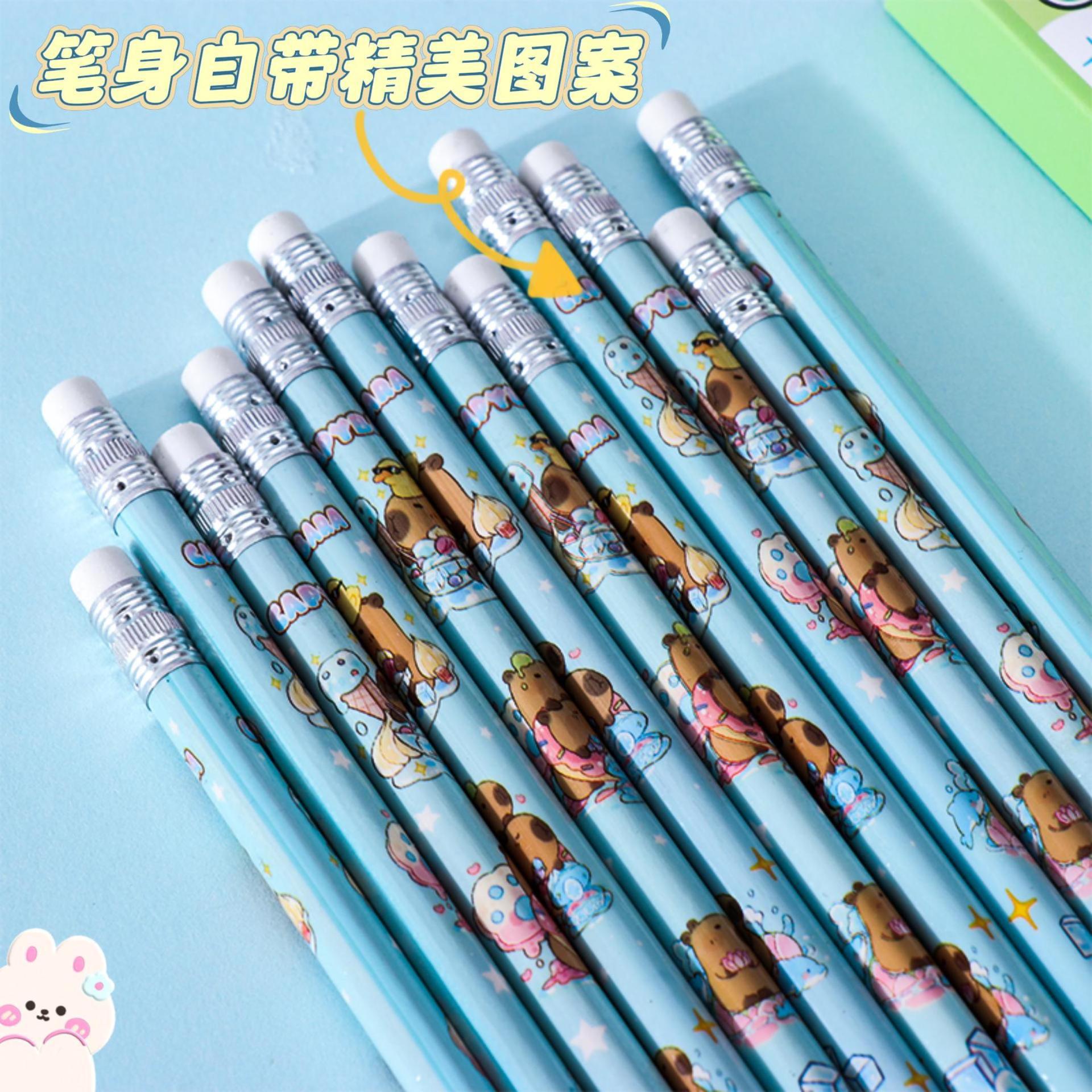 만화 귀여운 연필 12 박스형 초등학생 서예 연습 연필 지우개가있는 HB 연필 문구 도매스토어 가기