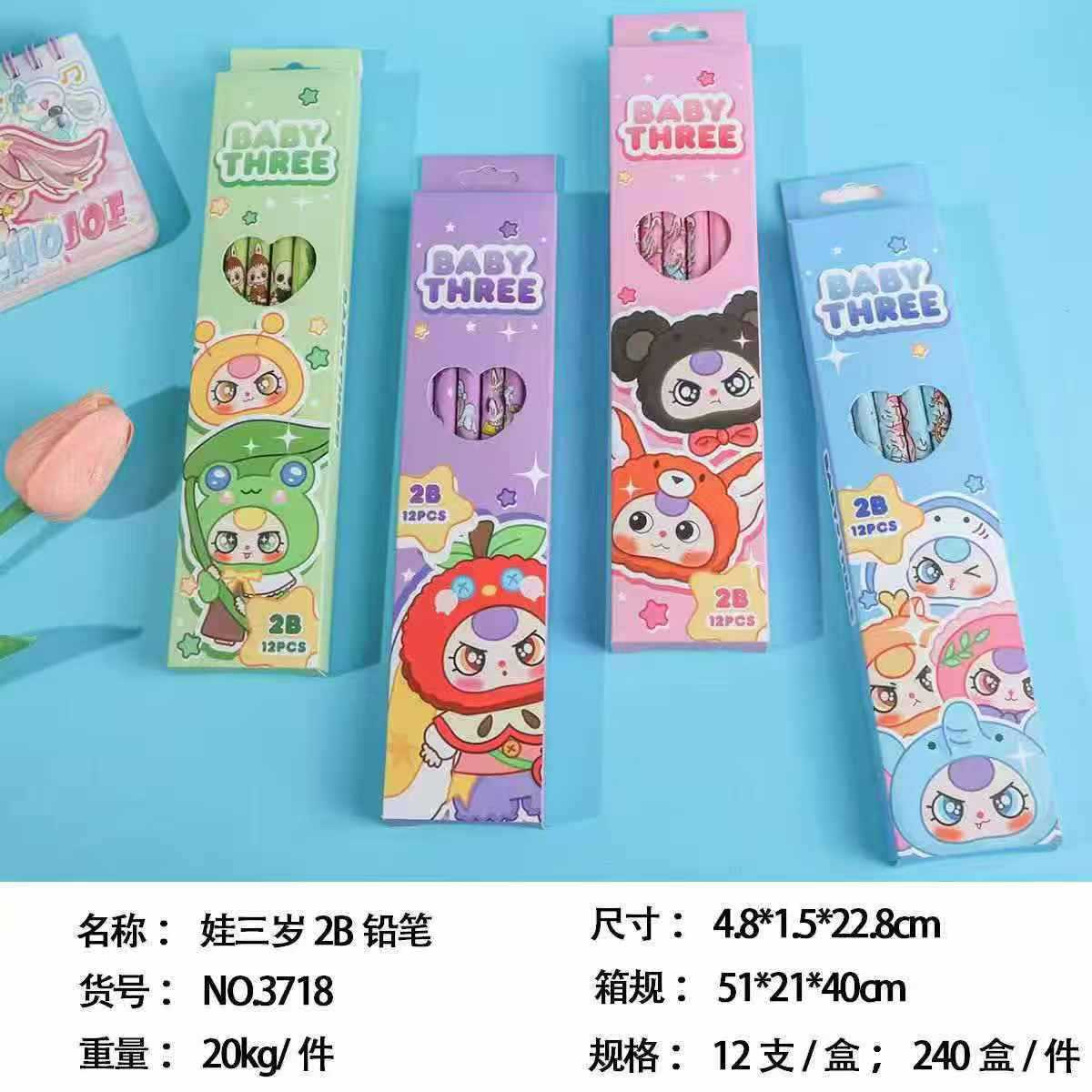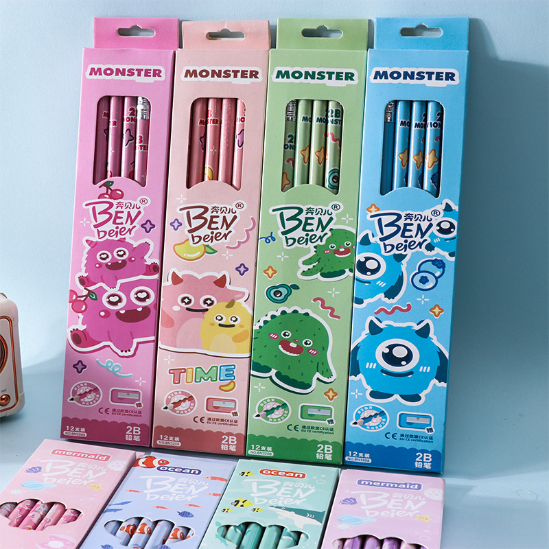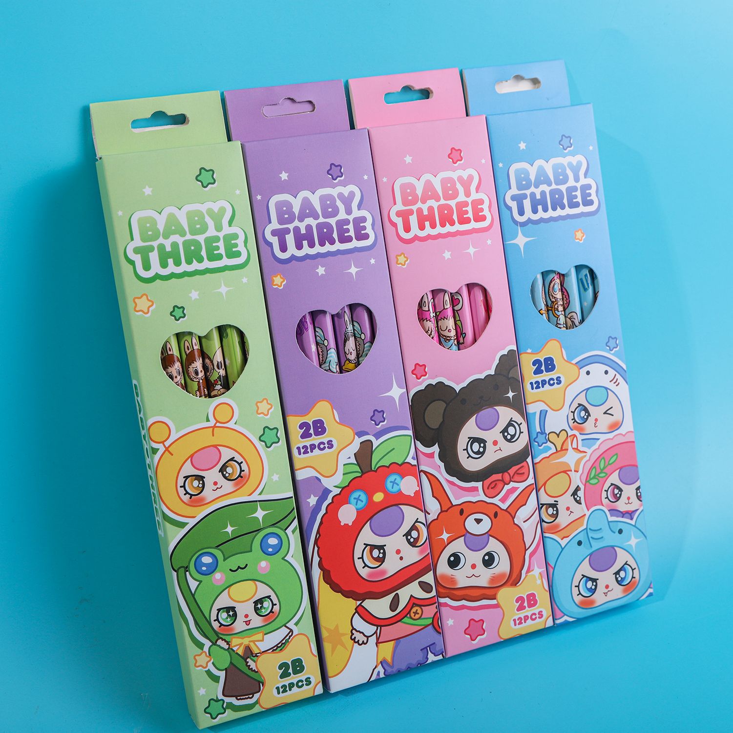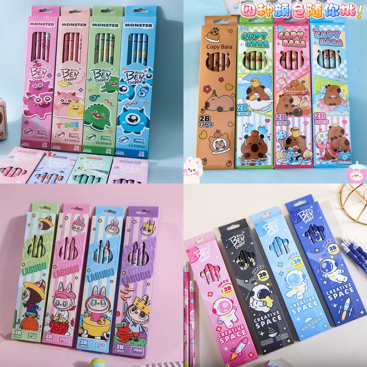 만화 귀여운 연필 12 박스형 초등학생 서예 연습 연필 지우개가있는 HB 연필 문구 도매스토어 가기