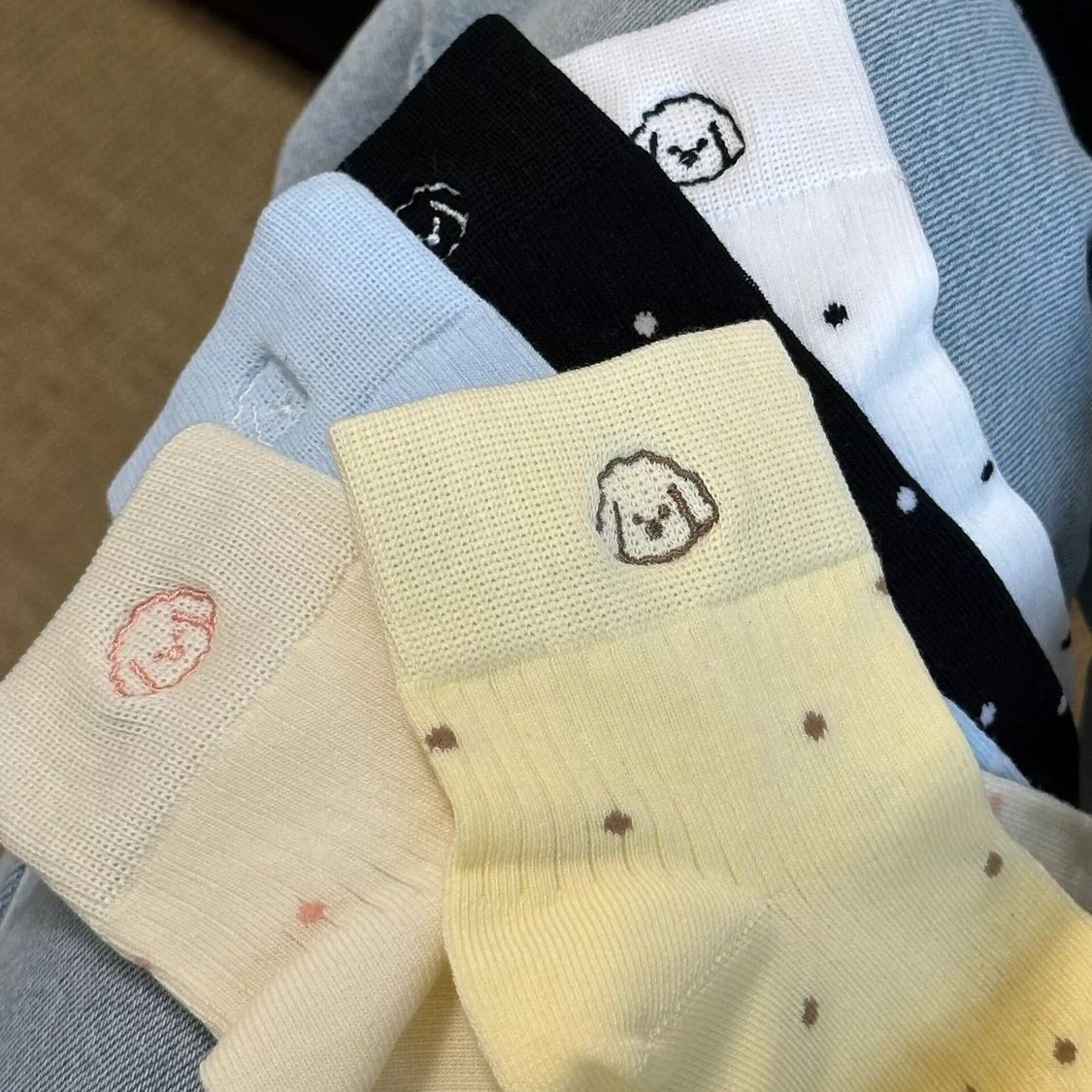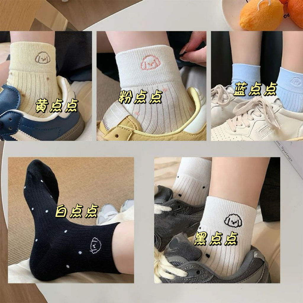 봄, 가을, 겨울용 강아지 무늬 일본식 중목 양말, 세로 줄무늬, 물방울 무늬, 통기성, 빈티지 스타일, 숏 튜브, 여학생 스타일, 여성용 양말 도매스토어 가기