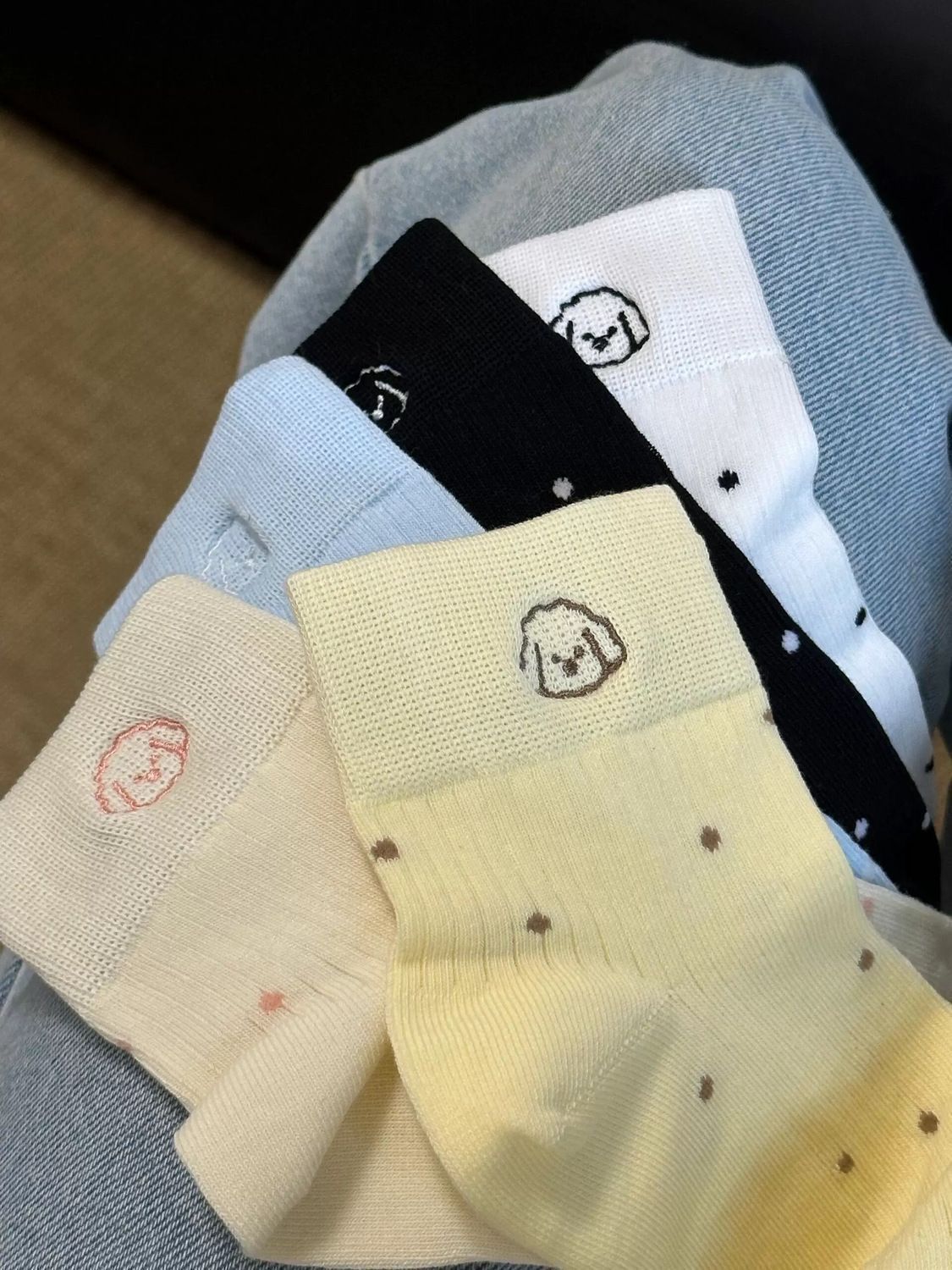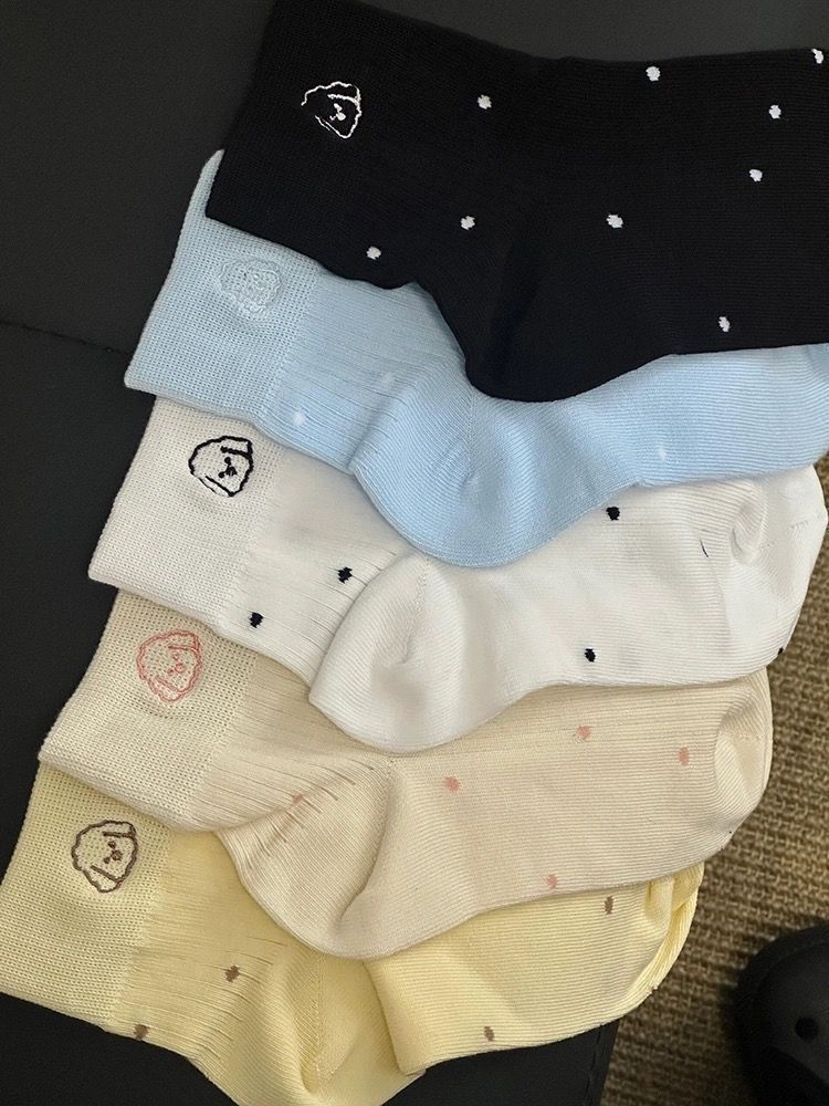 봄, 가을, 겨울용 강아지 무늬 일본식 중목 양말, 세로 줄무늬, 물방울 무늬, 통기성, 빈티지 스타일, 숏 튜브, 여학생 스타일, 여성용 양말 도매