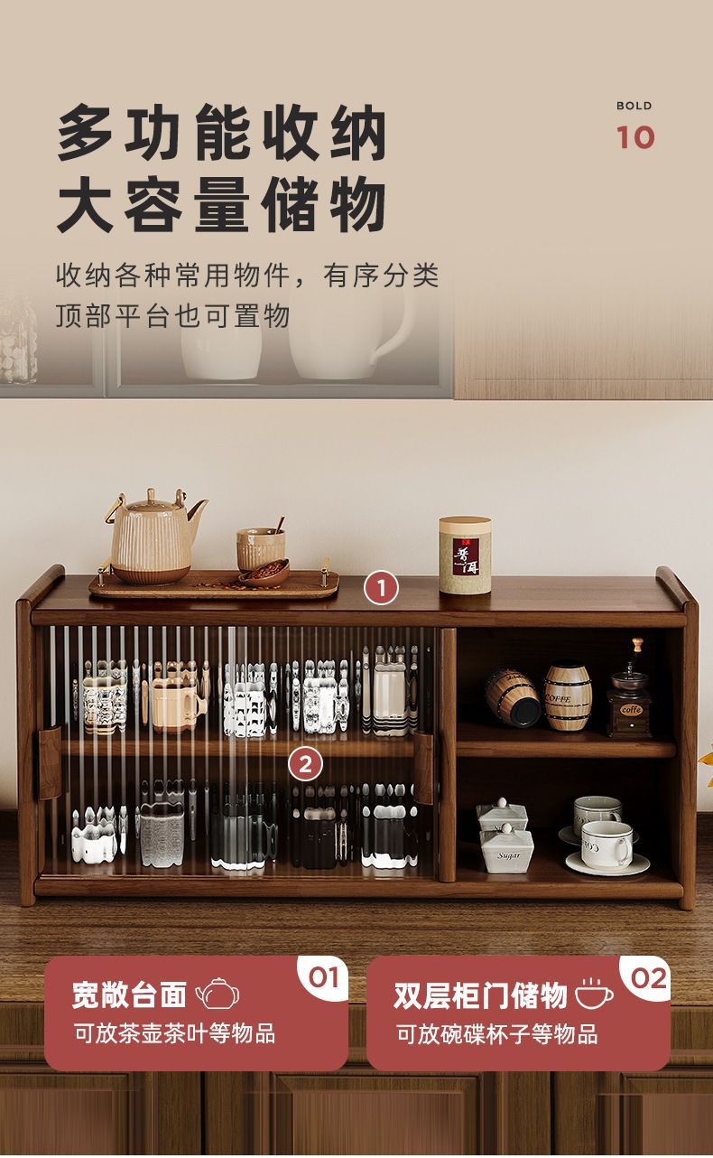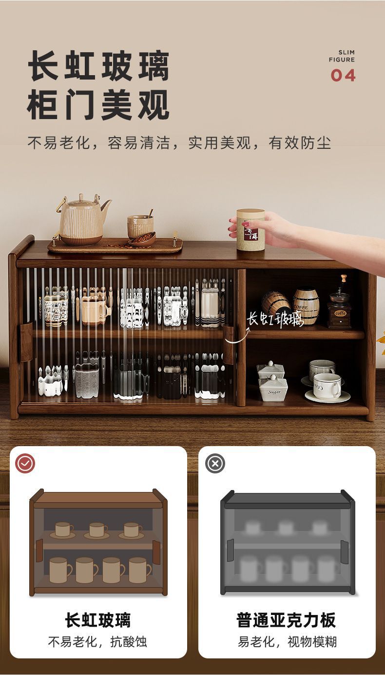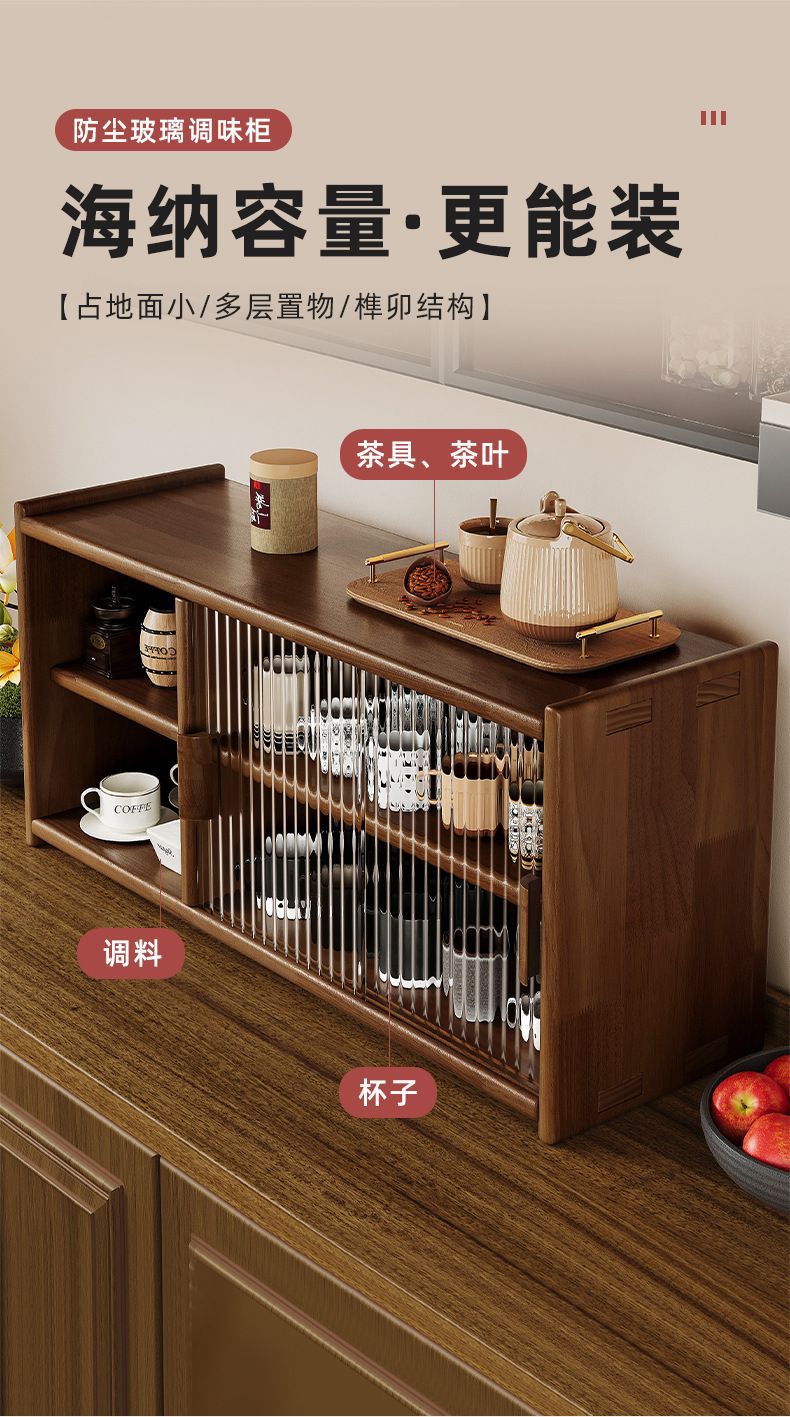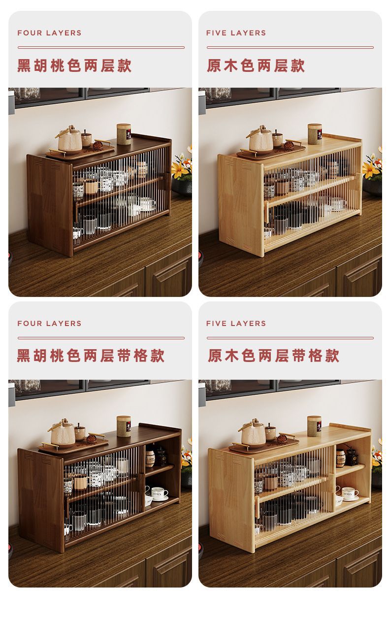 일본식 단단한 나무 찬장 데스크탑 스토리지 캐비닛 찬장 호두 색상 식탁 스토리지 랙 조리대 스토리지 랙