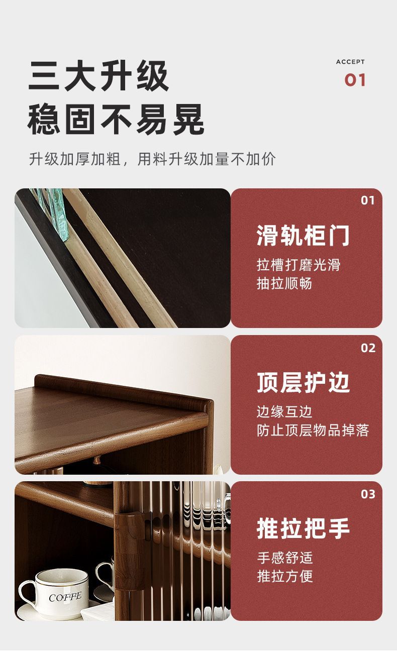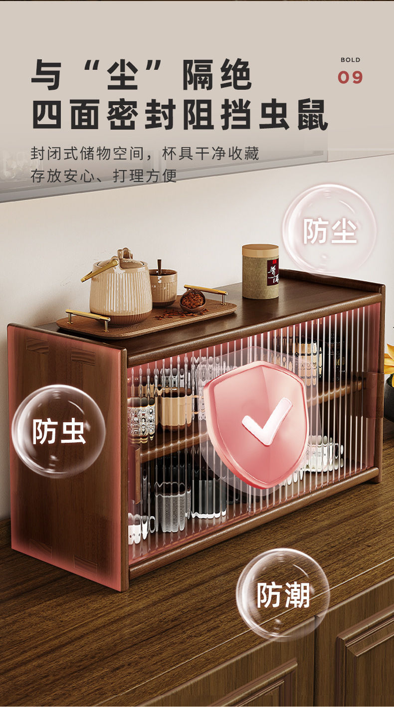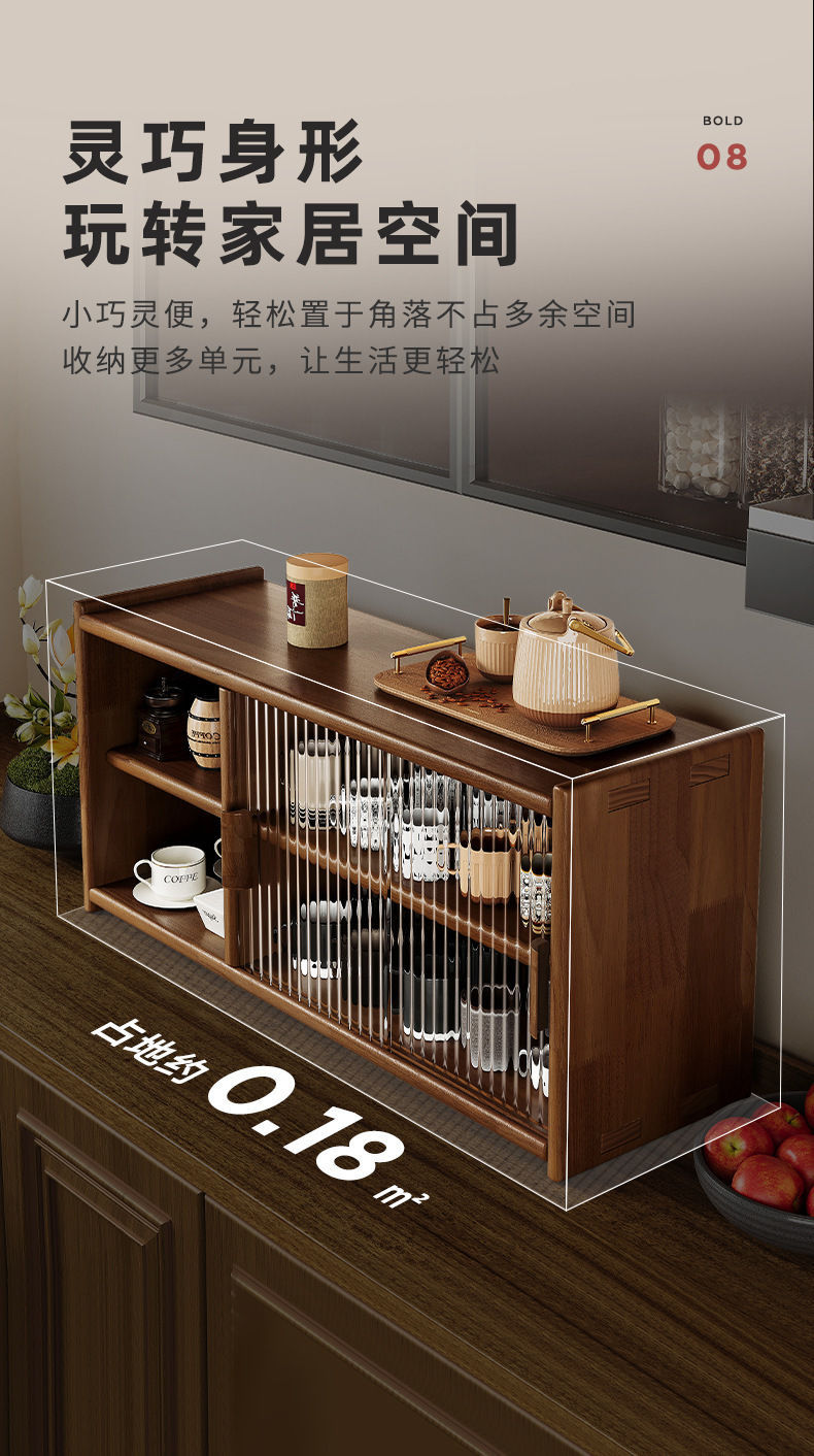 일본식 단단한 나무 찬장 데스크탑 스토리지 캐비닛 찬장 호두 색상 식탁 스토리지 랙 조리대 스토리지 랙