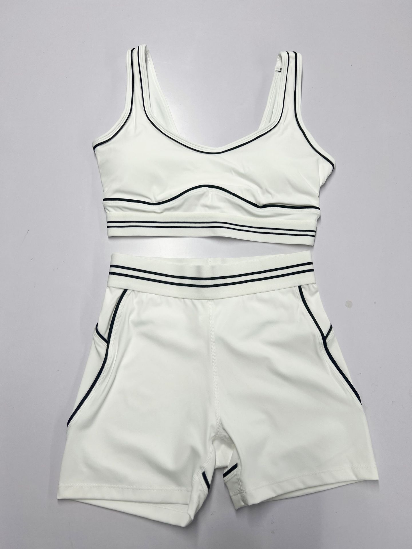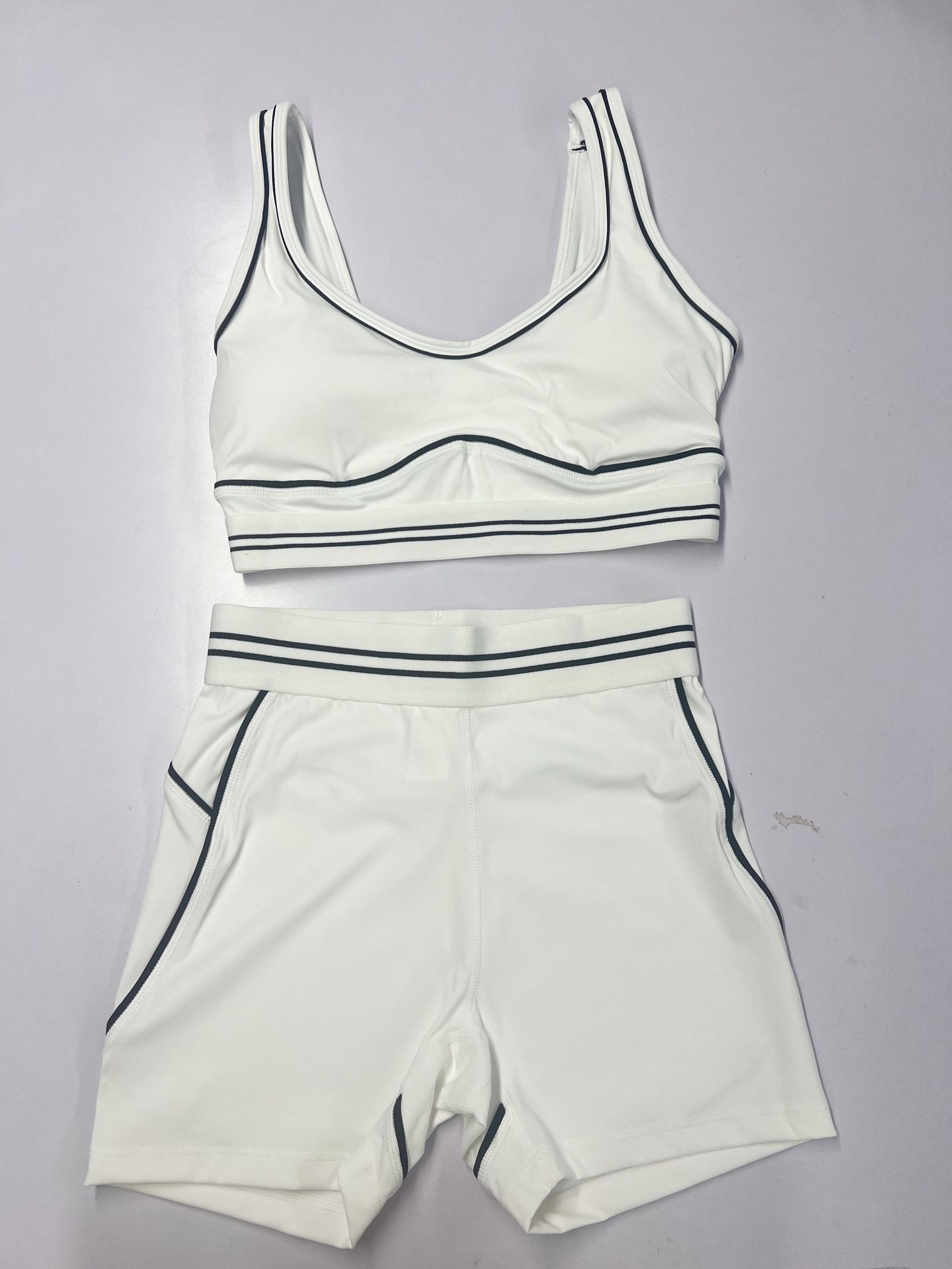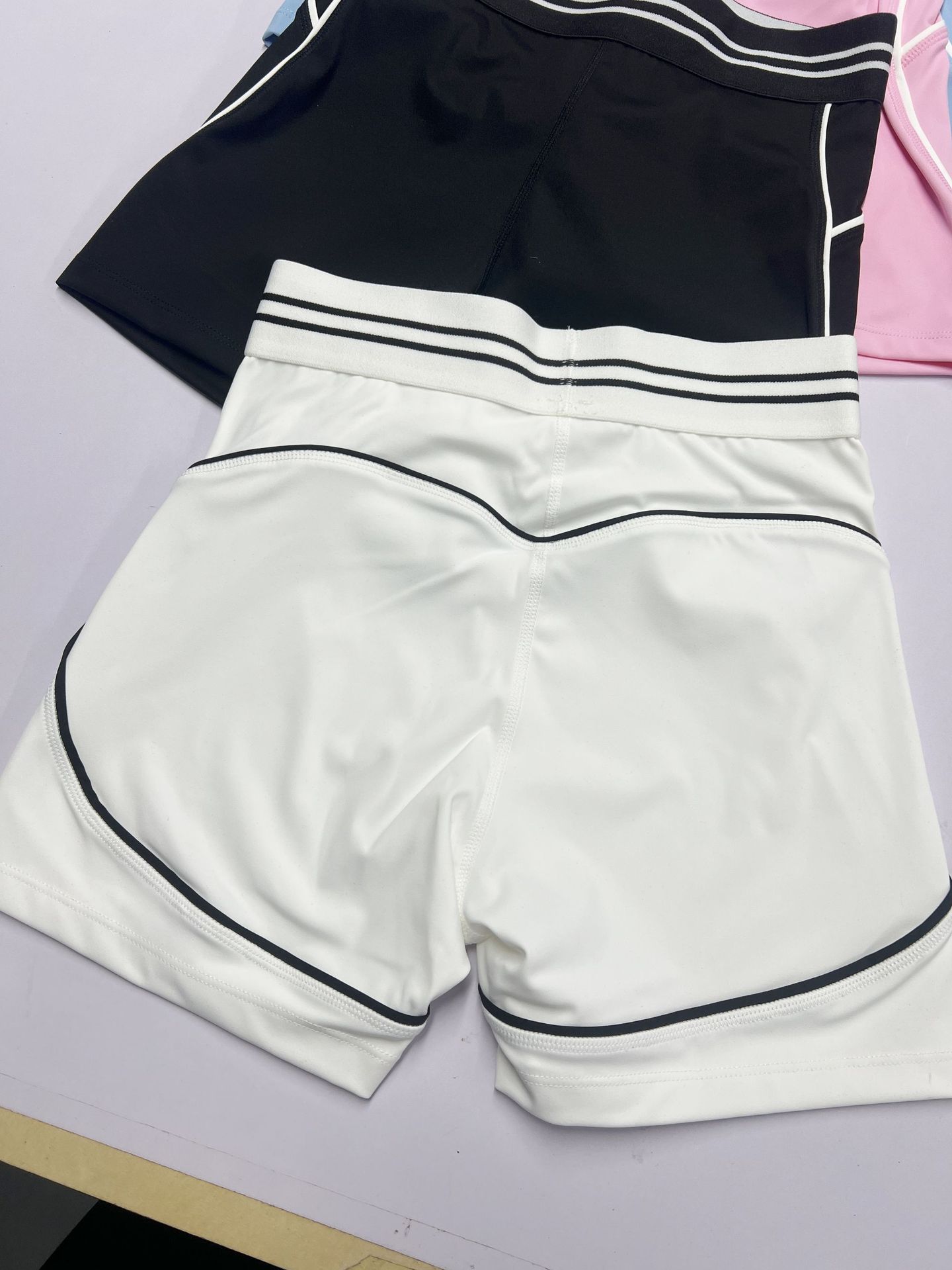 대비색 누드톤 타이트핏 U자형 요가 반바지 세트 야외 스포츠 여성 피트니스 러닝 세트 투피스