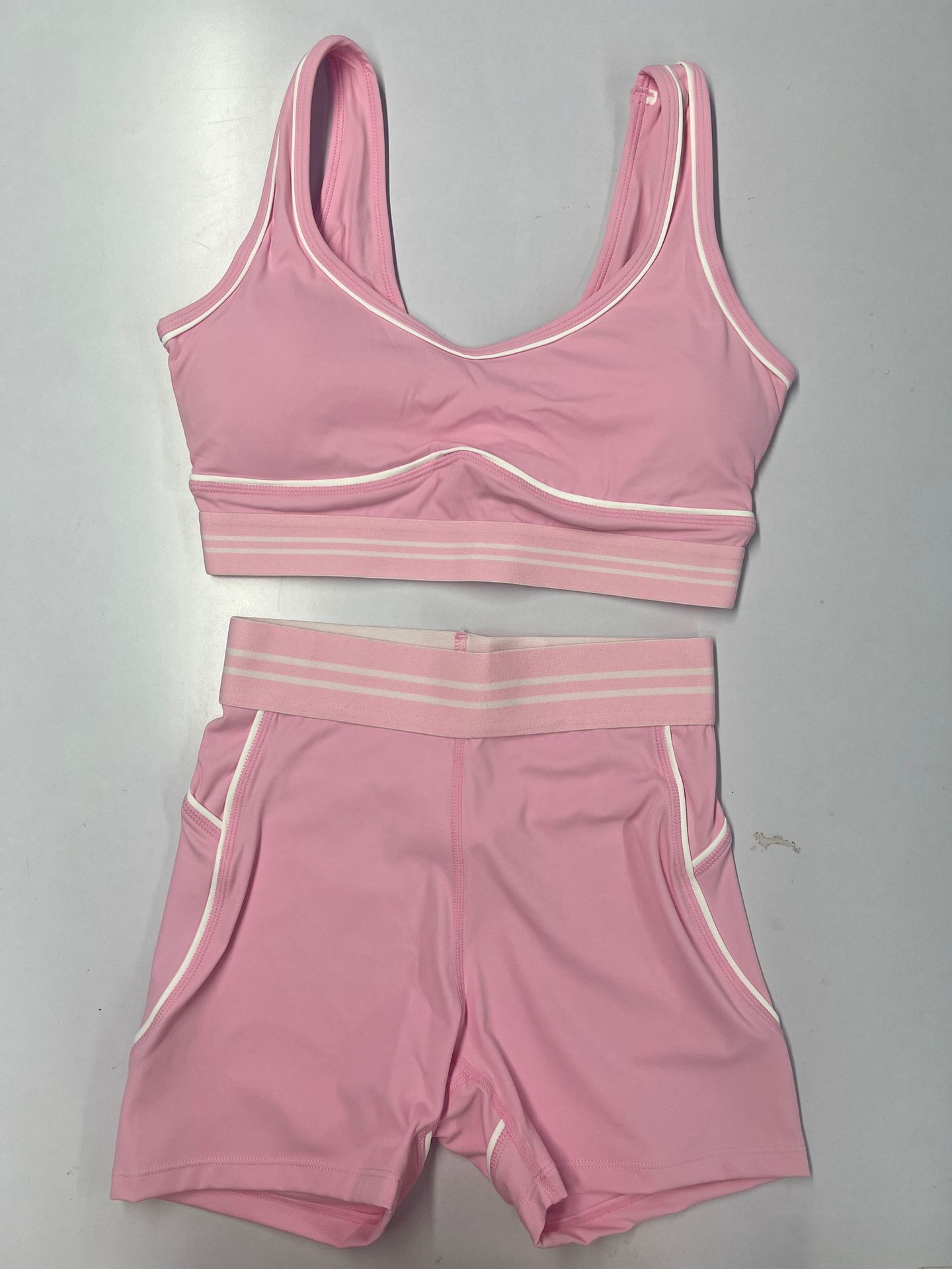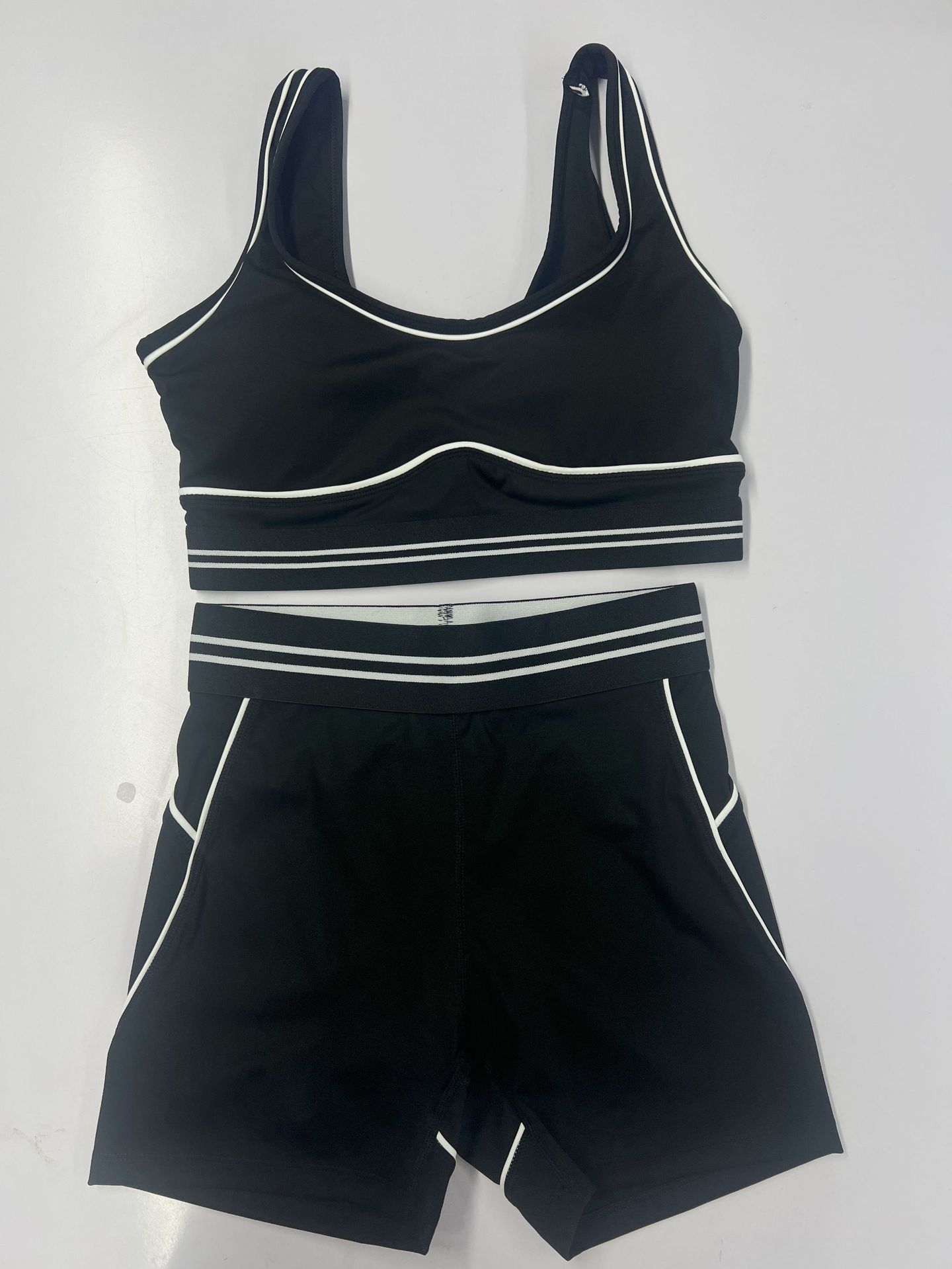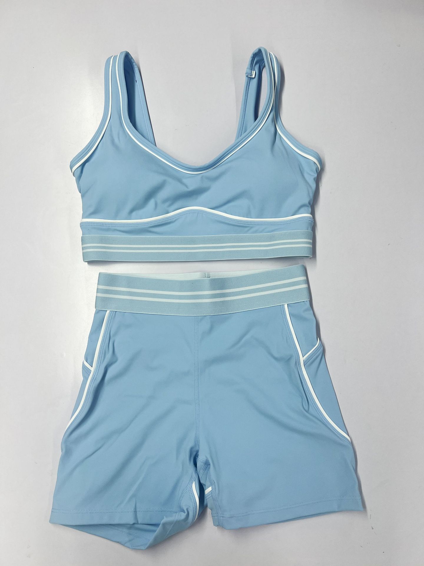 대비색 누드톤 타이트핏 U자형 요가 반바지 세트 야외 스포츠 여성 피트니스 러닝 세트 투피스
