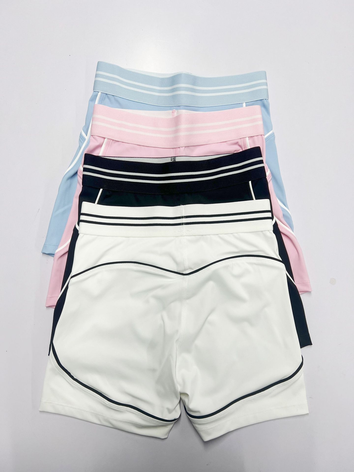 대비색 누드톤 타이트핏 U자형 요가 반바지 세트 야외 스포츠 여성 피트니스 러닝 세트 투피스스토어 가기