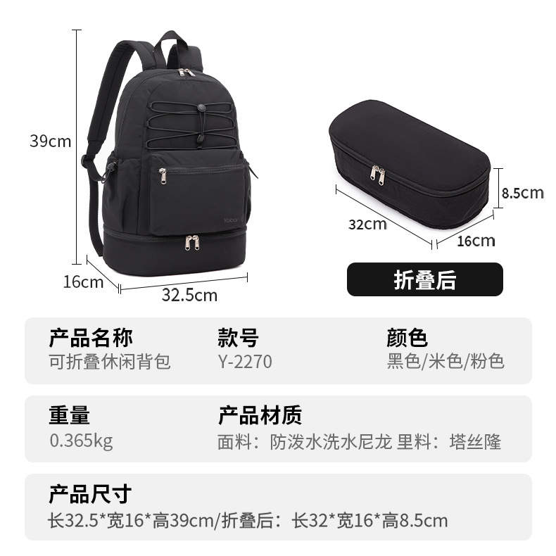 맞춤형 발수 대용량 캐주얼 여행 배낭 독립 신발 수납 공간 경량 접이식 등산 배낭