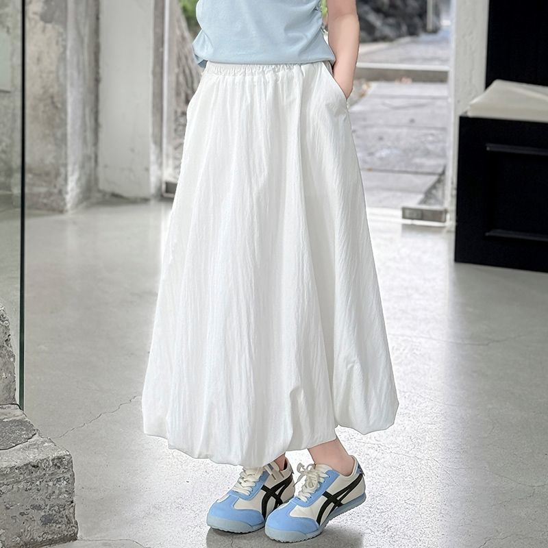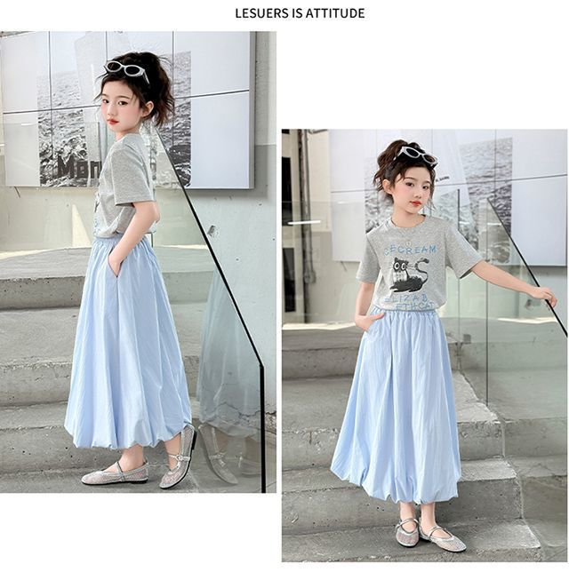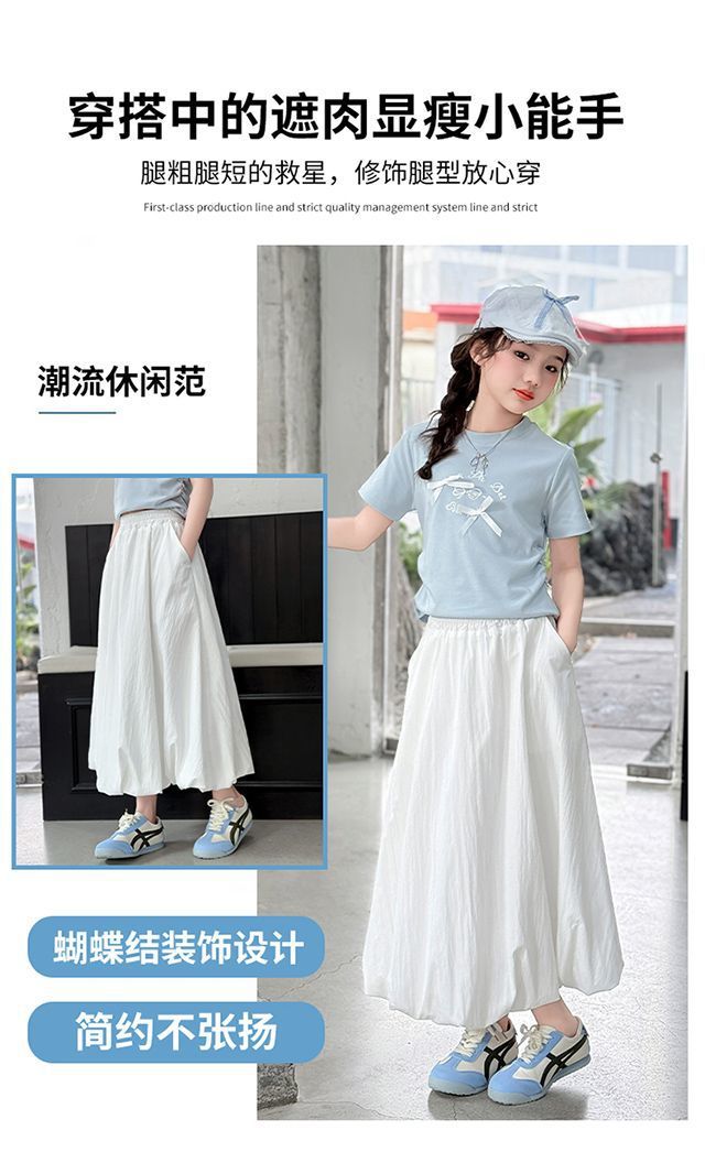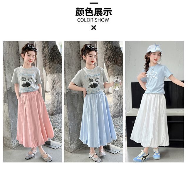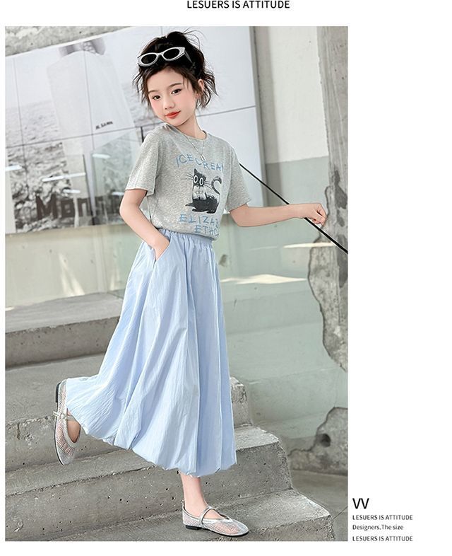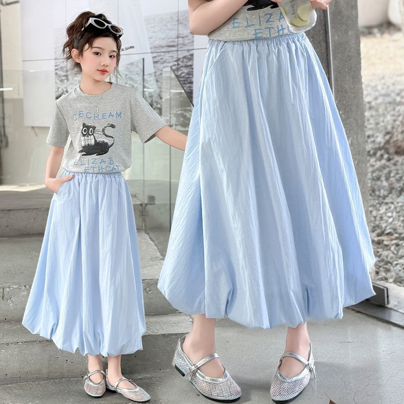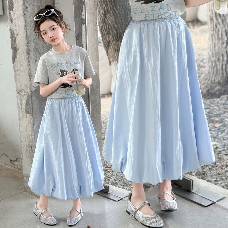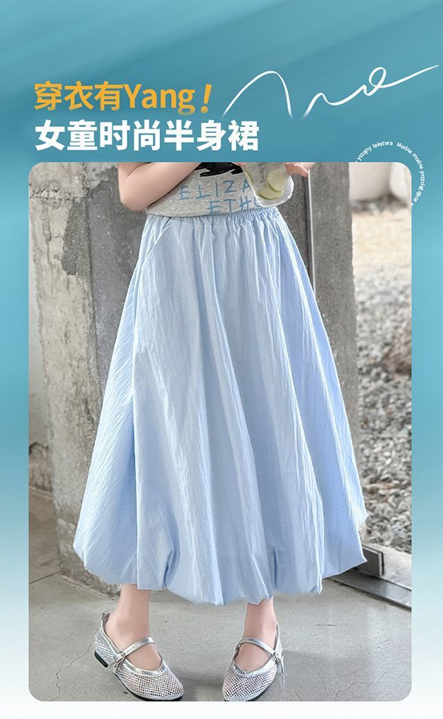 여자 여름 꽃 스커트 어린이 캐주얼 하이 웨이스트 스커트 2025 새로운 중간 길이 스타일 여자 스커트