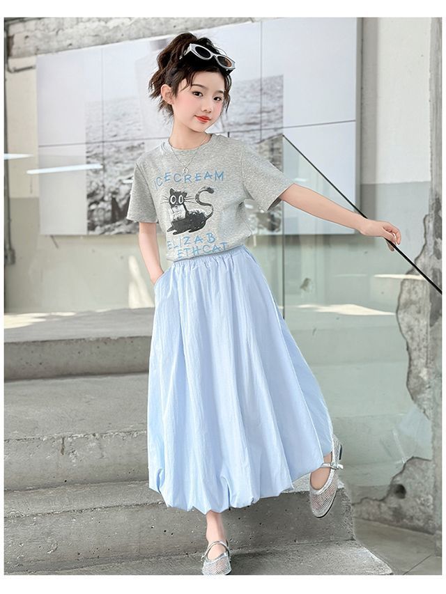 여자 여름 꽃 스커트 어린이 캐주얼 하이 웨이스트 스커트 2025 새로운 중간 길이 스타일 여자 스커트스토어 가기