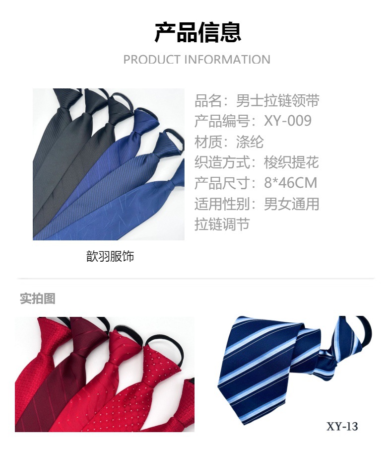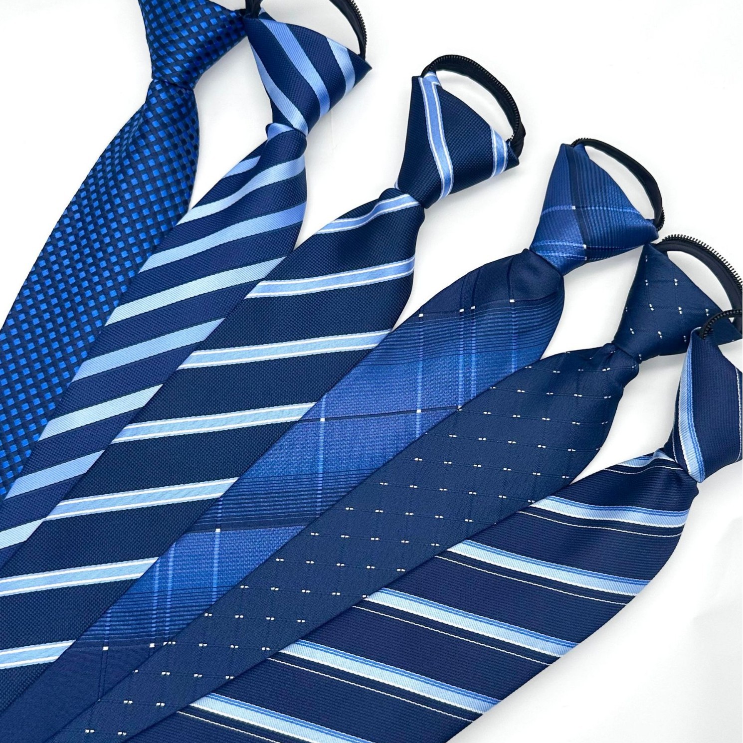 넥타이 남성 정장 비즈니스 신랑 웨딩 정장 지퍼 넥타이 대각선 줄무늬 매듭없는 넥타이 Easy Pull