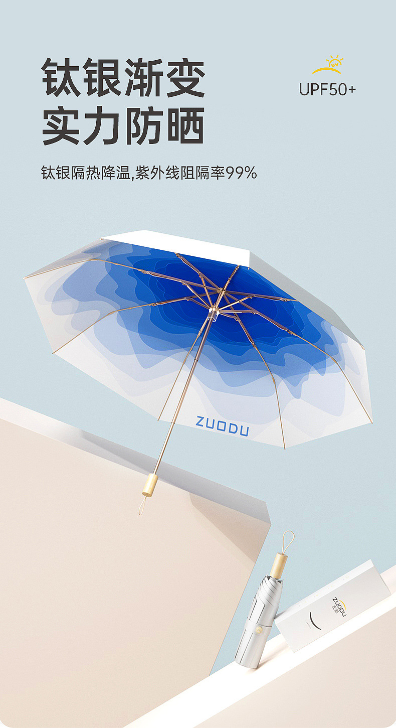 Zuodu 그라데이션 자외선 차단 우산, 가볍고 휴대 가능, 더 큰 차양, 비 또는 빛, 여성용 자외선 차단 티타늄 실버 접착제 50% off 태양 우산스토어 가기