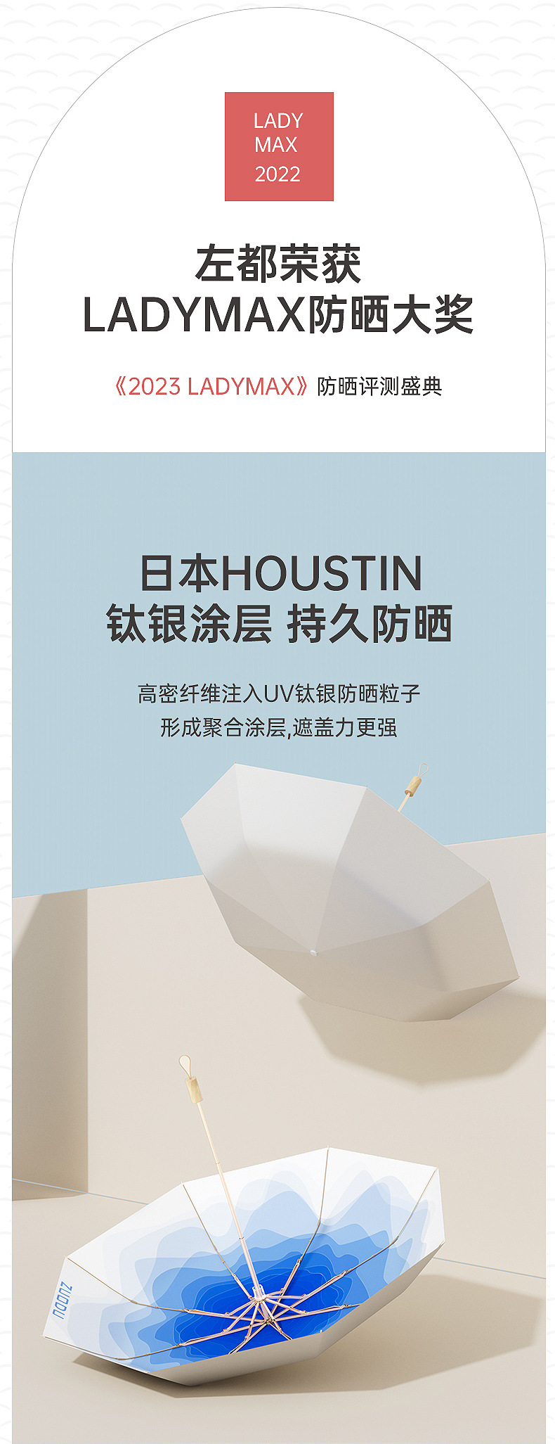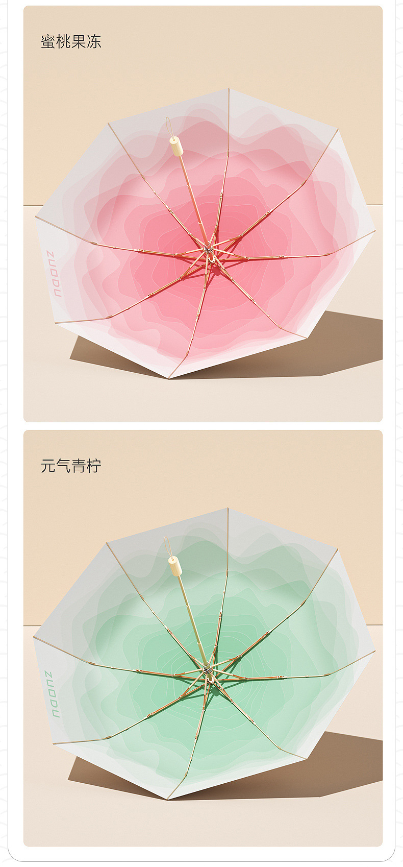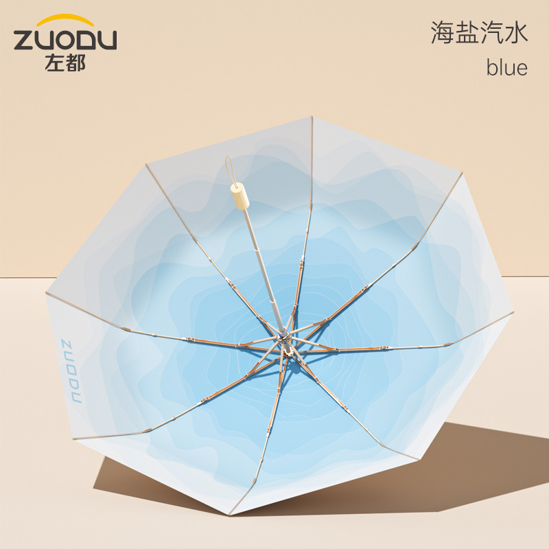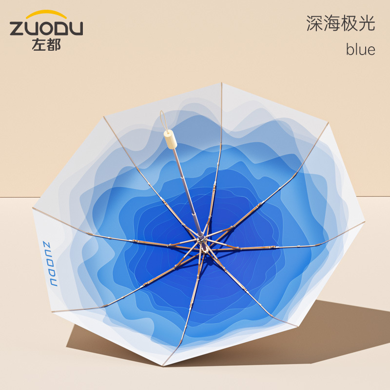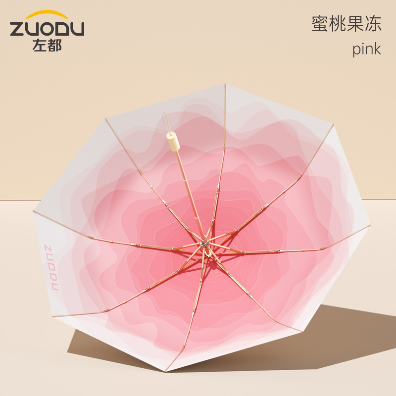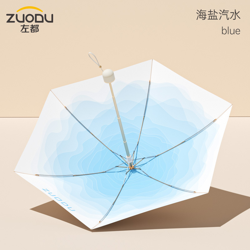 Zuodu 그라데이션 자외선 차단 우산, 가볍고 휴대 가능, 더 큰 차양, 비 또는 빛, 여성용 자외선 차단 티타늄 실버 접착제 50% off 태양 우산