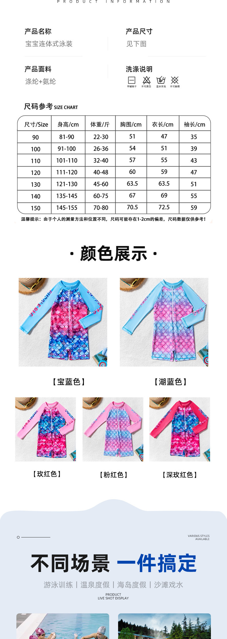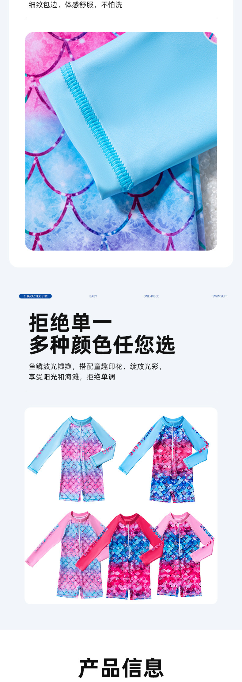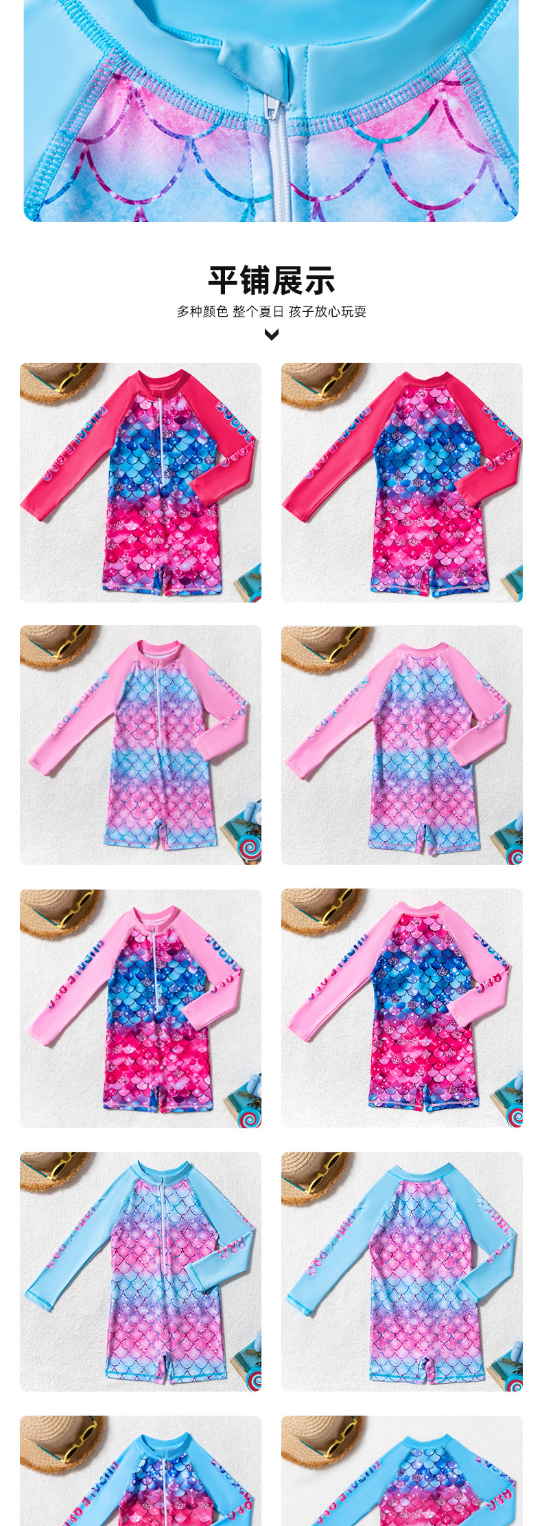 아동용 수영복, 여아용 긴팔 원피스 수영복, 어린이용 물고기 비늘 무늬 지퍼 자외선 차단제 온천 아동용 수영복스토어 가기