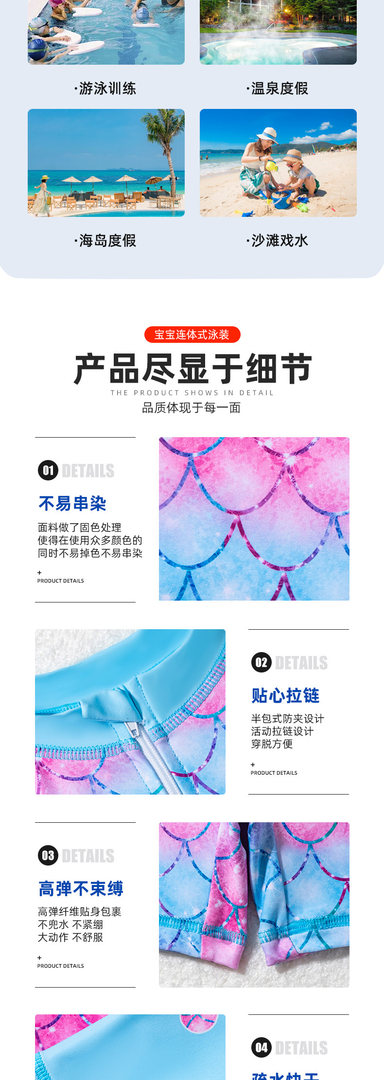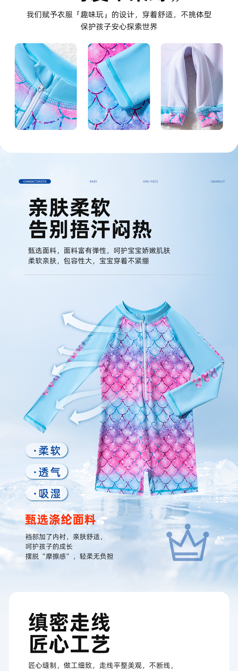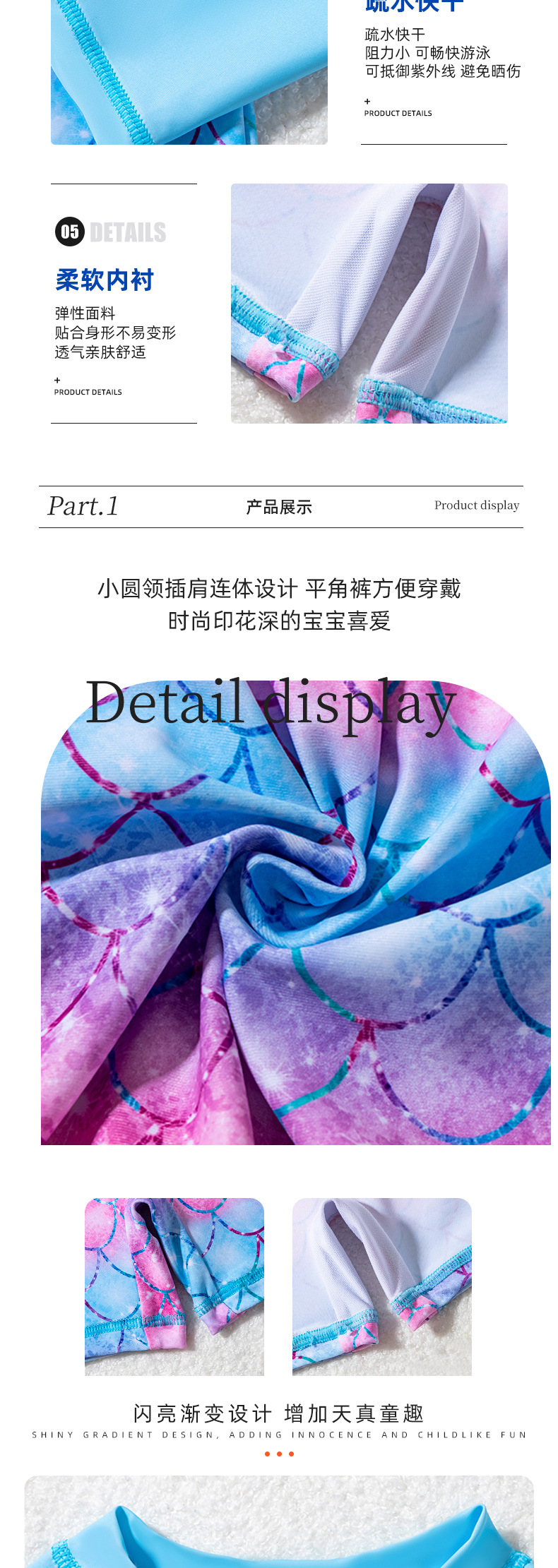 아동용 수영복, 여아용 긴팔 원피스 수영복, 어린이용 물고기 비늘 무늬 지퍼 자외선 차단제 온천 아동용 수영복스토어 가기