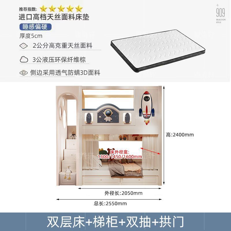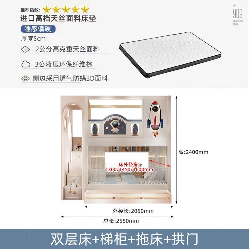 • ENF 등급 원목 이층 침대 + 사다리 캐비닛 + 드래그 침대 + 아치