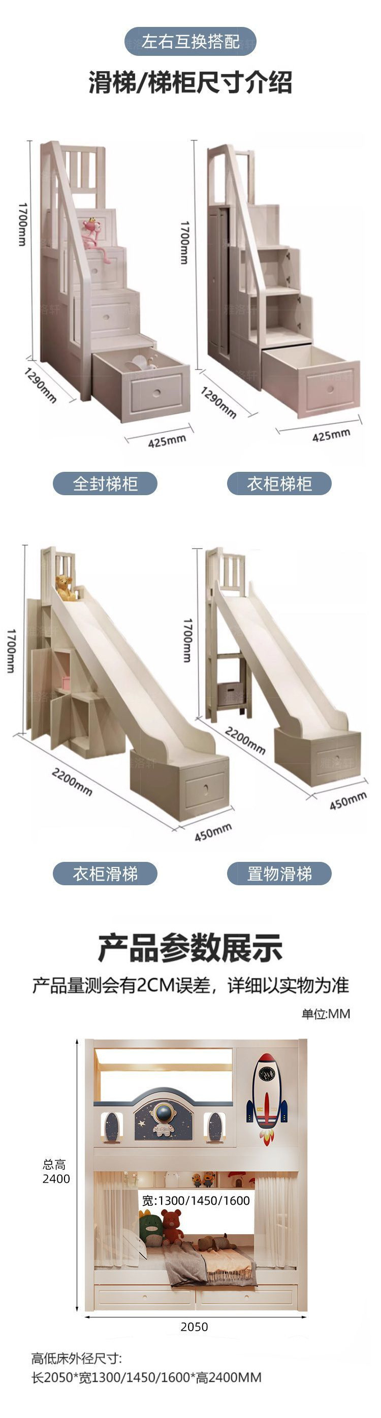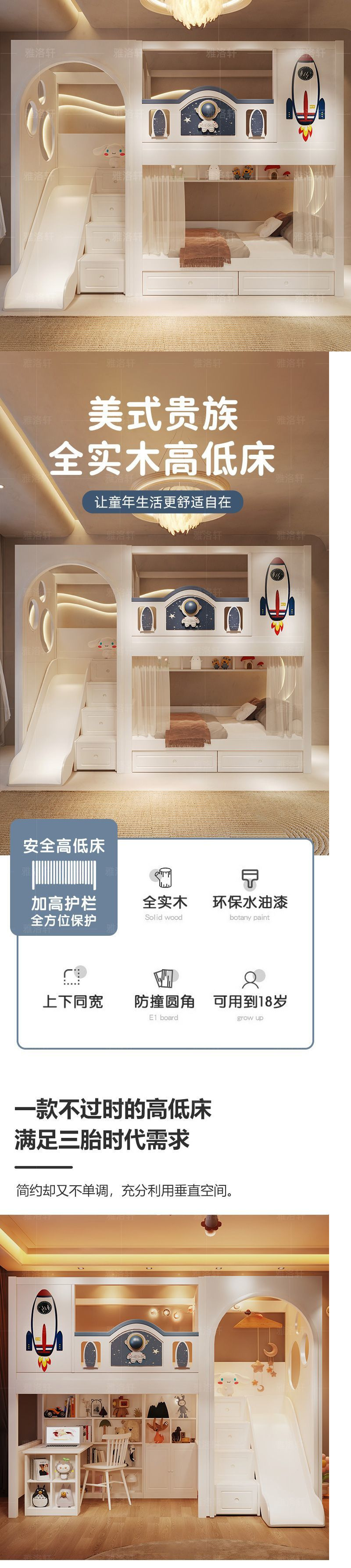 • ENF 등급 원목 이층 침대 + 드래그 침대 + 슬라이드 + 아치