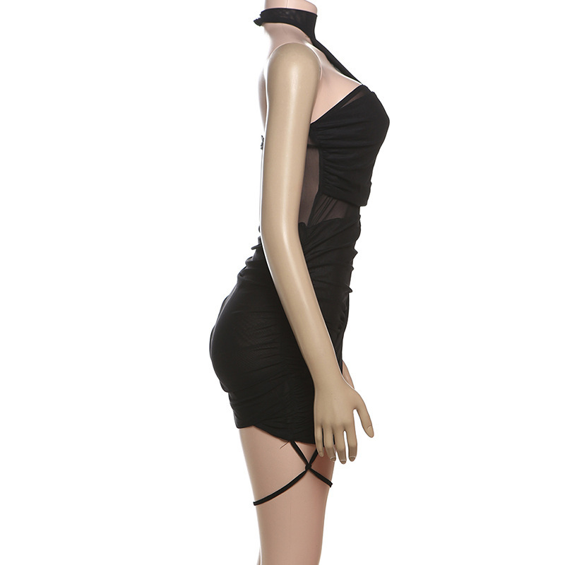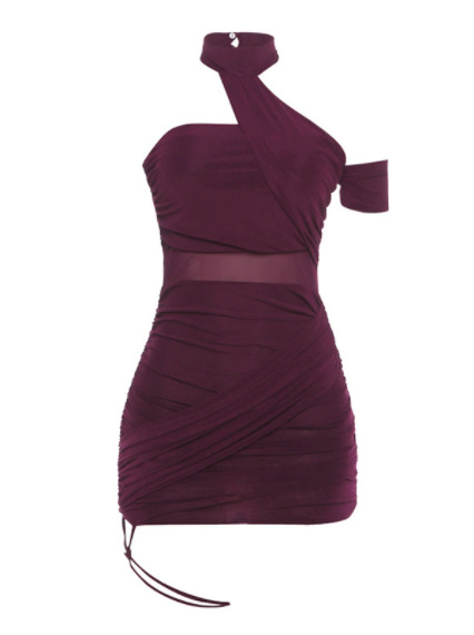 2025년 여름 신상품, 틈새시장, 오프숄더, 주름진 거즈, 살짝 비치는 타이트한 몸매를 돋보이게 하는 불규칙한 드레스와 스커트스토어 가기