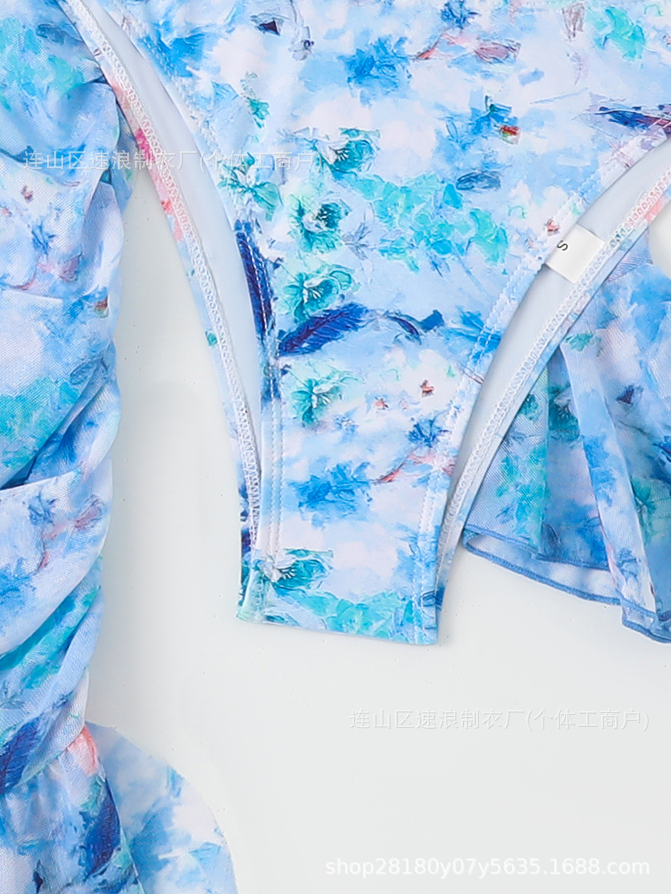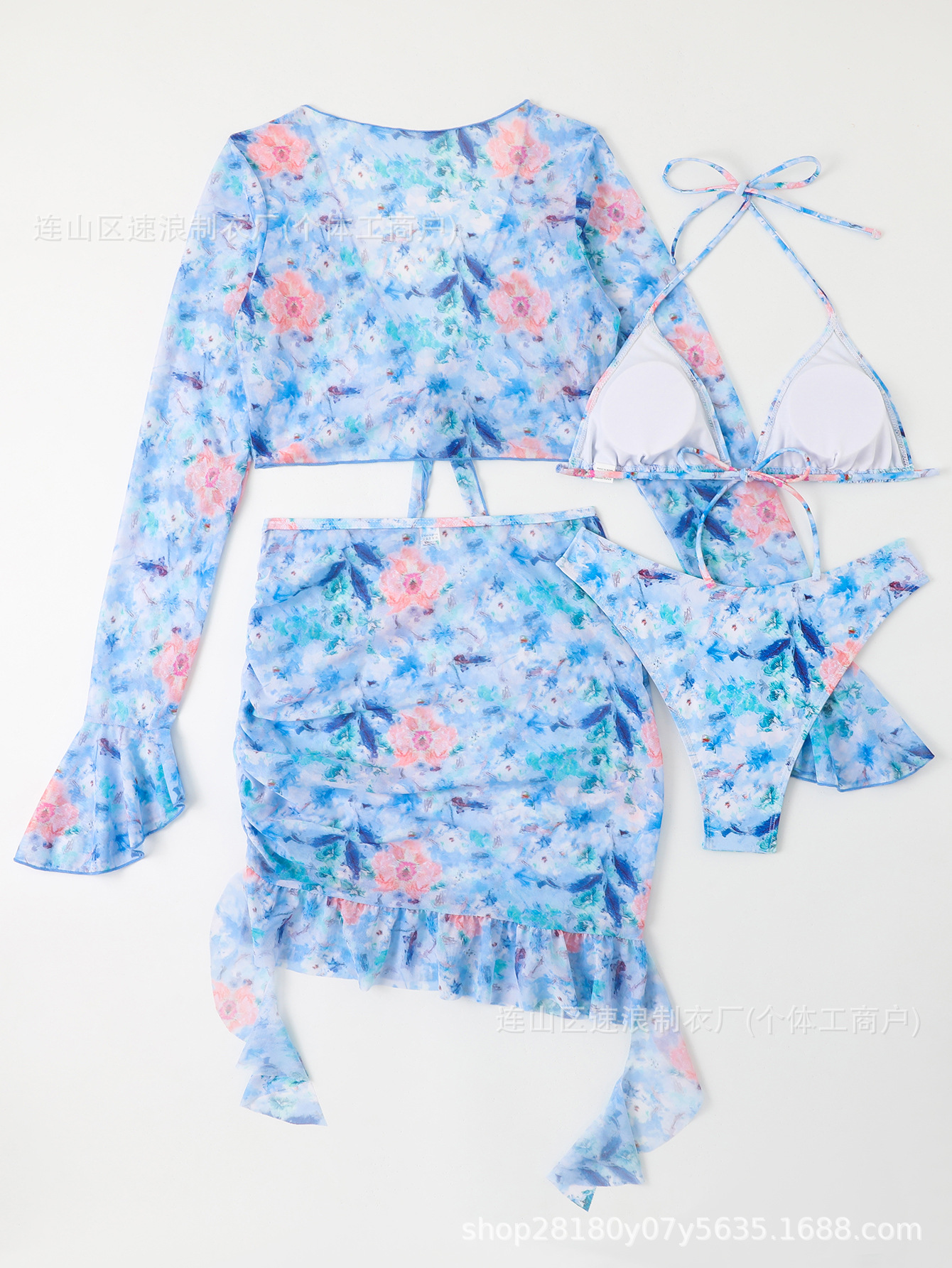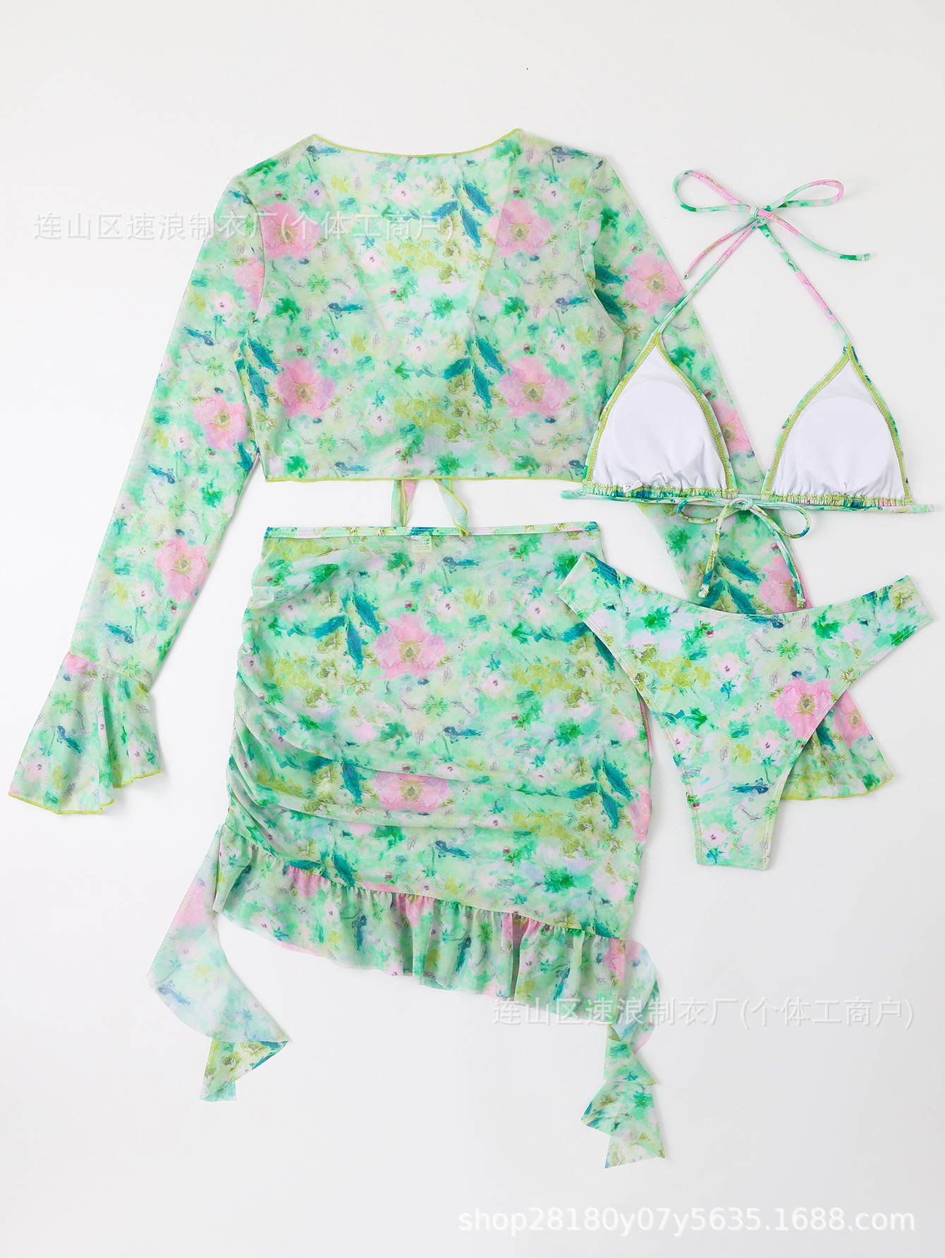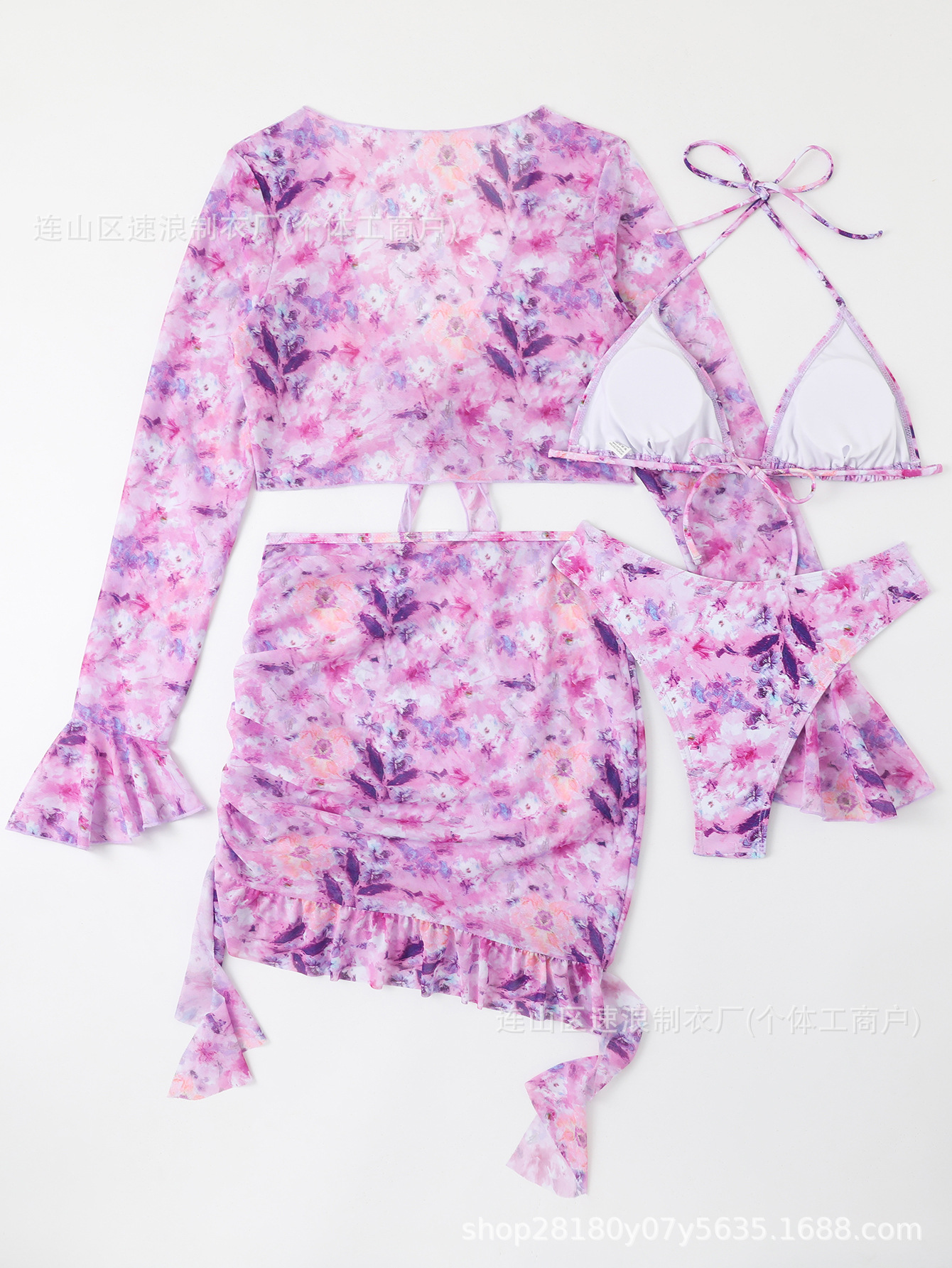 Sulang 비키니 새로운 유럽과 미국의 국경 간 여성 4피스 비키니 디지털 인쇄 긴팔 자외선 차단 휴가스토어 가기