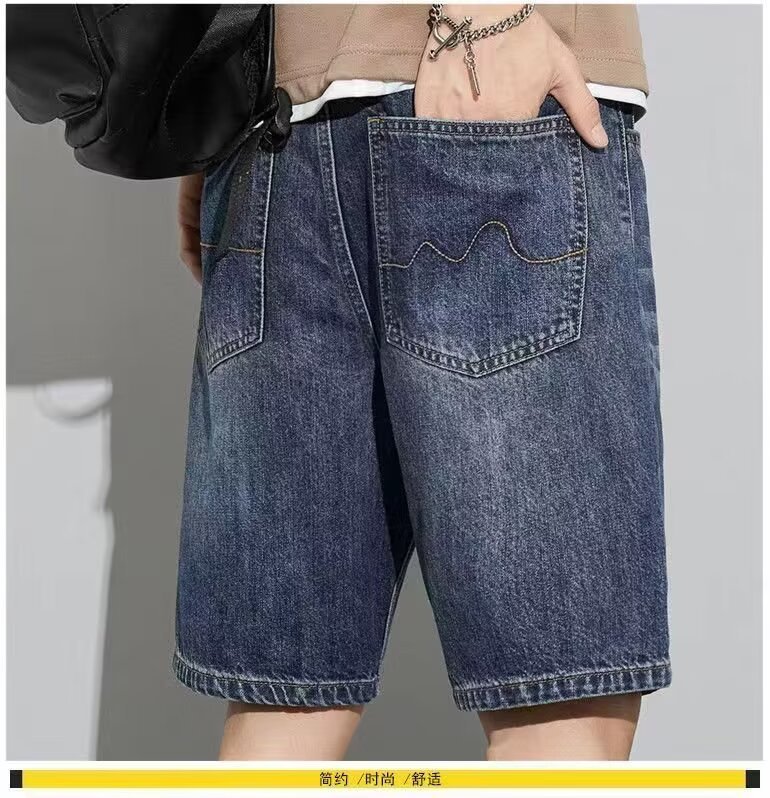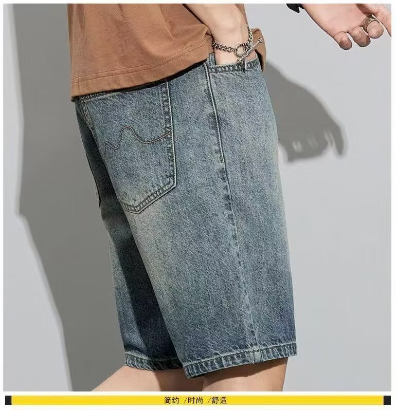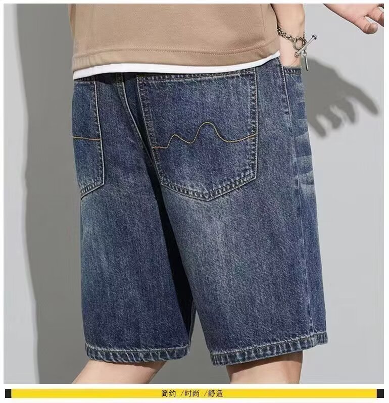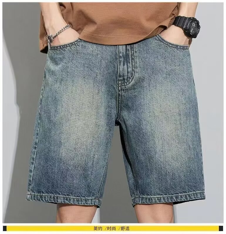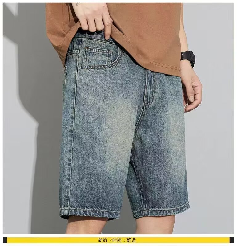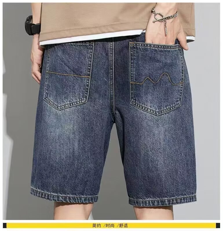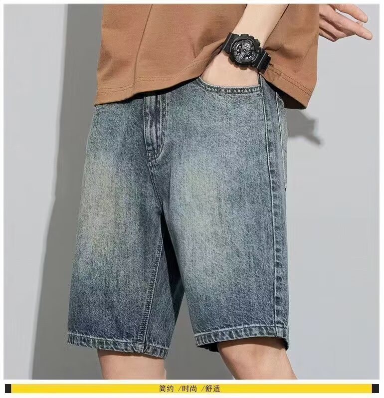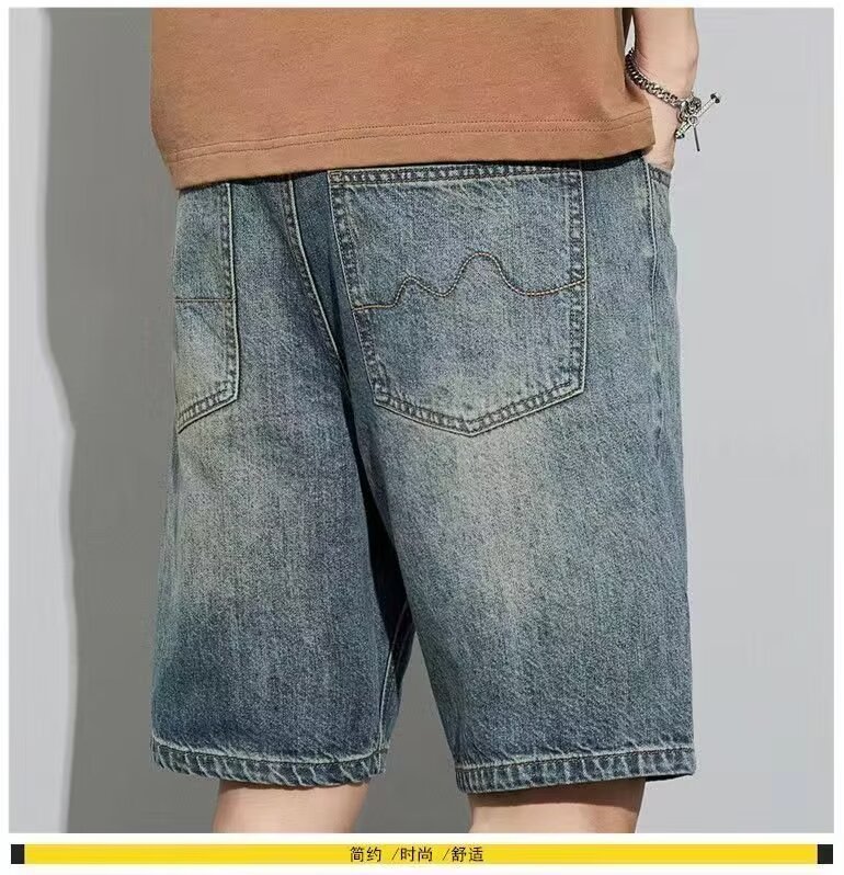 여름 데님 반바지 남성용 얇은 중간 길이 캐주얼 카고 반바지 루즈 스트레이트 남성용 워싱 5부 청바지스토어 가기