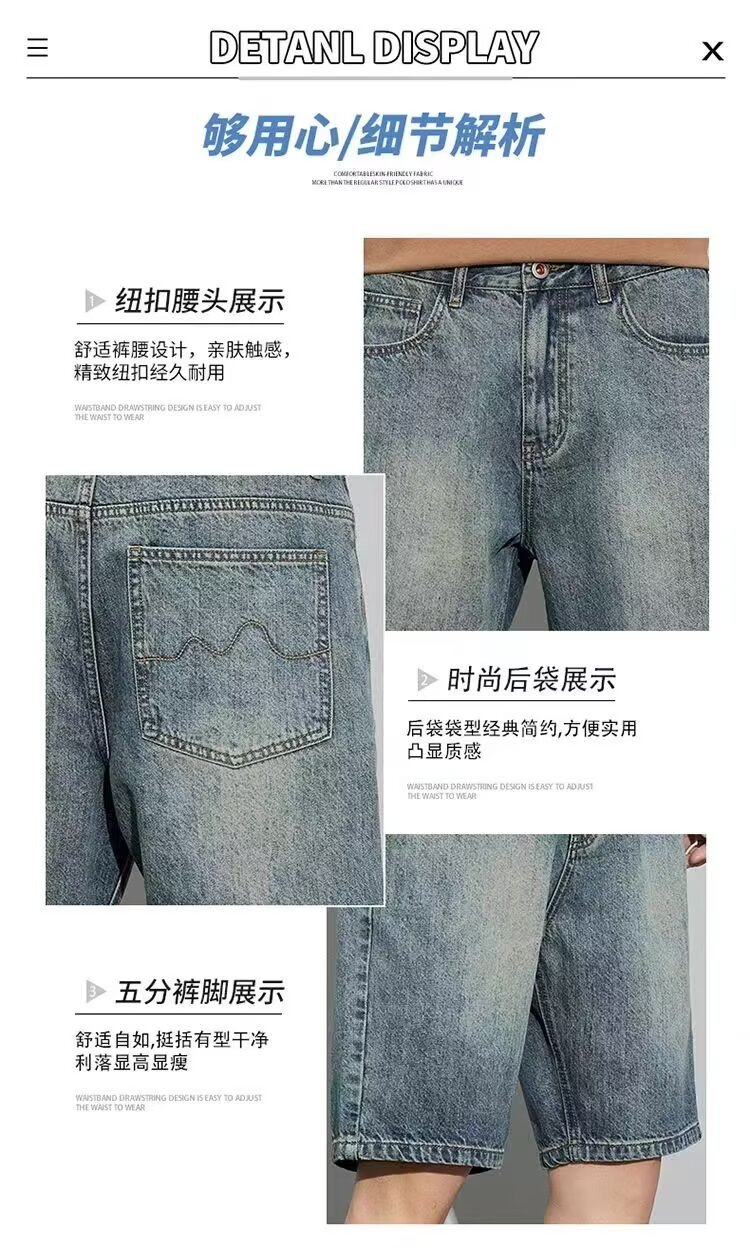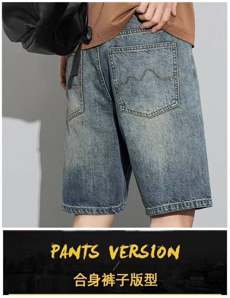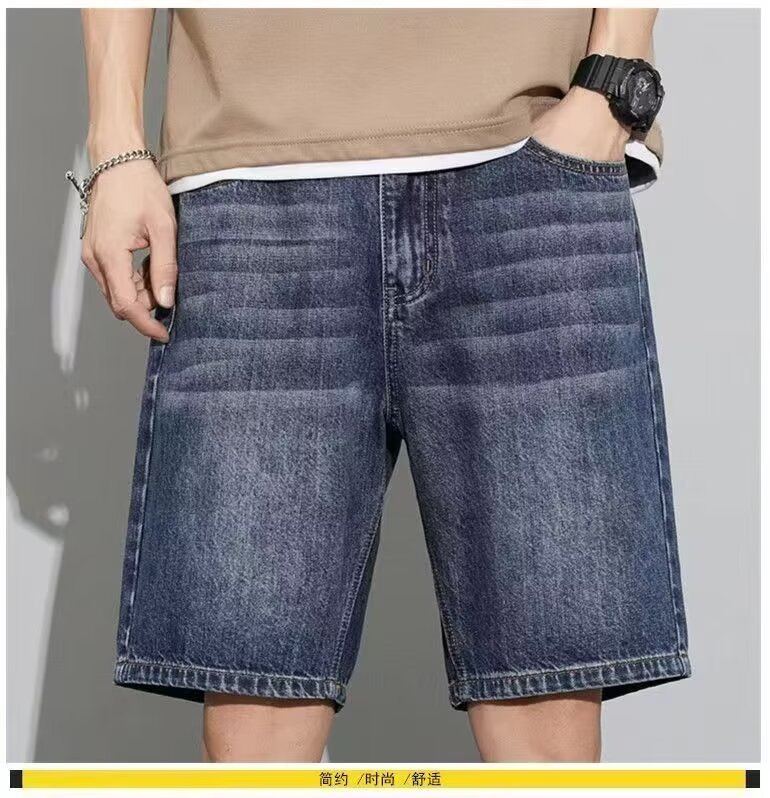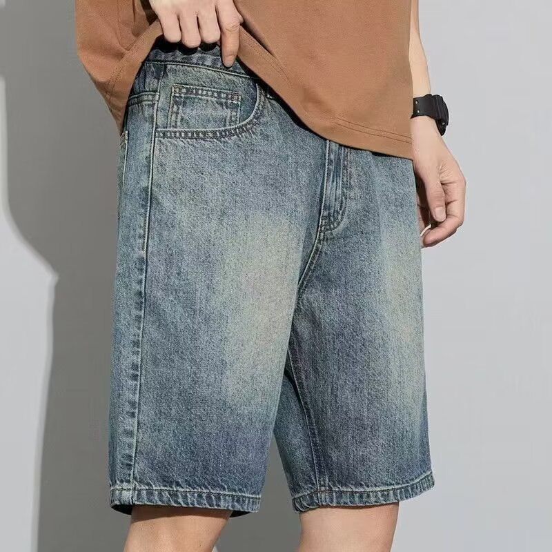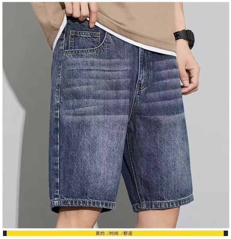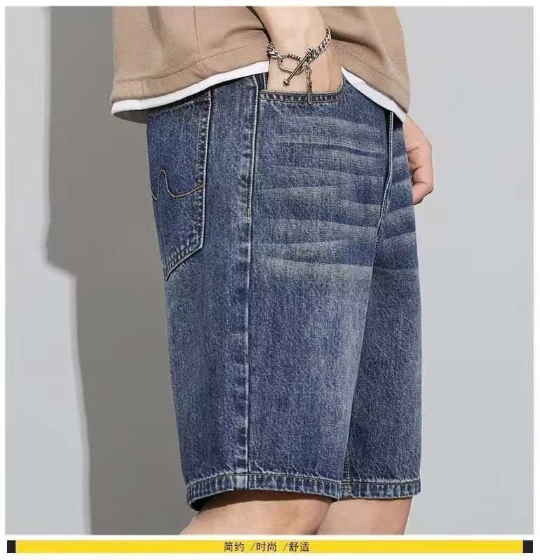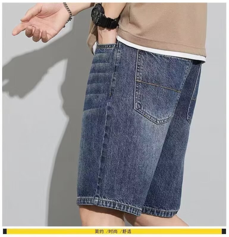 여름 데님 반바지 남성용 얇은 중간 길이 캐주얼 카고 반바지 루즈 스트레이트 남성용 워싱 5부 청바지스토어 가기
