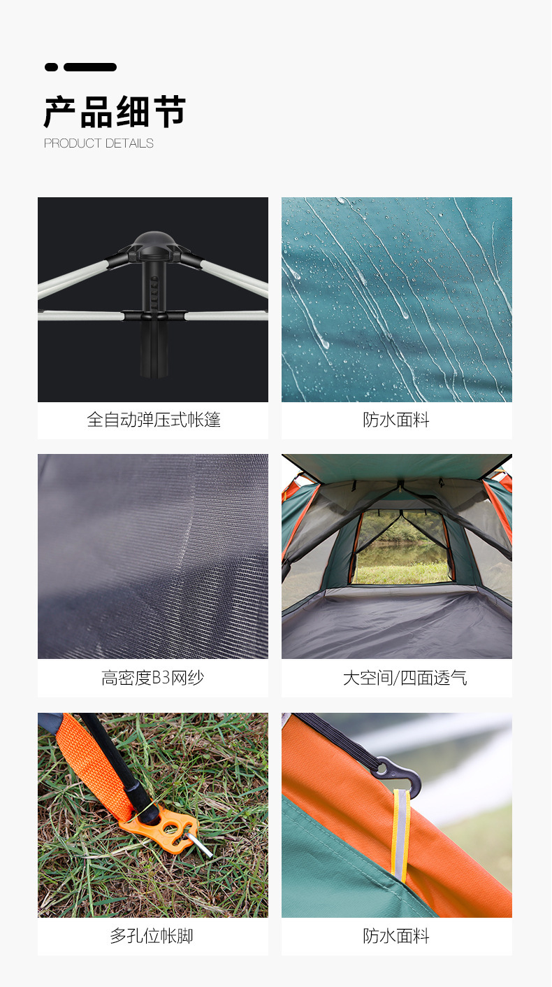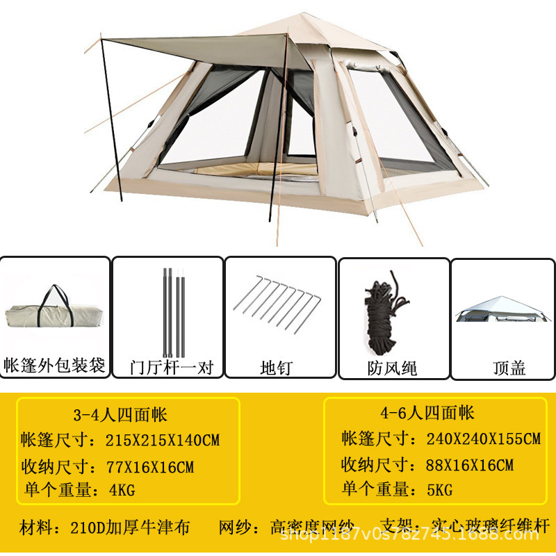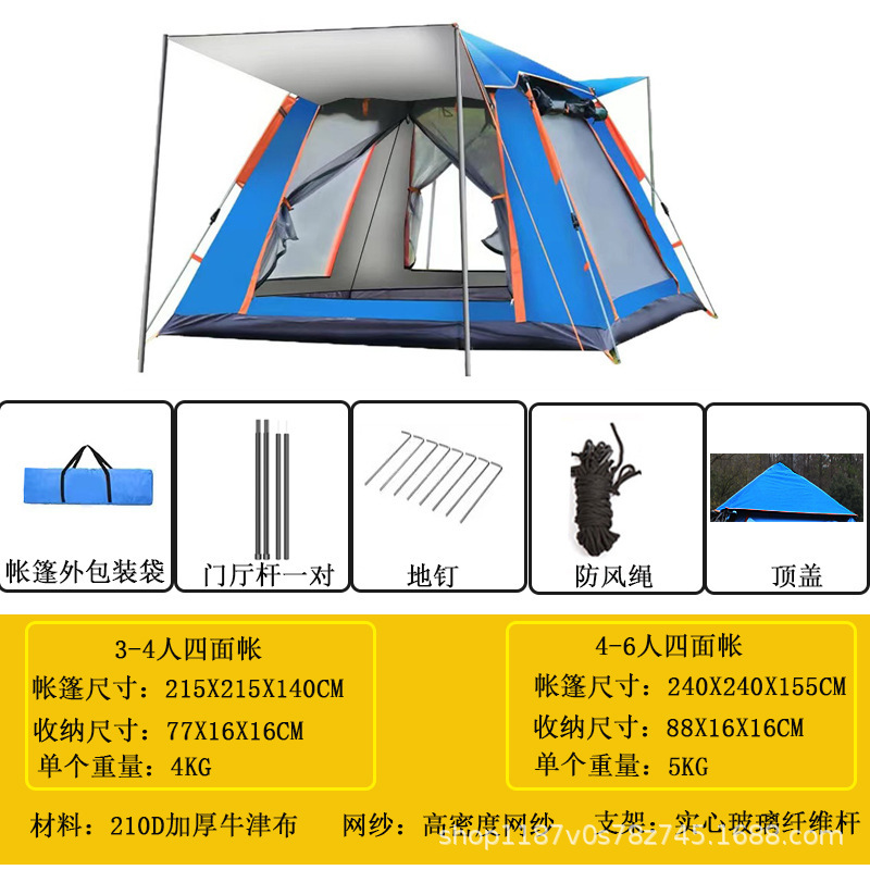 3~4인용 야외텐트, 해변용, 두꺼워진 방수, 2인용 캠핑, 완전 자동 2인용 캠핑, 빠른 개방, 4면 휴대용스토어 가기