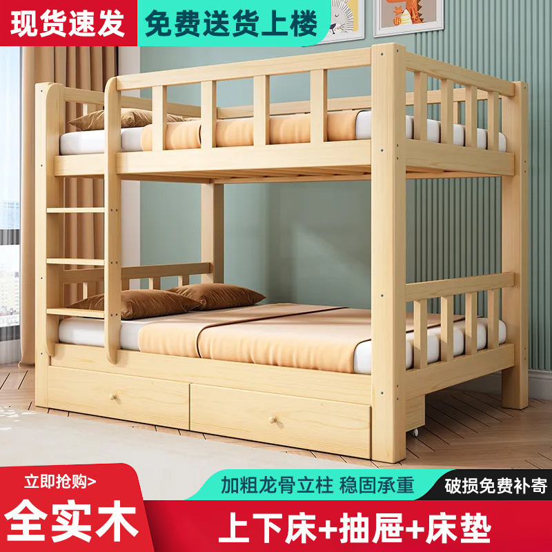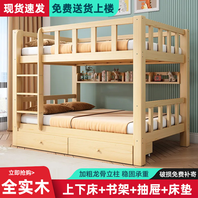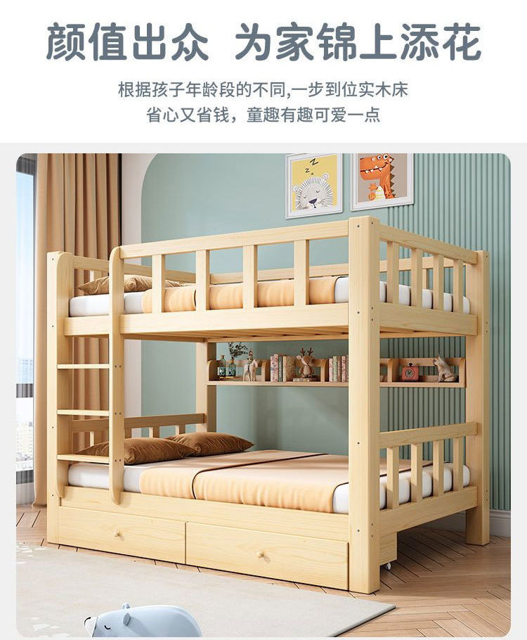 원목침대, 이층침대, 어린이용 하이베드, 성인용 이층침대, 2층 다기능 조합, 원목침대 2개 직판스토어 가기