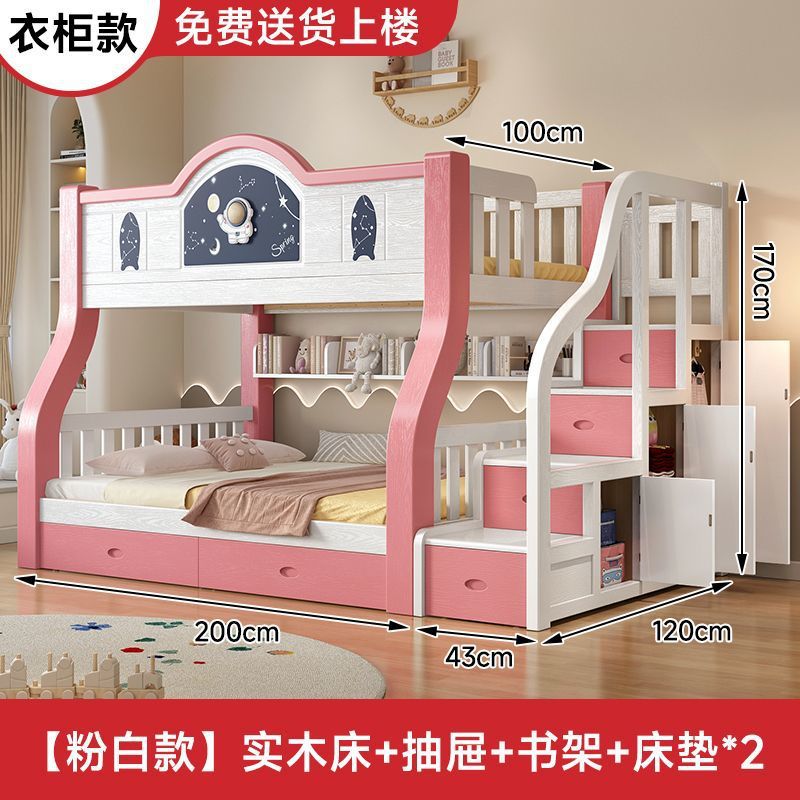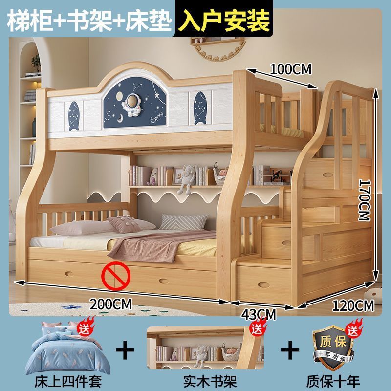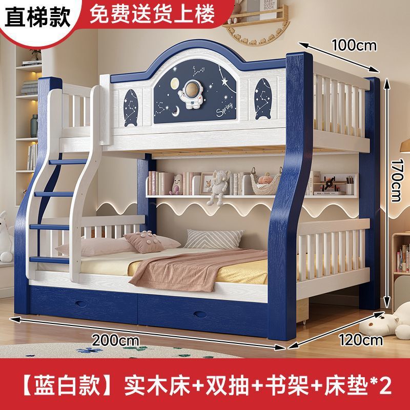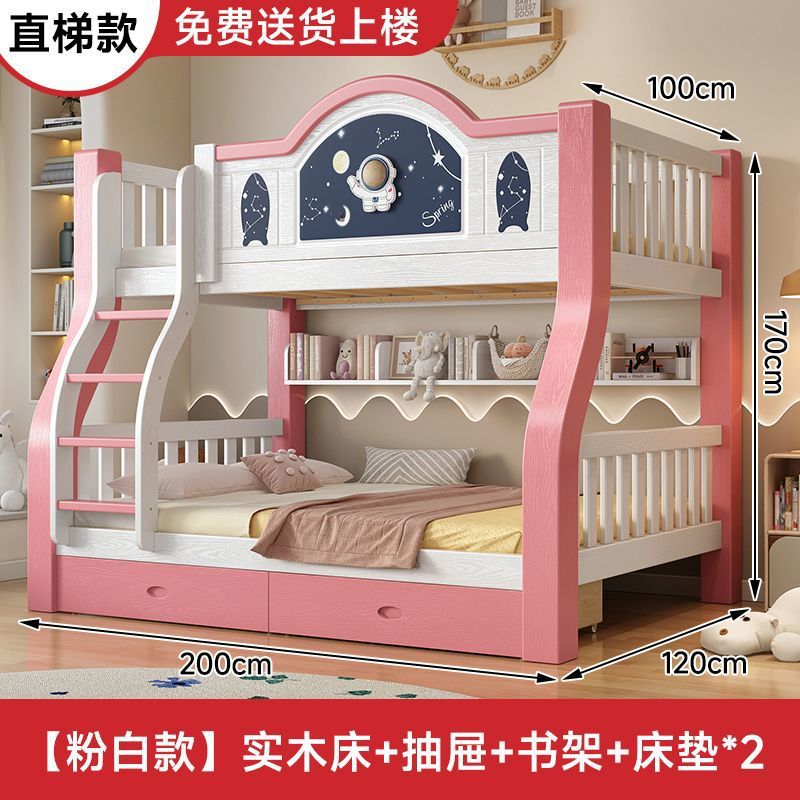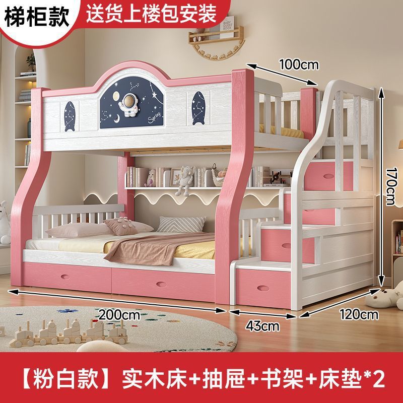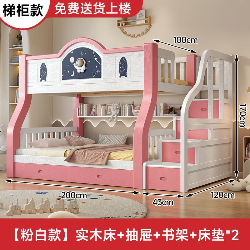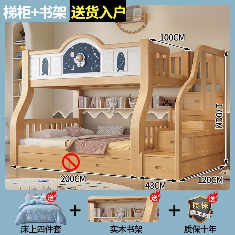 인터넷 연예인 모델 원목 어린이 이층 침대, 2층 높낮이 이층 침대, 소형 가정용 두꺼운 이층 침대