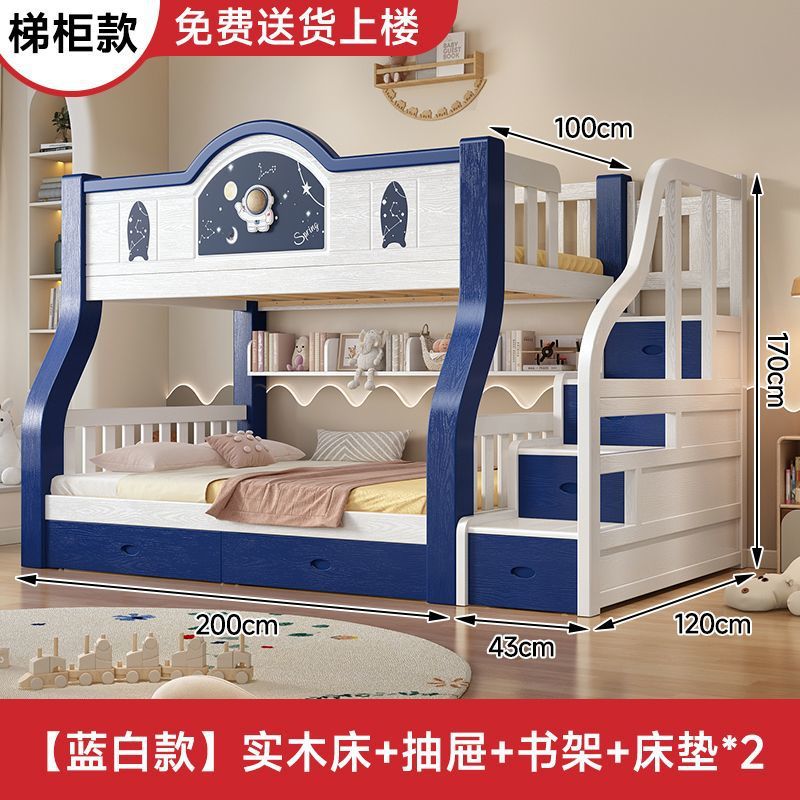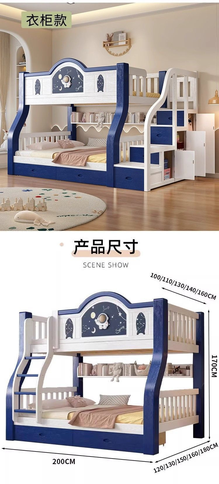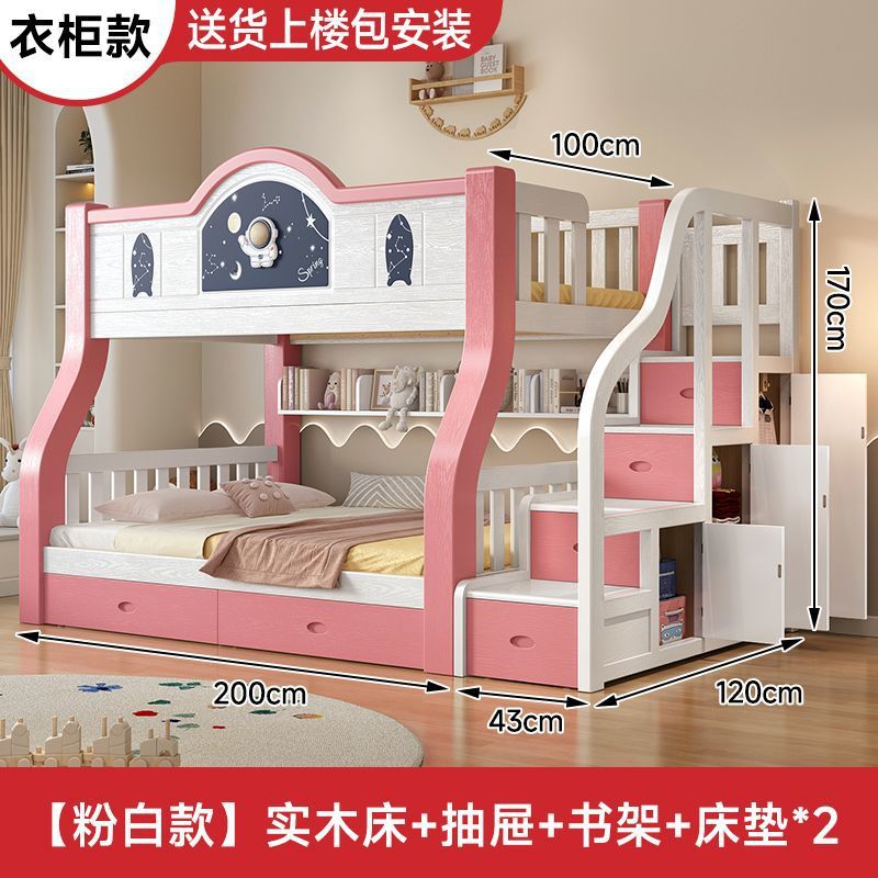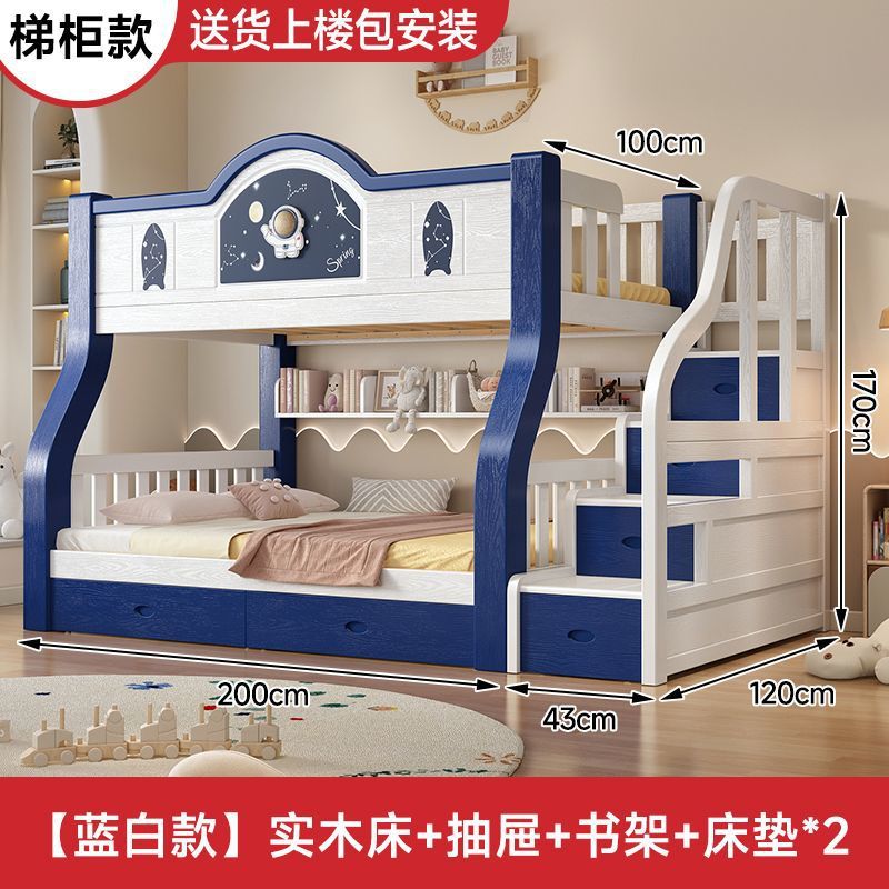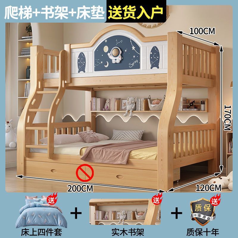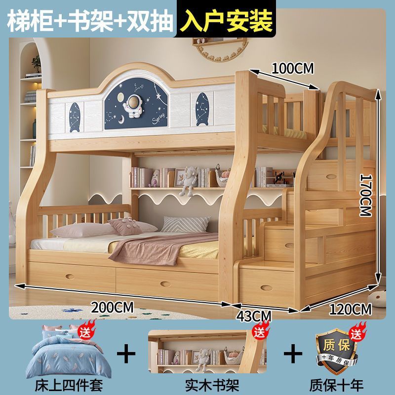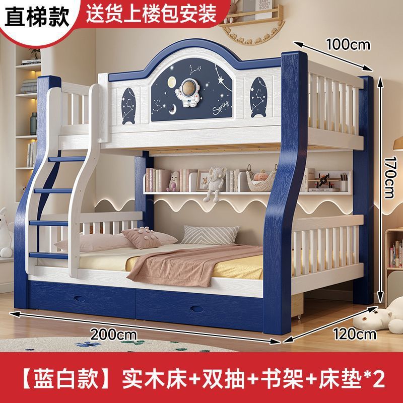 인터넷 연예인 모델 원목 어린이 이층 침대, 2층 높낮이 이층 침대, 소형 가정용 두꺼운 이층 침대