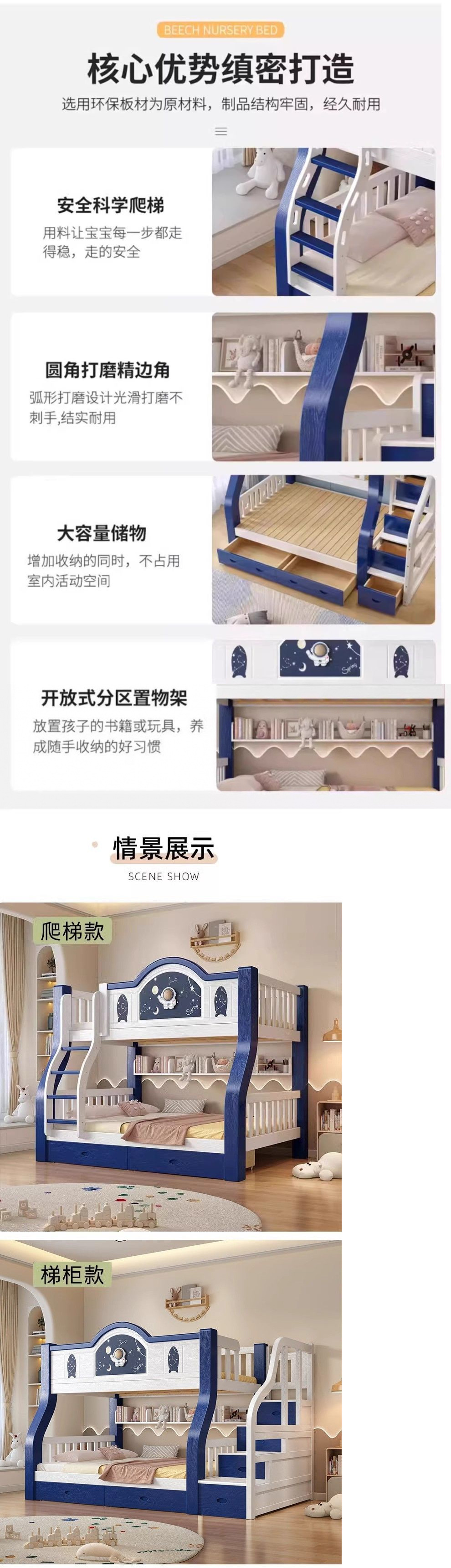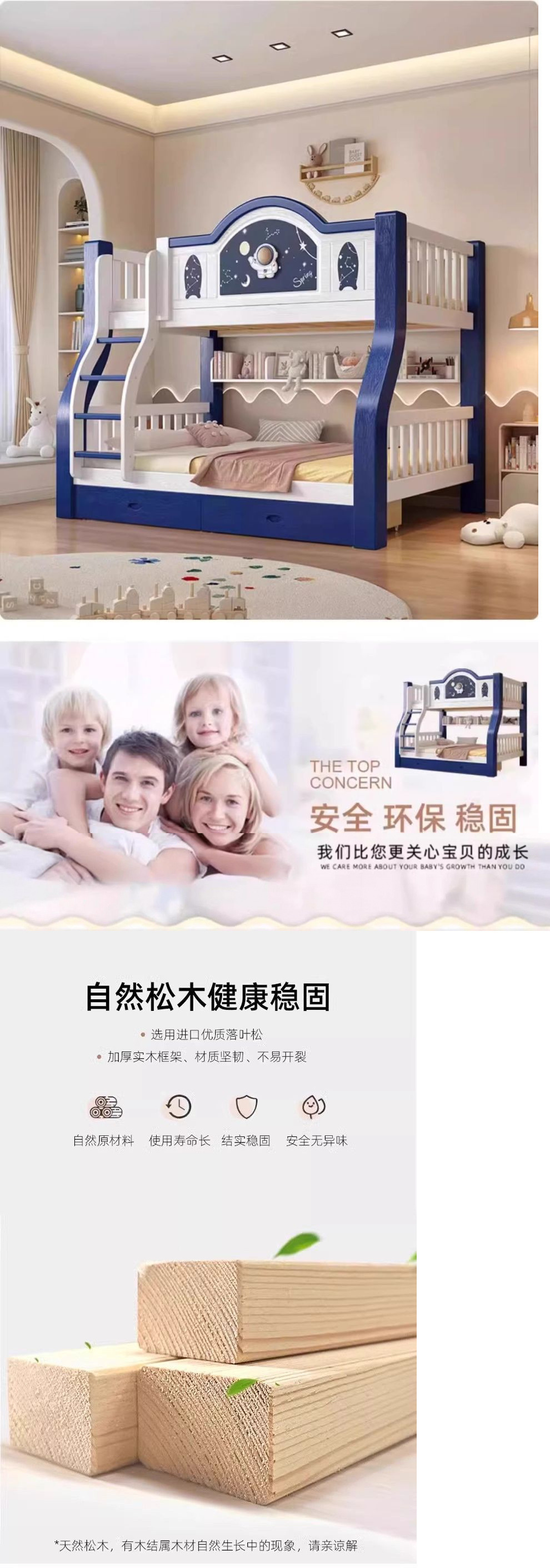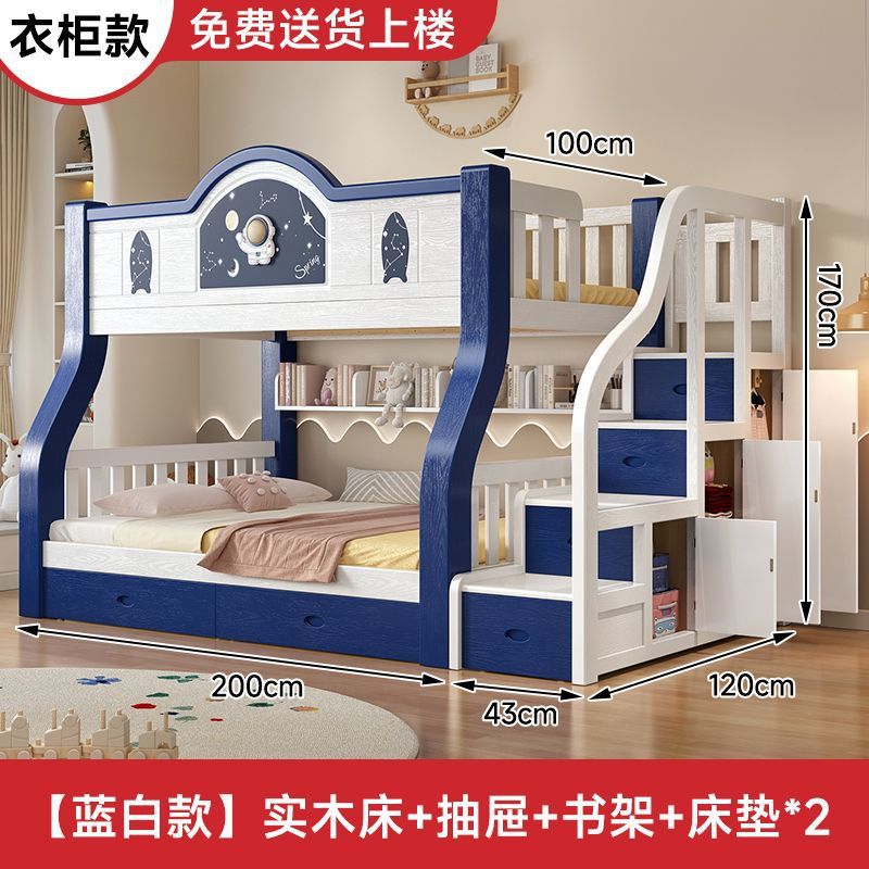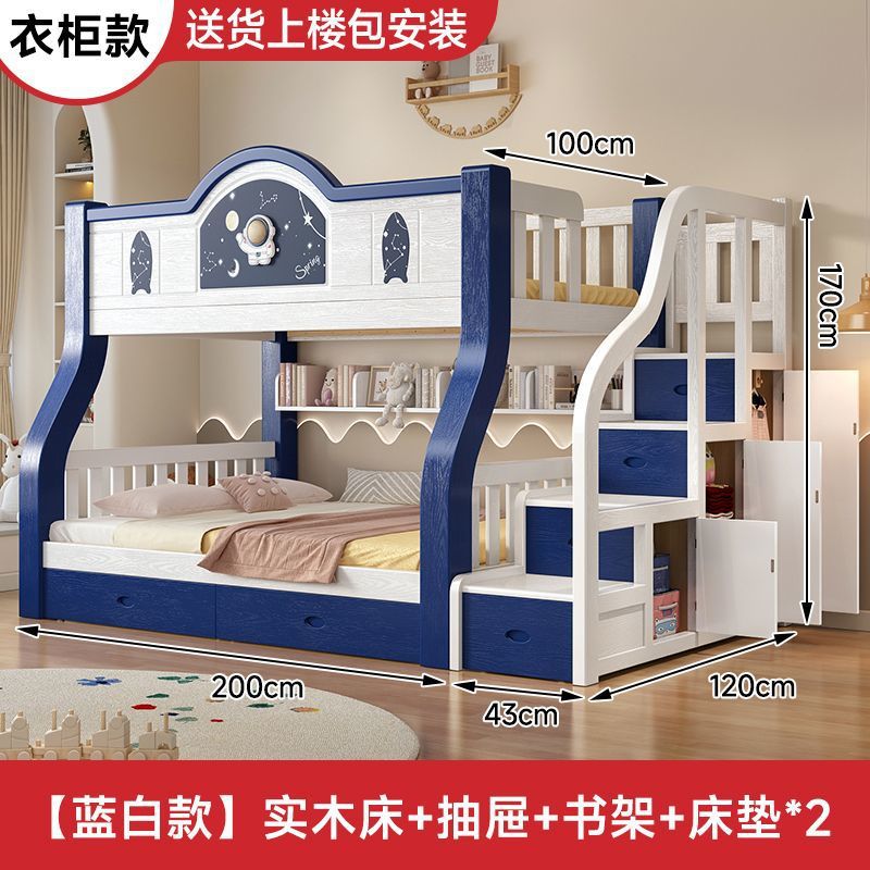 인터넷 연예인 모델 원목 어린이 이층 침대, 2층 높낮이 이층 침대, 소형 가정용 두꺼운 이층 침대스토어 가기
