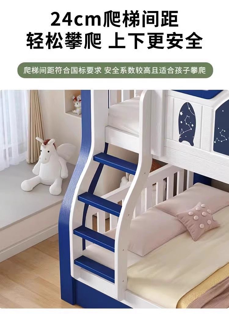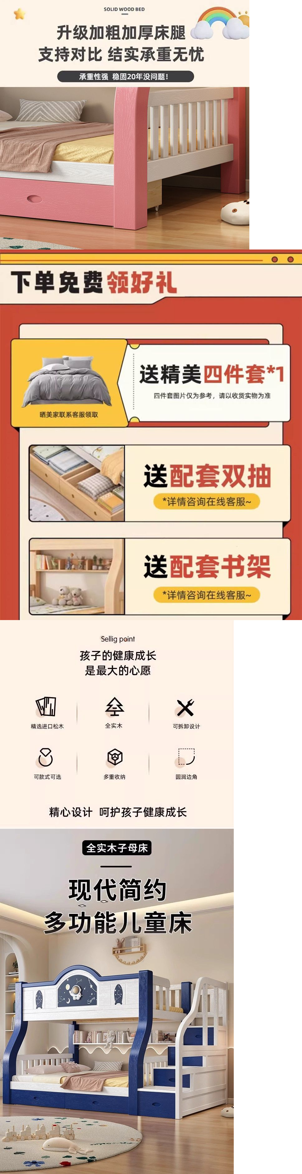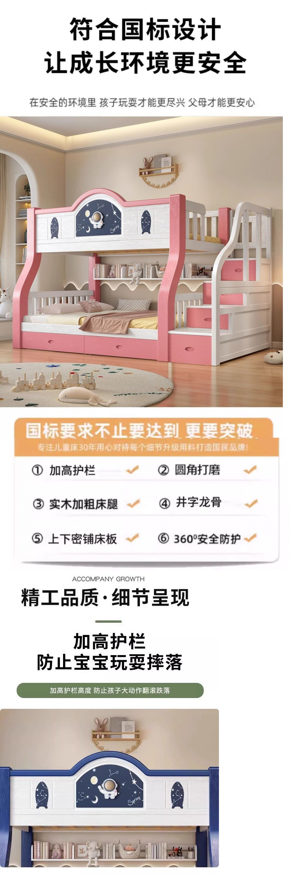 인터넷 연예인 모델 원목 어린이 이층 침대, 2층 높낮이 이층 침대, 소형 가정용 두꺼운 이층 침대스토어 가기