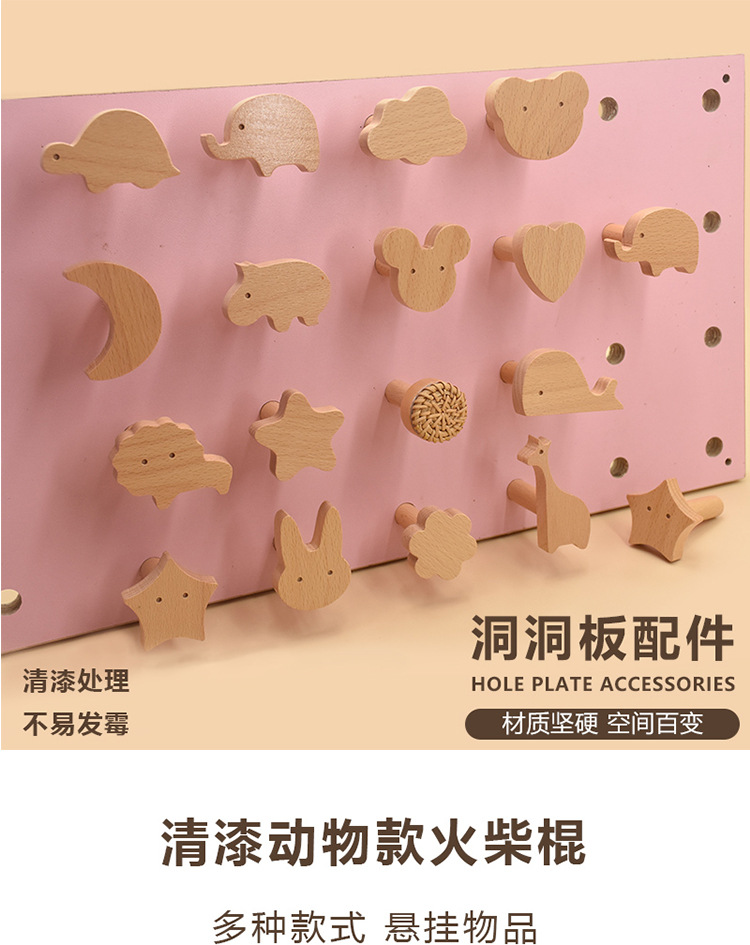 단단한 나무 구멍 보드 액세서리 바니시 동물 성냥개비 범용 작은 나무 막대 펜던트 나무 라미네이트 후크 작은 나무 막대