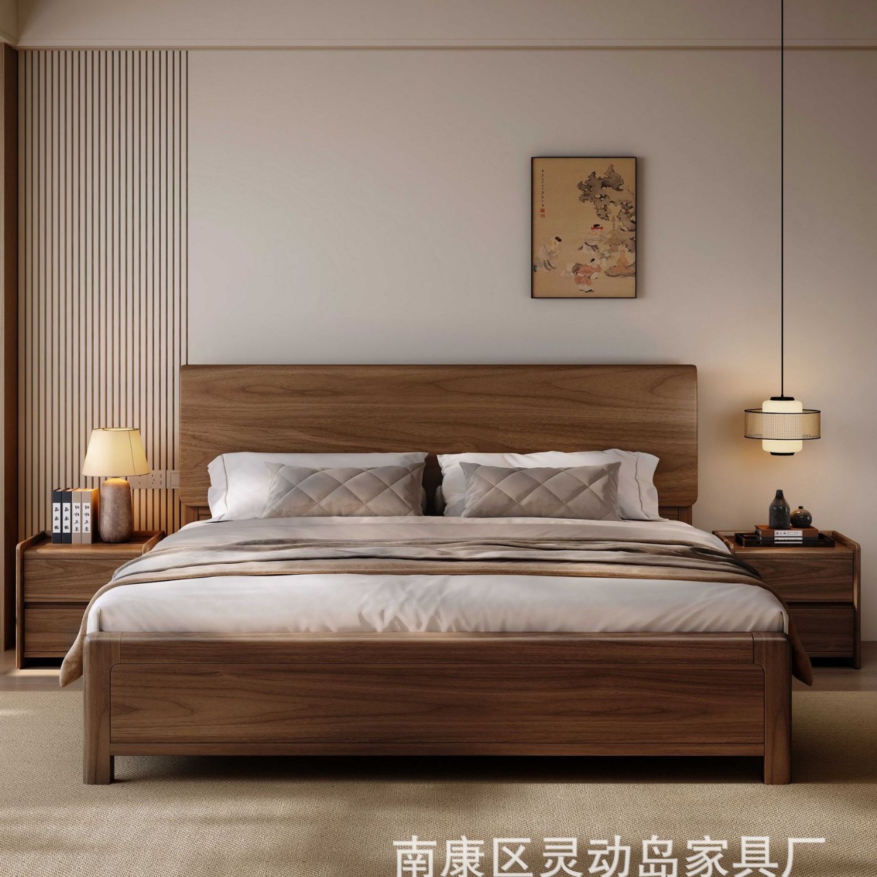 도매 새로운 중국 스타일 검은 호두 나무 전체 단단한 나무 침대 침실 1.8 더블 침대 현대 간단한 홈 스토리지 웨딩 침대