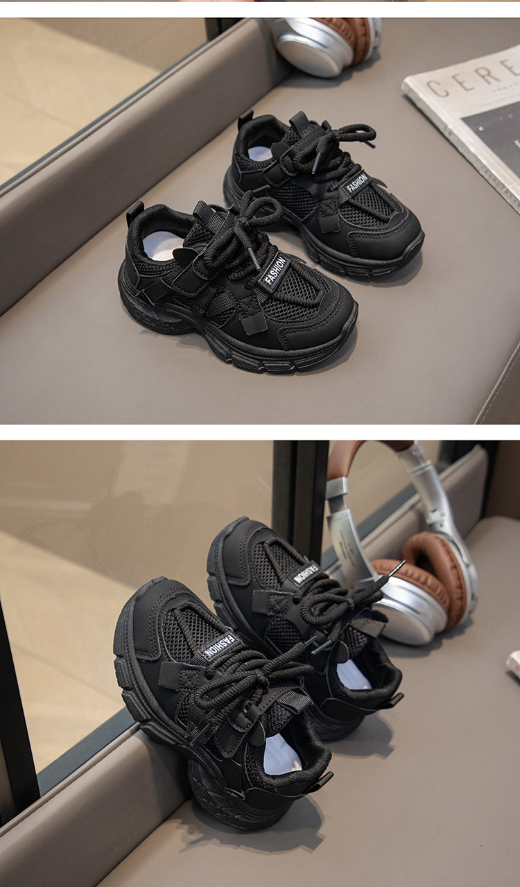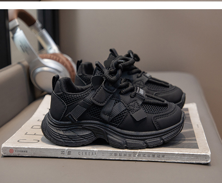 어린이 흰색 신발 소녀 운동화 메쉬 통기성 봄과 가을 새로운 스타일 중대형 어린이 소년 캐주얼 운동화 검정색