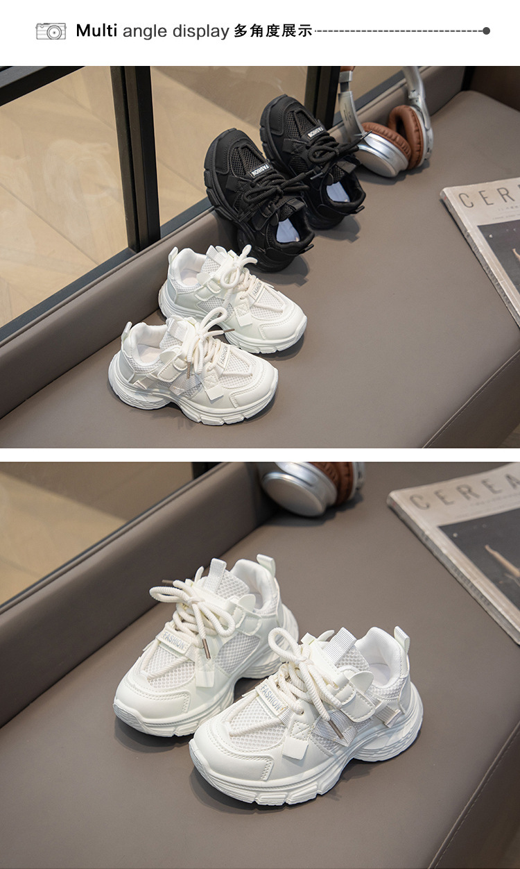어린이 흰색 신발 소녀 운동화 메쉬 통기성 봄과 가을 새로운 스타일 중대형 어린이 소년 캐주얼 운동화 검정색스토어 가기