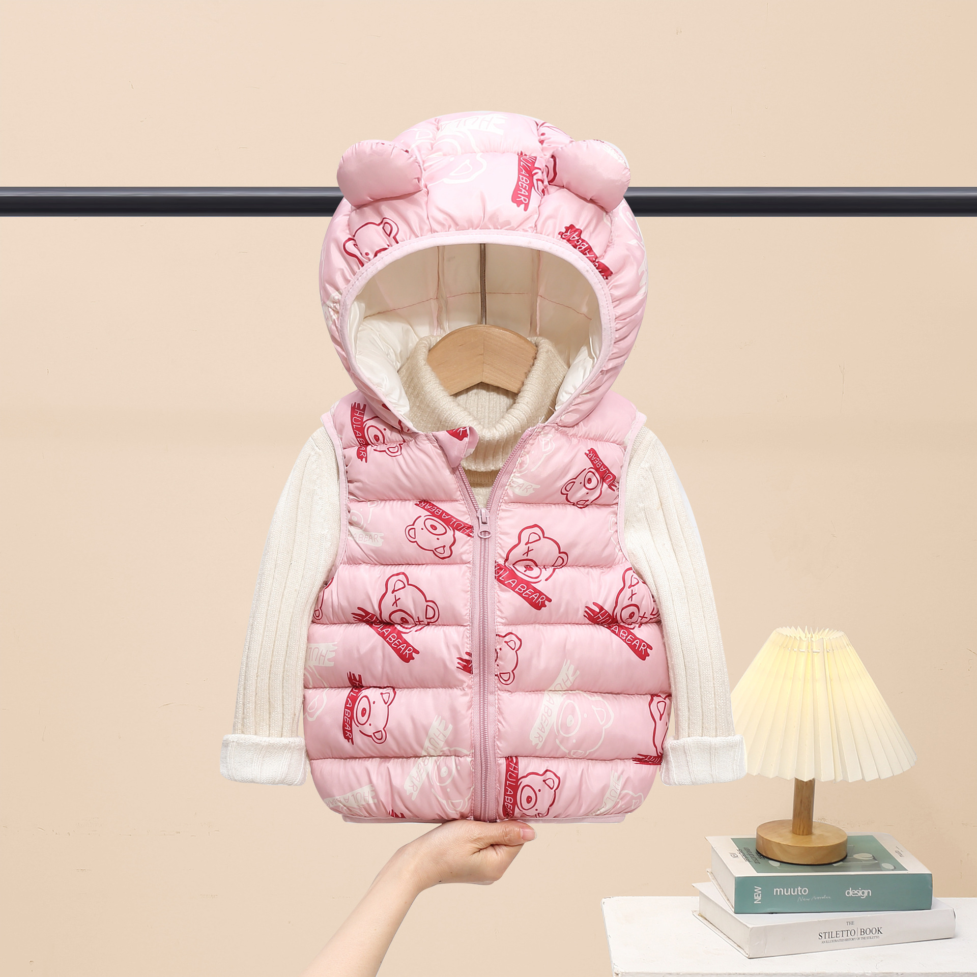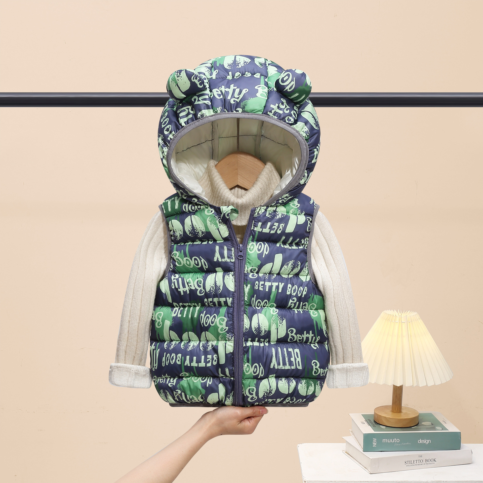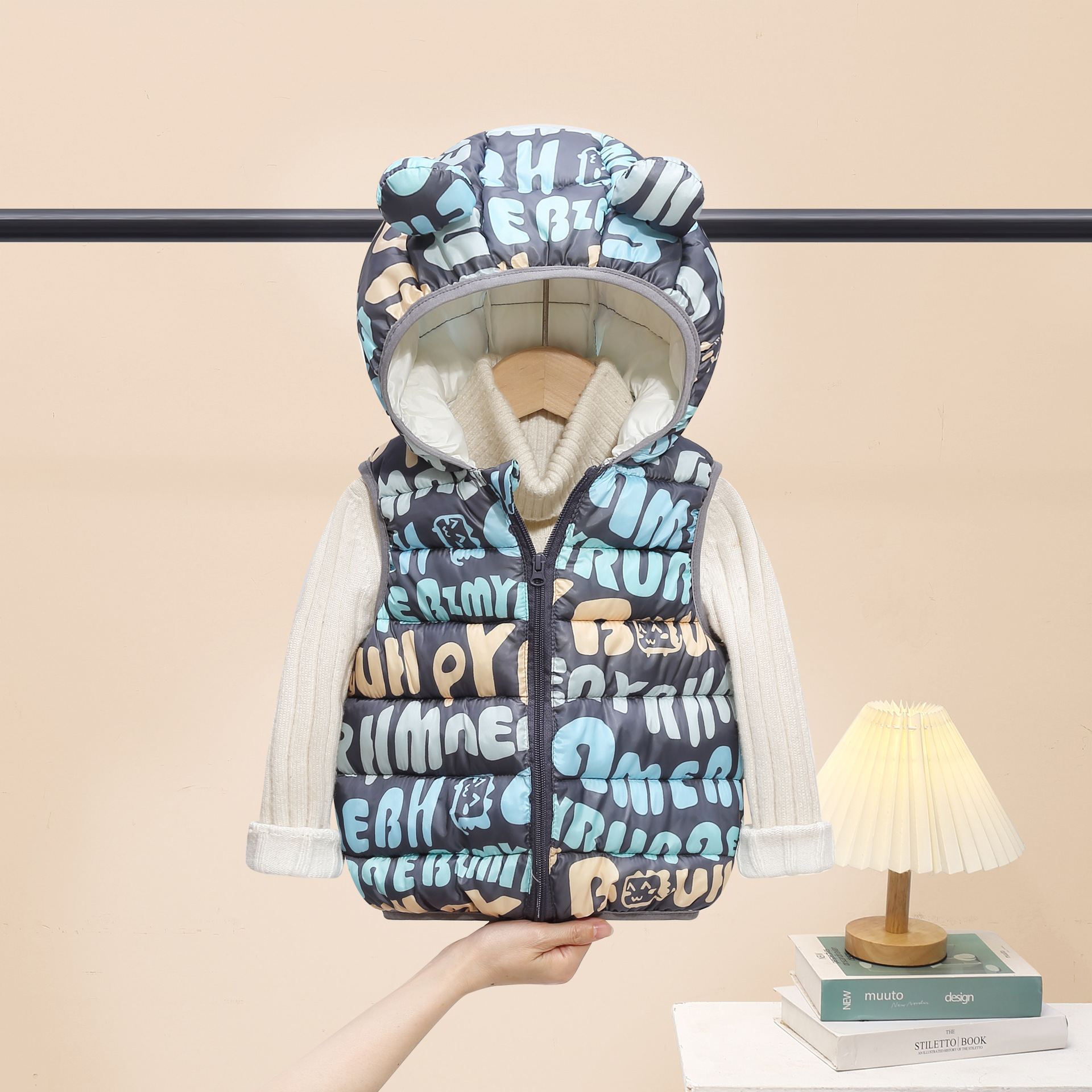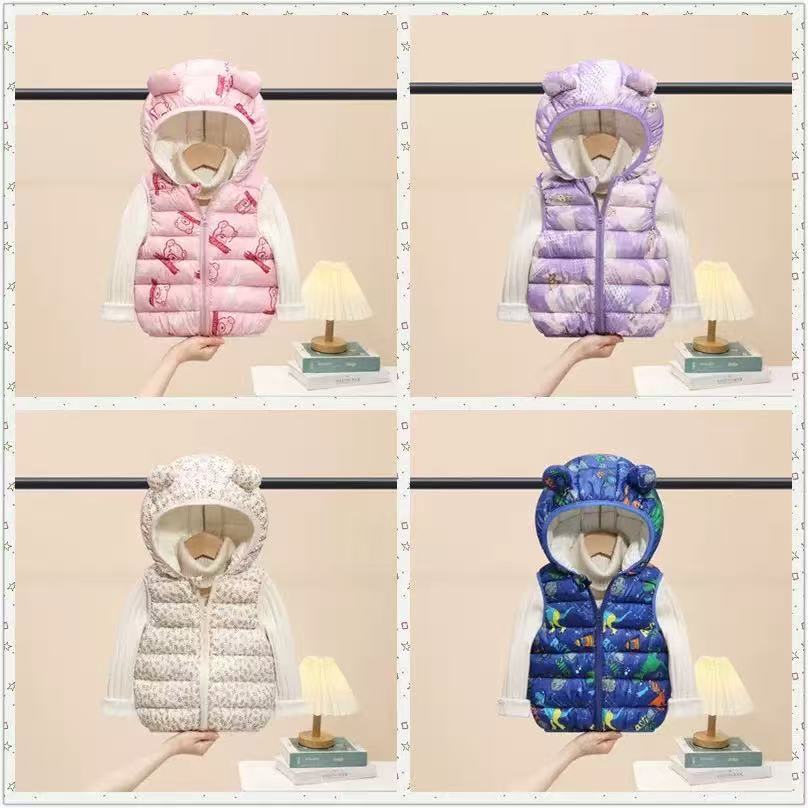 2025 새로운 가을, 겨울 만화 스타일 어린이 다운 코튼 조끼 소년과 소녀 면화 코트 중소 어린이 짧은 코트스토어 가기