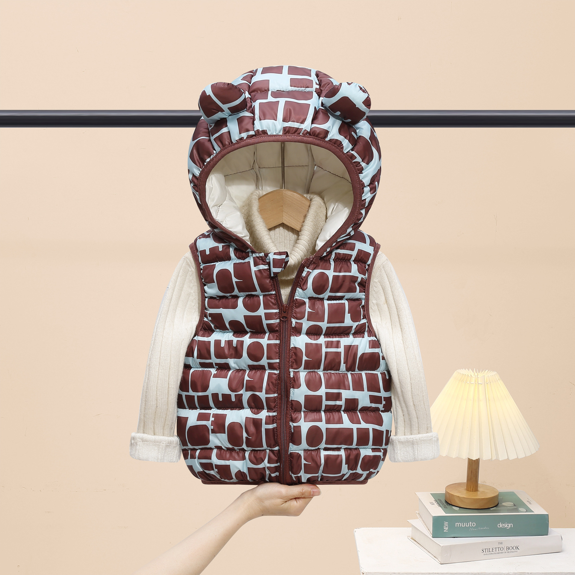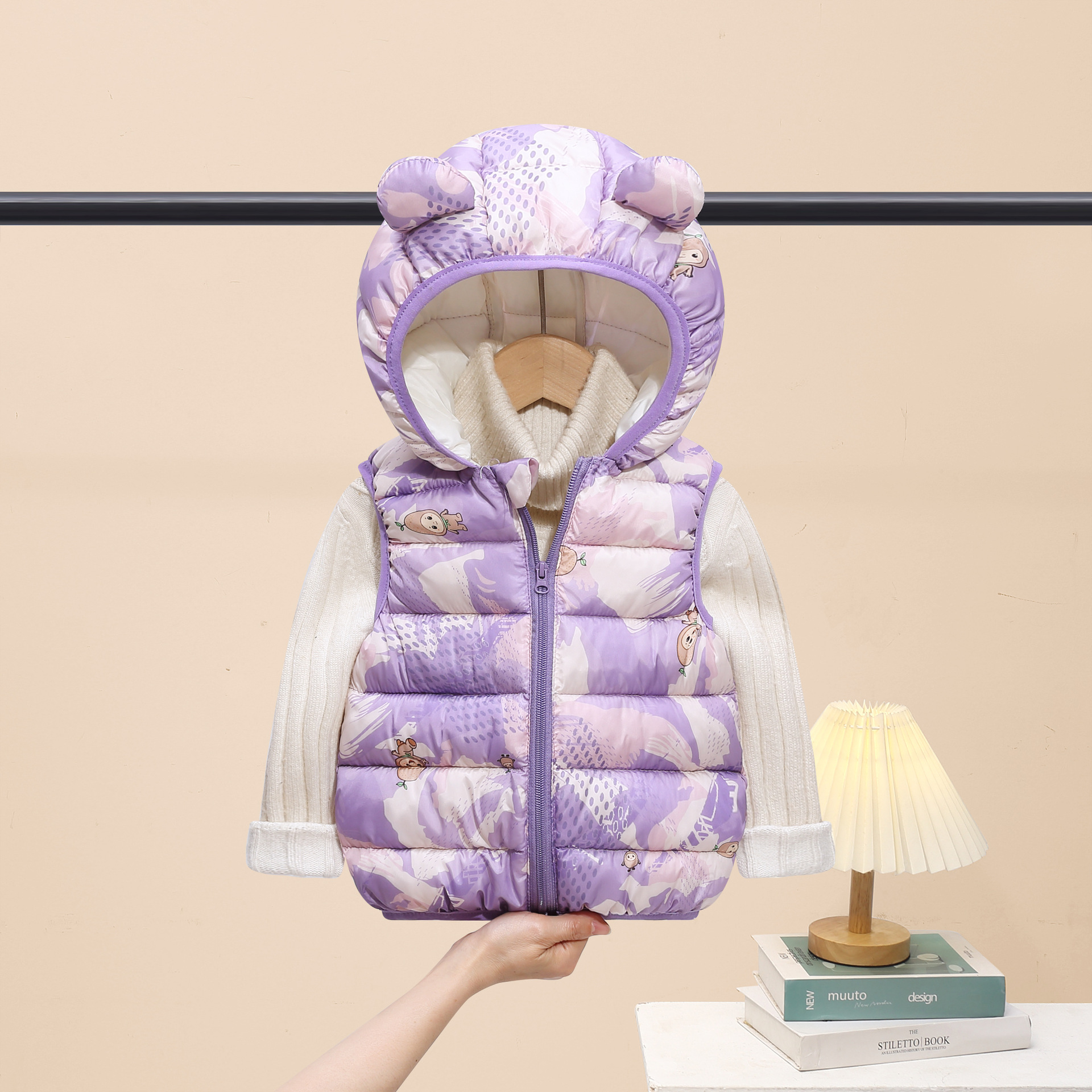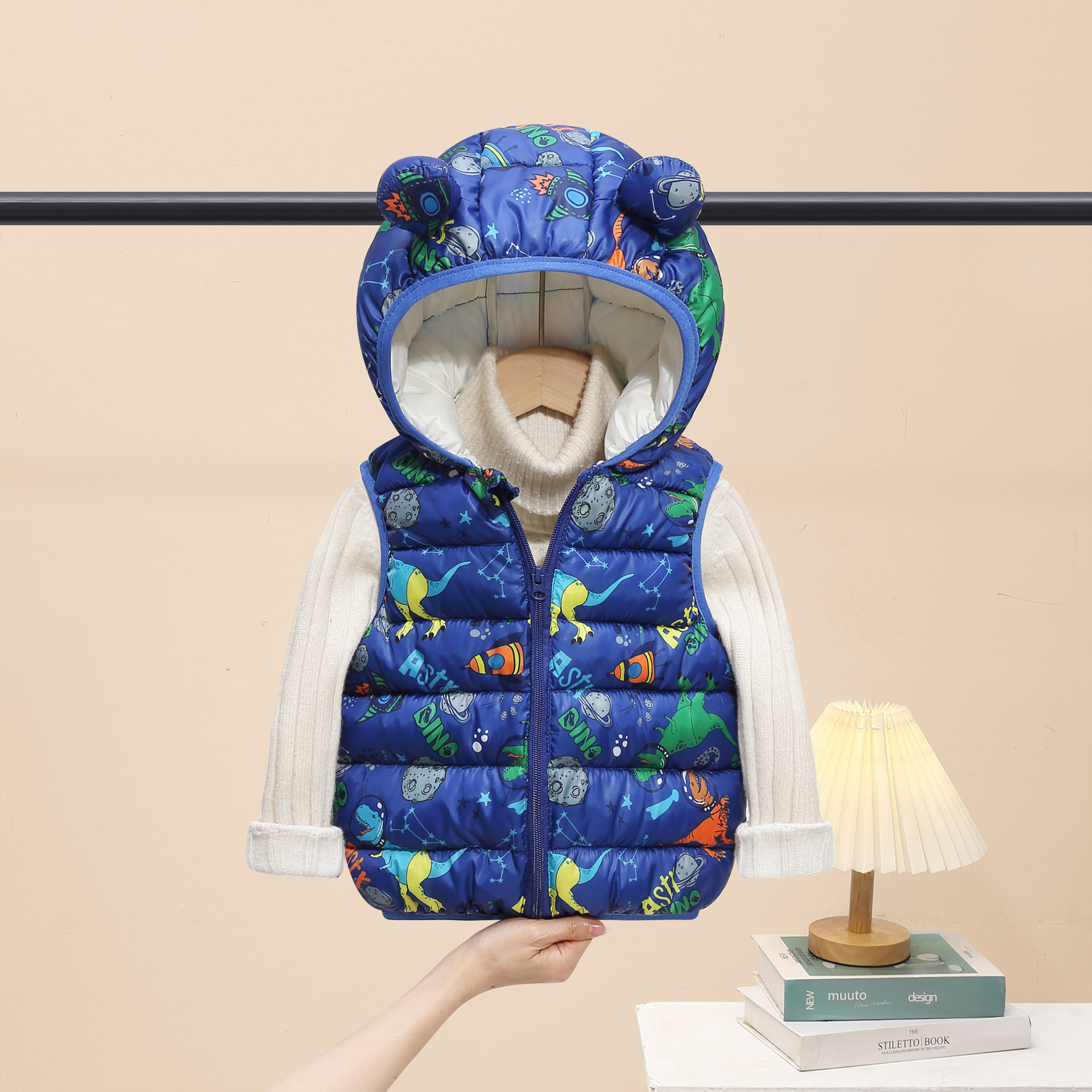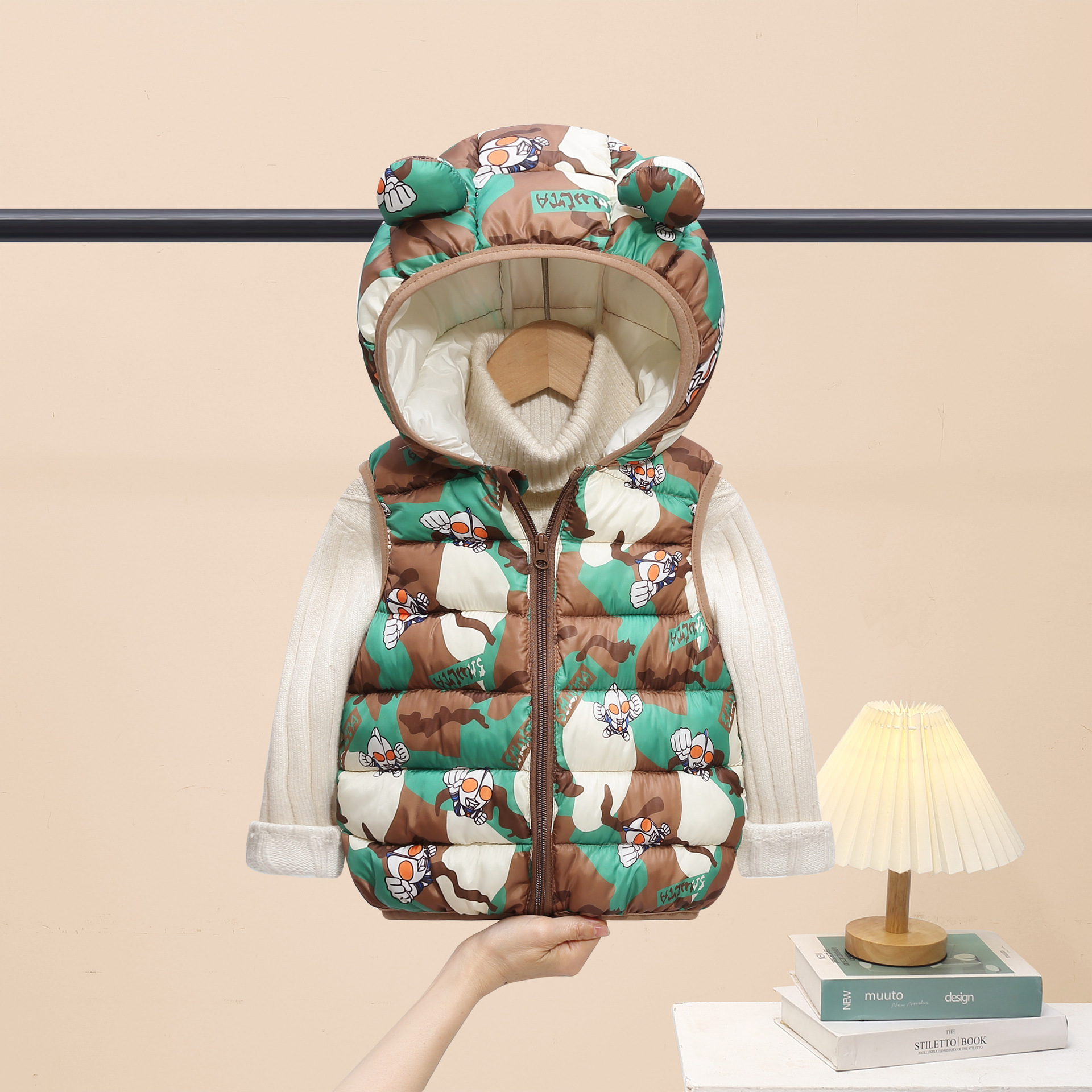 2025 새로운 가을, 겨울 만화 스타일 어린이 다운 코튼 조끼 소년과 소녀 면화 코트 중소 어린이 짧은 코트스토어 가기
