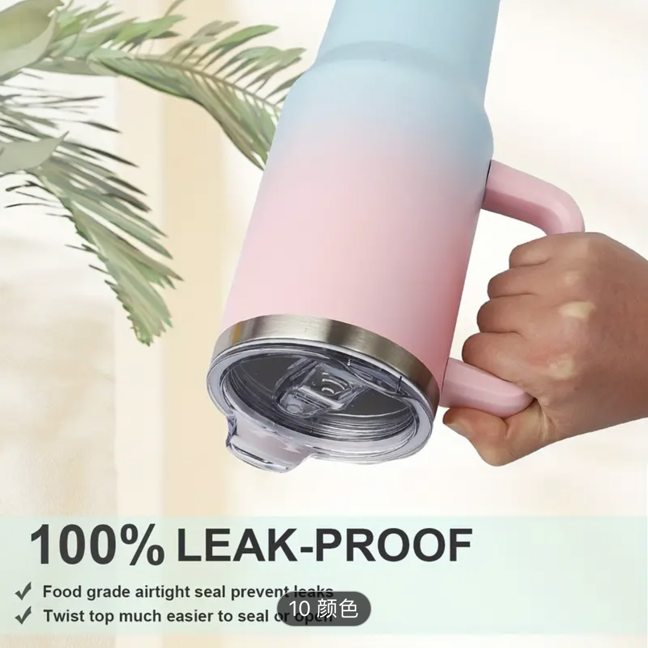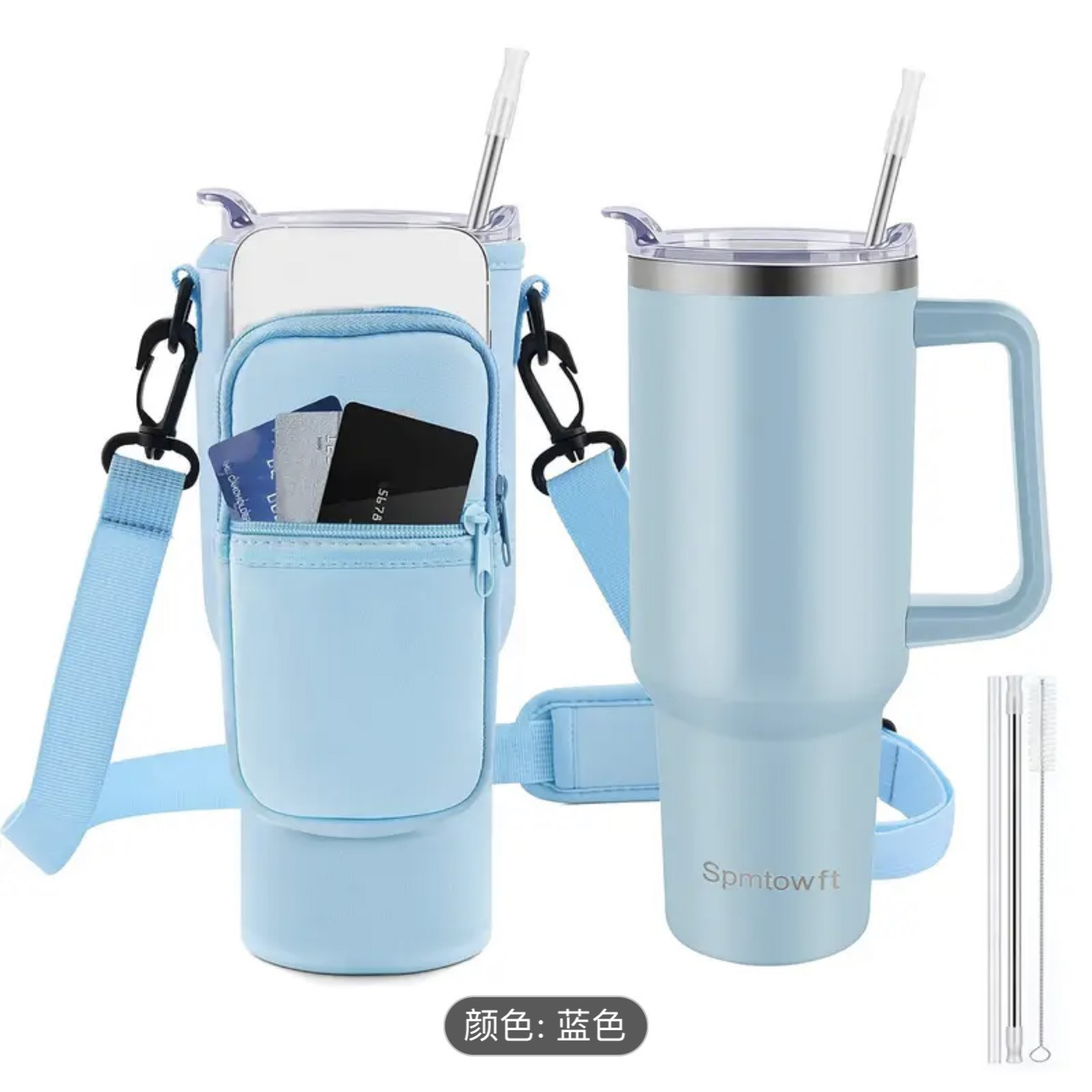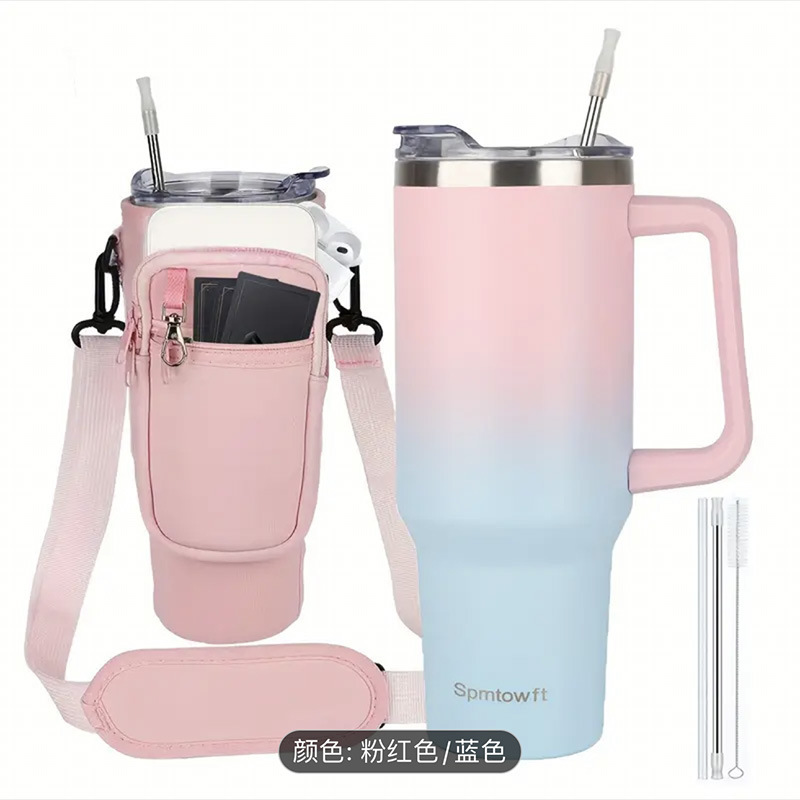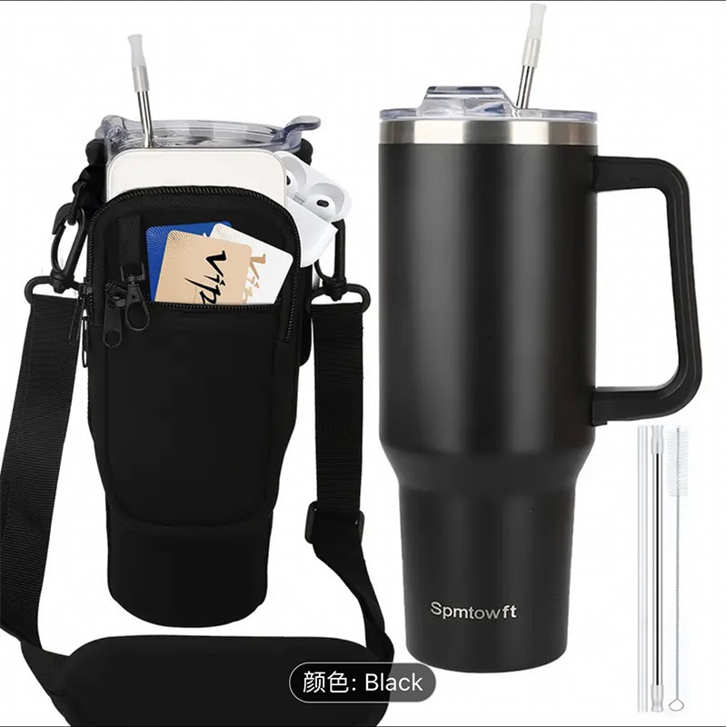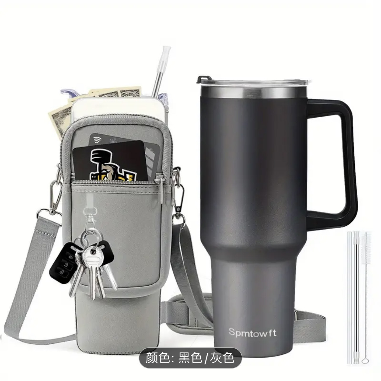 40온스 손잡이 빨대컵(가방 포함) 대용량 차량용 컵 물컵 스테인리스 보온컵