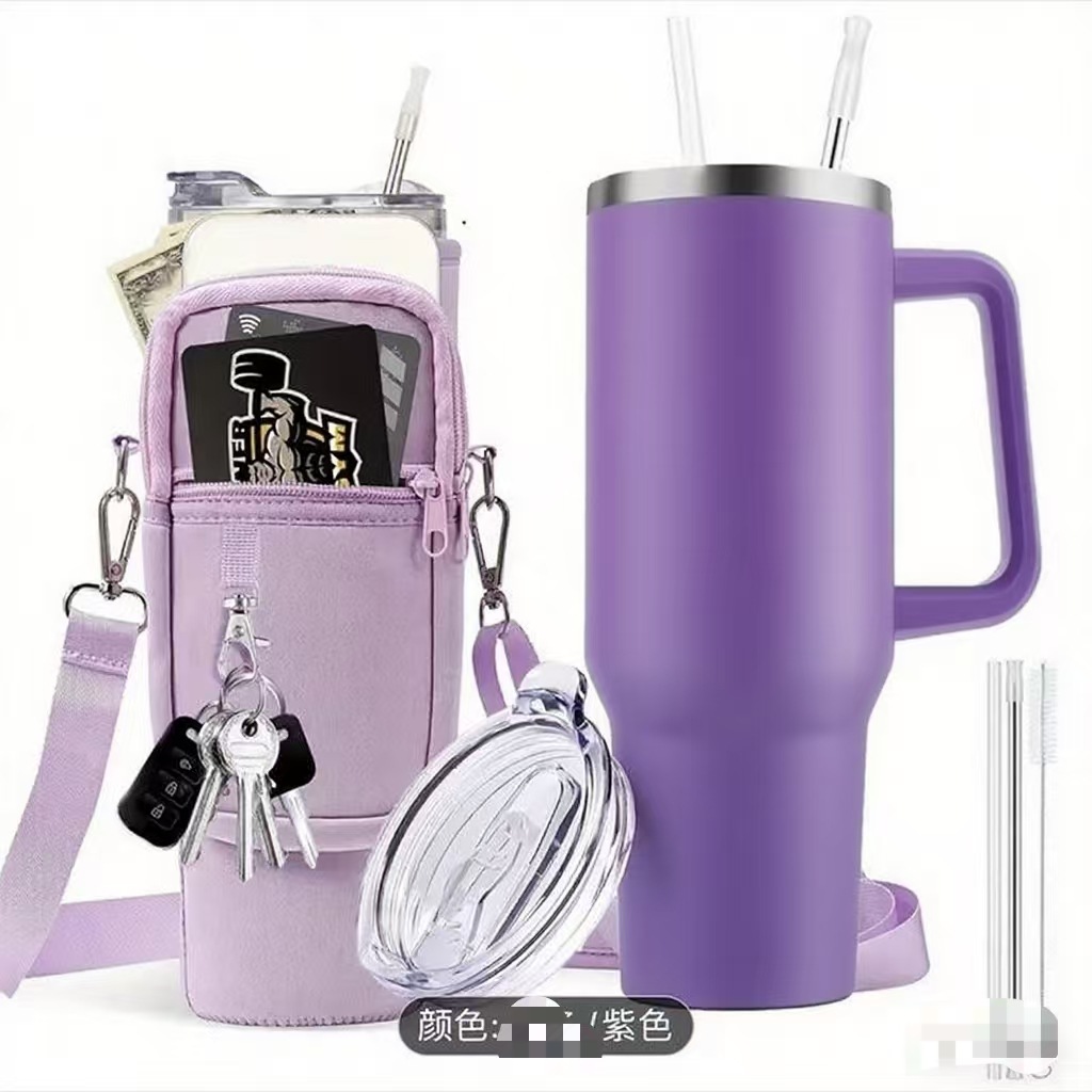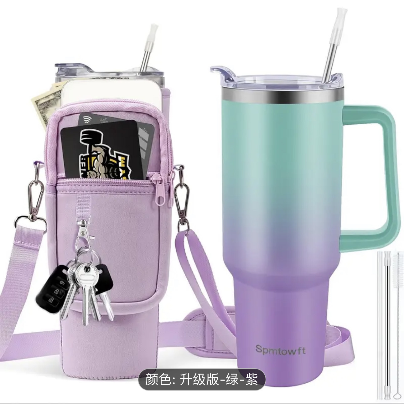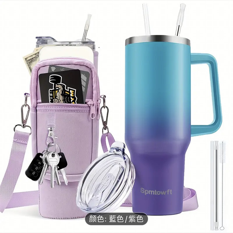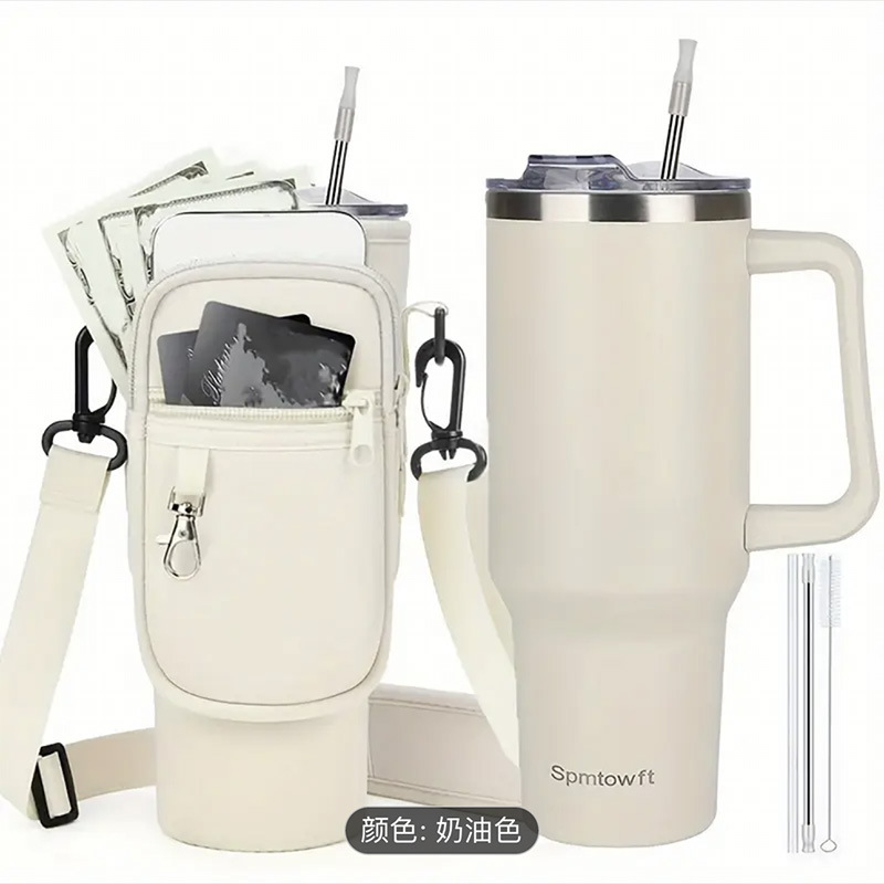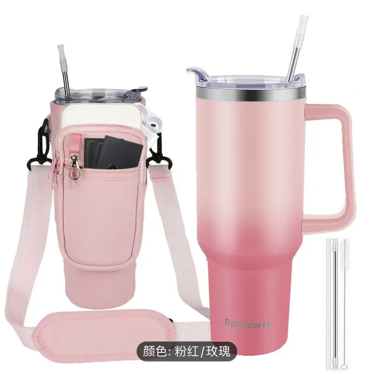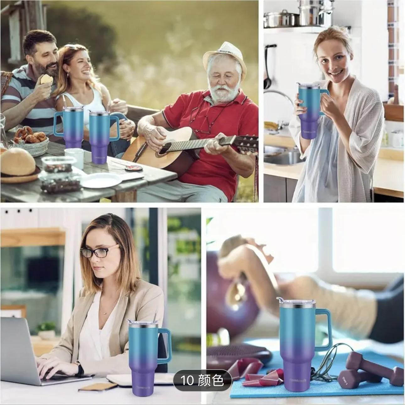 40온스 손잡이 빨대컵(가방 포함) 대용량 차량용 컵 물컵 스테인리스 보온컵