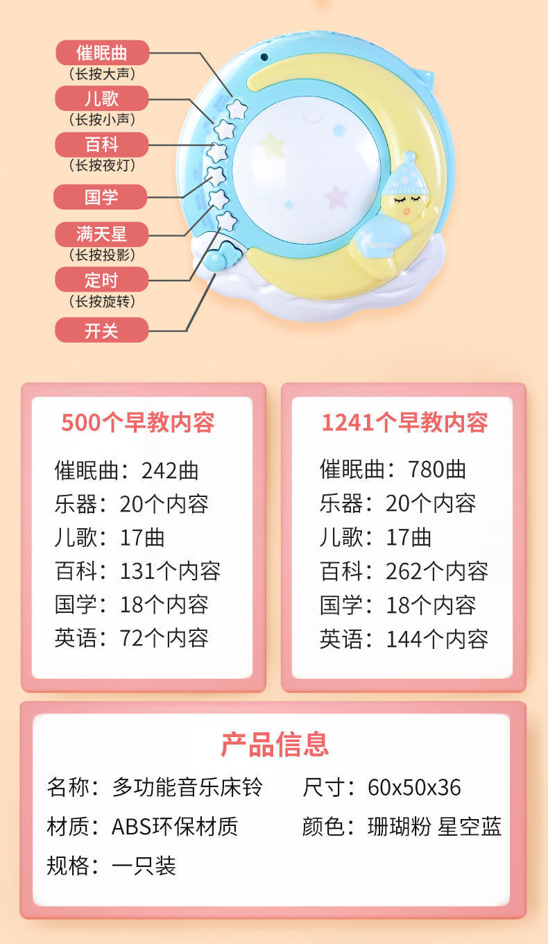 新生婴儿床铃0-1岁3-12个月男女宝宝玩具音乐旋转摇铃床头铃挂件