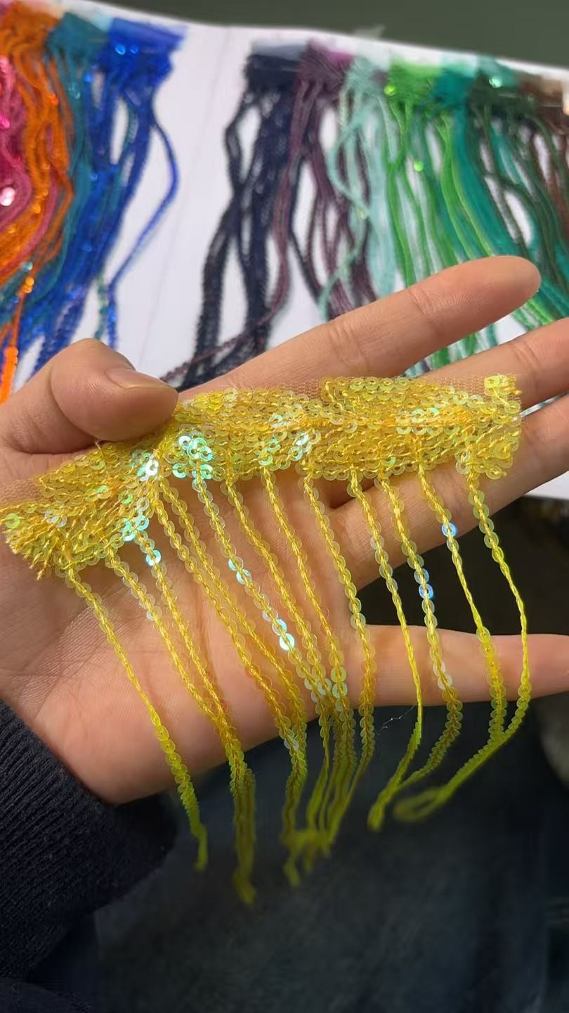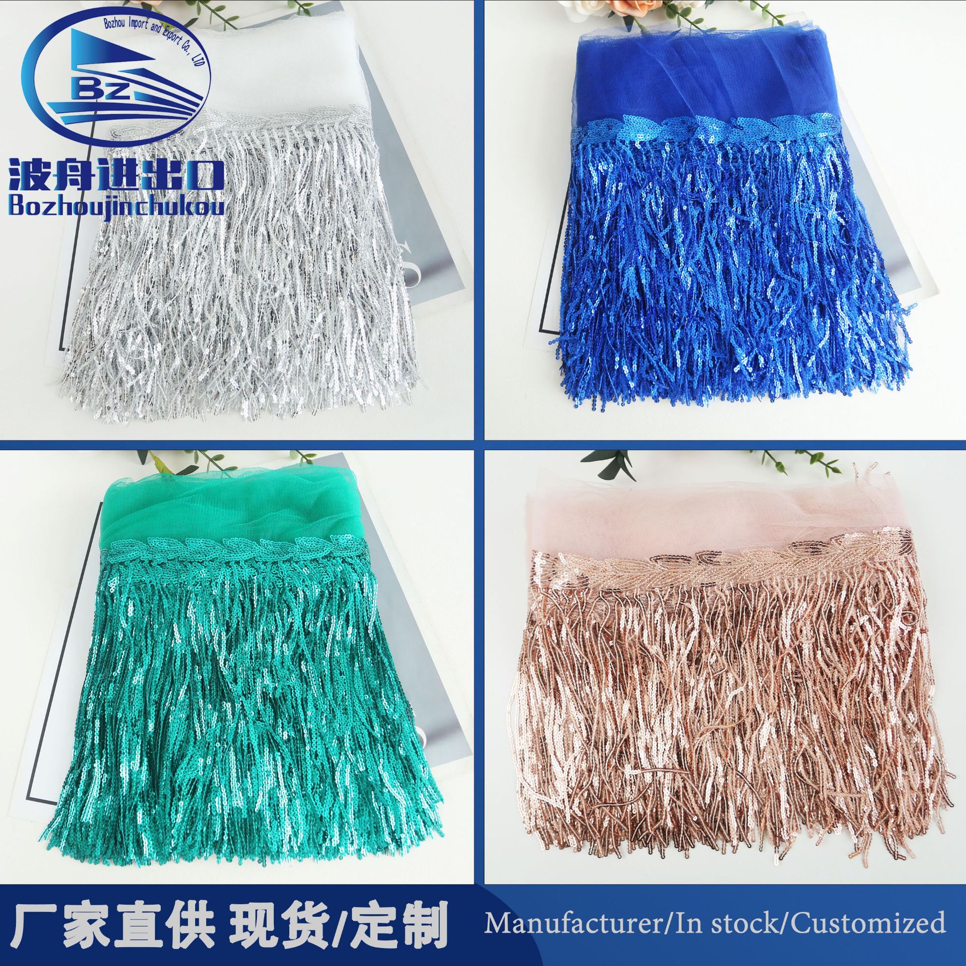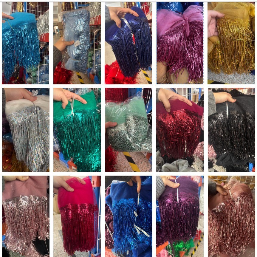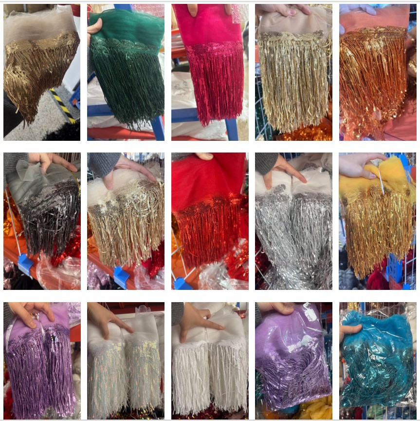 Minyu 멀티 컬러 스팽글 태슬 레이스 DIY 공장 직접 공급 라틴 댄스 스커트 스팽글 수염 레이스 액세서리