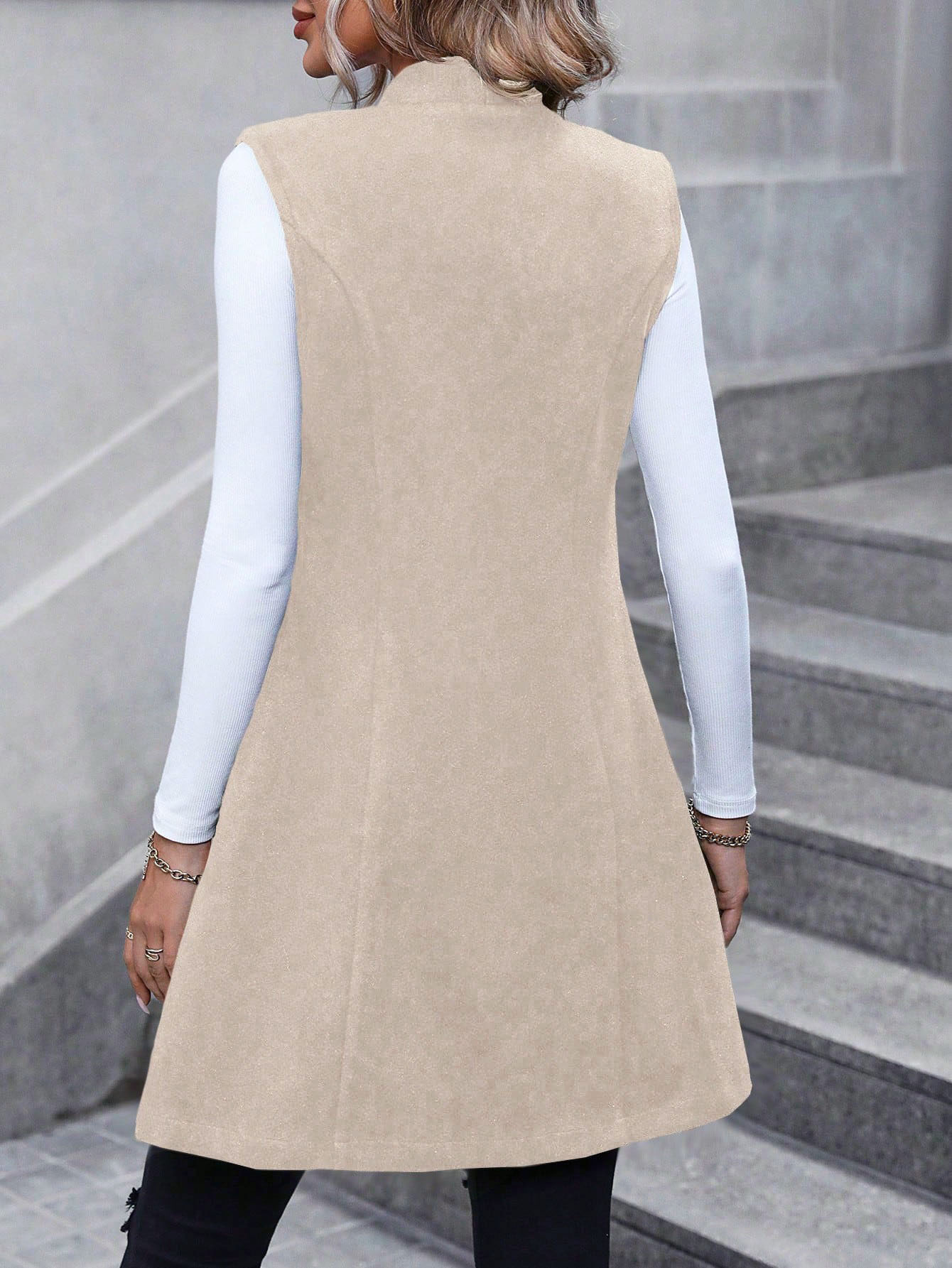 유럽과 미국의 2025 가을 겨울 아마존 국경 간 패션 새로운 모직 정장 조끼 우아한 민소매 재킷 여성