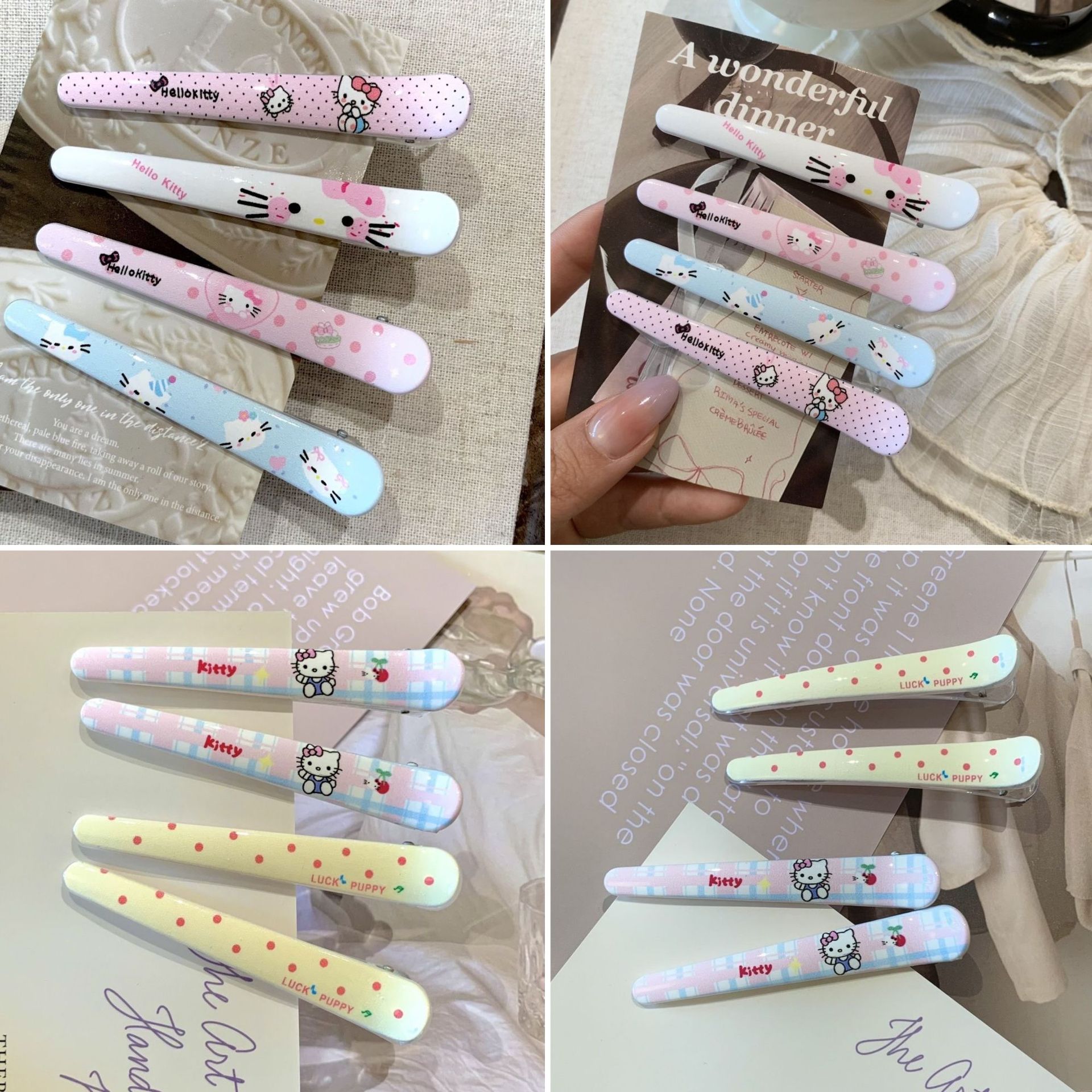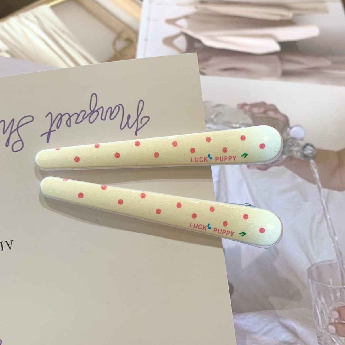 • 핑크색 검은 점으로 칠해진 고양이 머리핀
