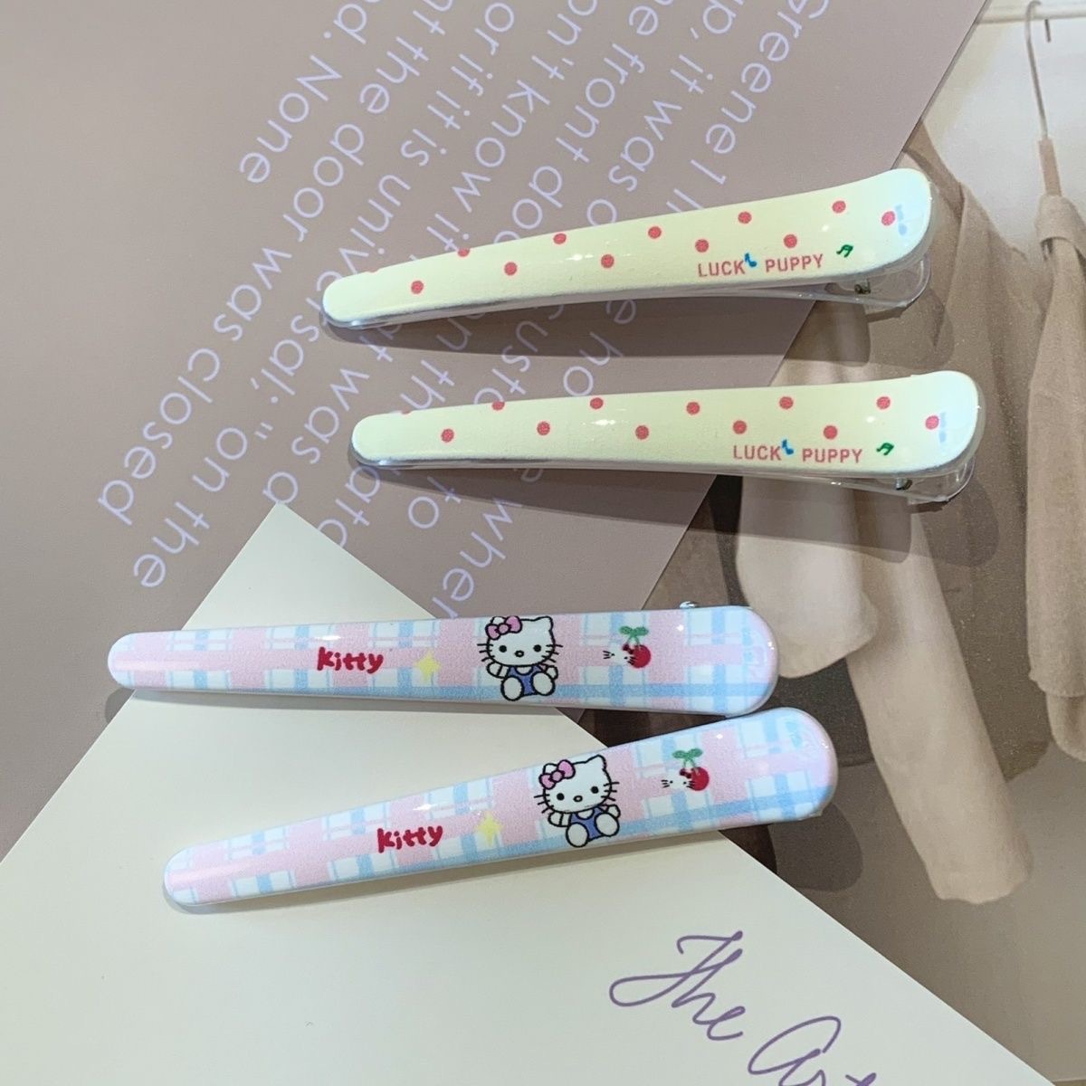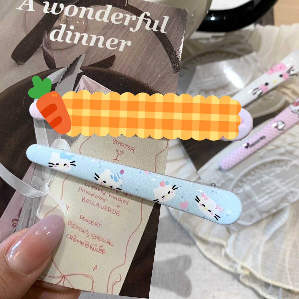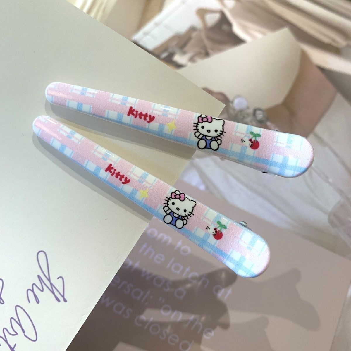 • 그려진 격자 무늬 고양이 머리핀