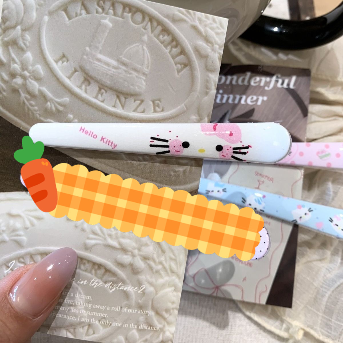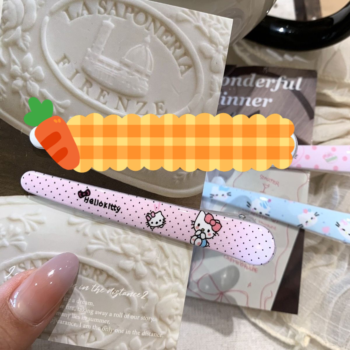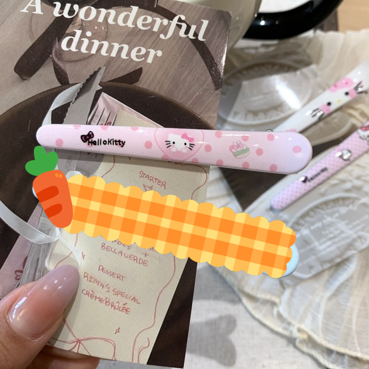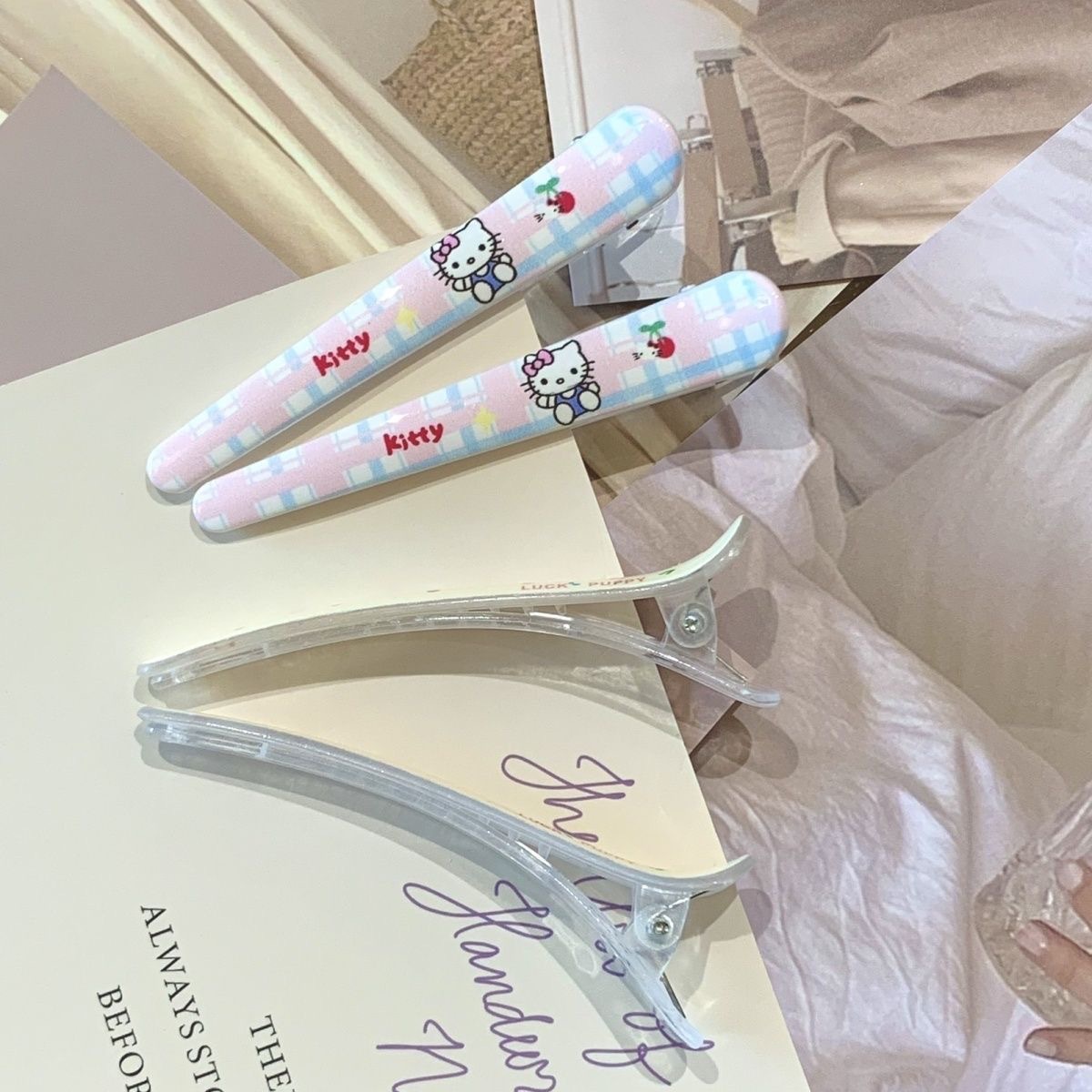 • 그려진 격자 무늬 고양이 머리핀