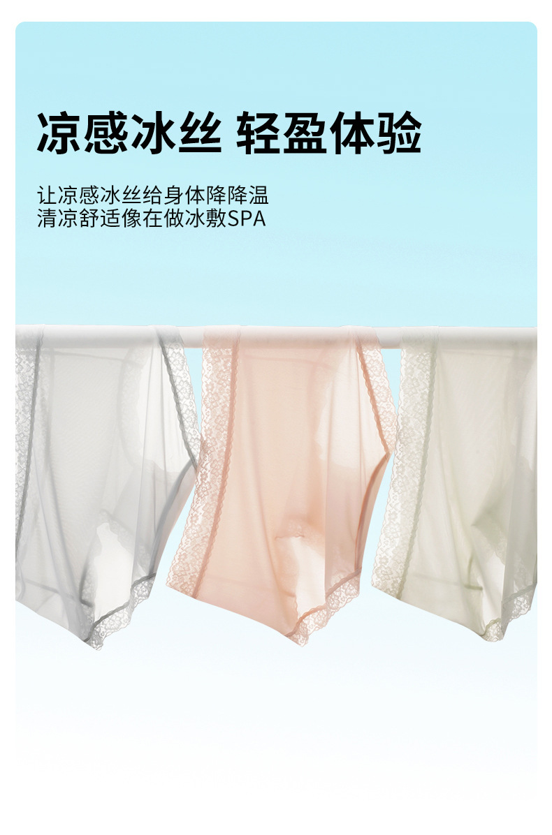 여름용 여성용 아이스 실크 속옷, 얇고 중간 높이, 편안하고 통기성이 좋은 삼각 반바지, 면 가랑이 폴리락트산 여성용 속옷, 항균스토어 가기