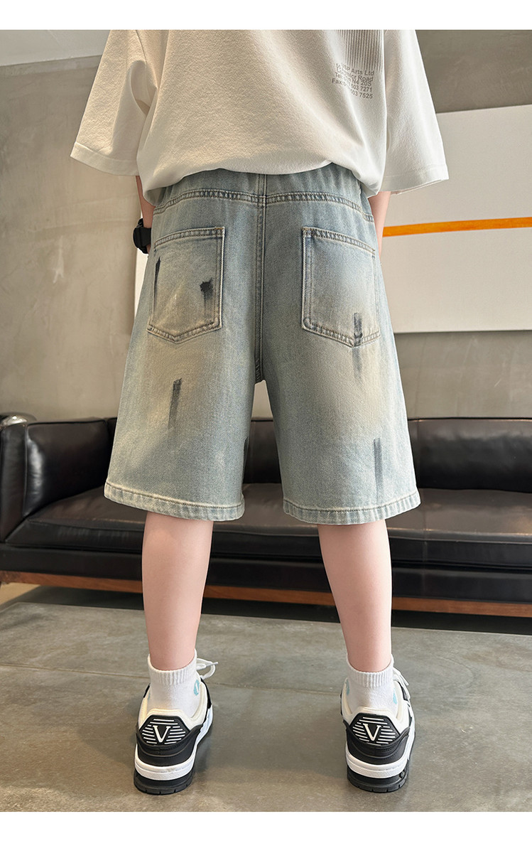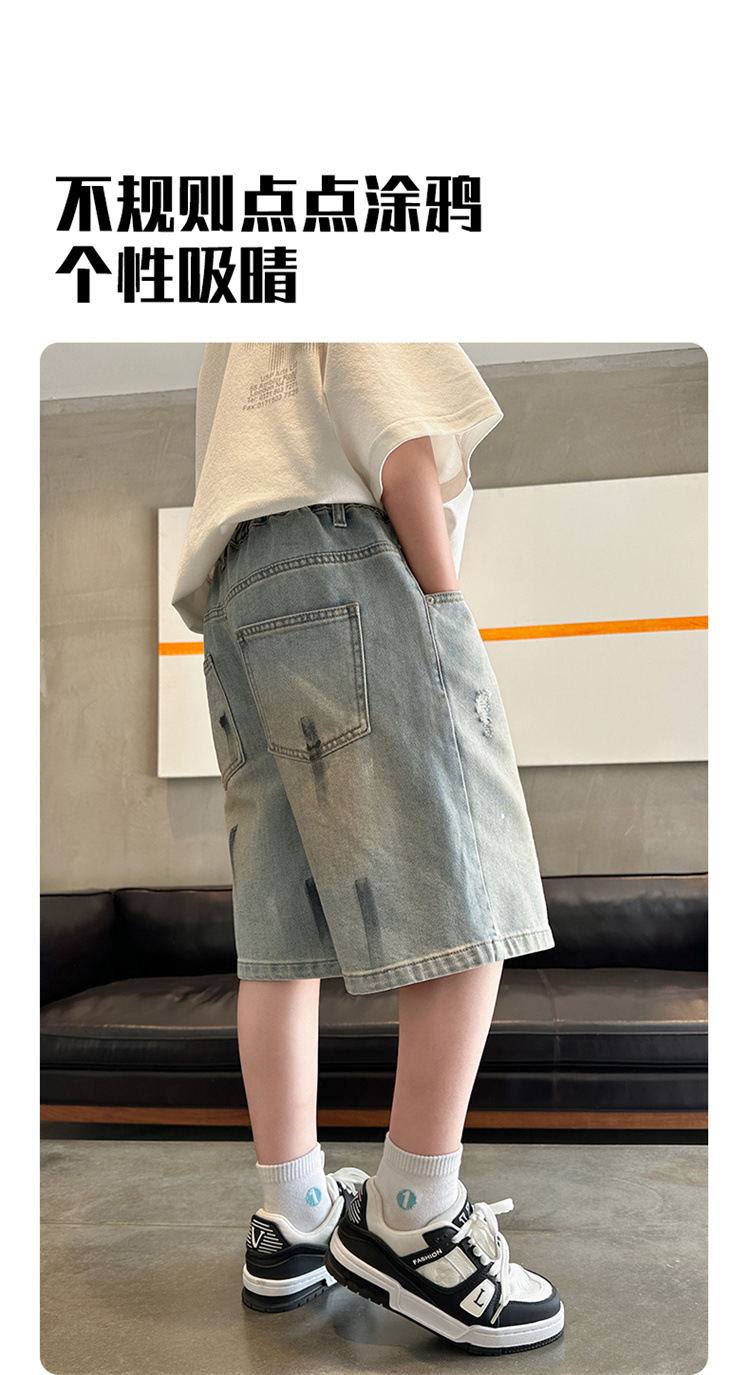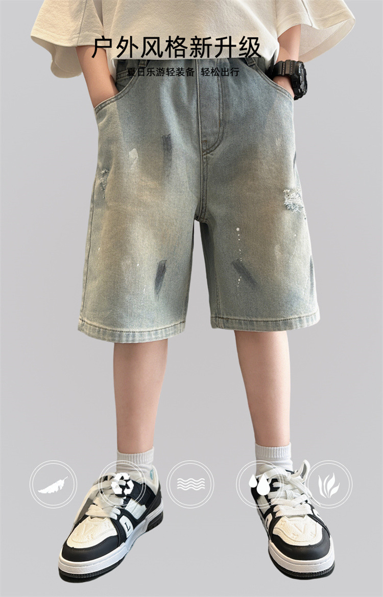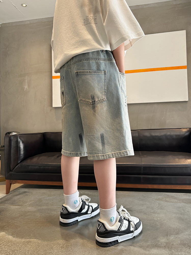 대외 무역 소년 여름 데님 반바지 찢어진 패셔너블한 큰 어린이 트렌디하고 멋진 5부 바지 소년의 멋진 캐주얼 중간 바지스토어 가기
