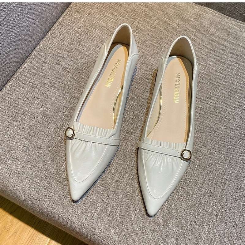 여성을위한 브랜드 포인티드 토 슈즈 2025 가을 새로운 프랑스 패션 다목적 기질 낮은 굽 두꺼운 굽 신발