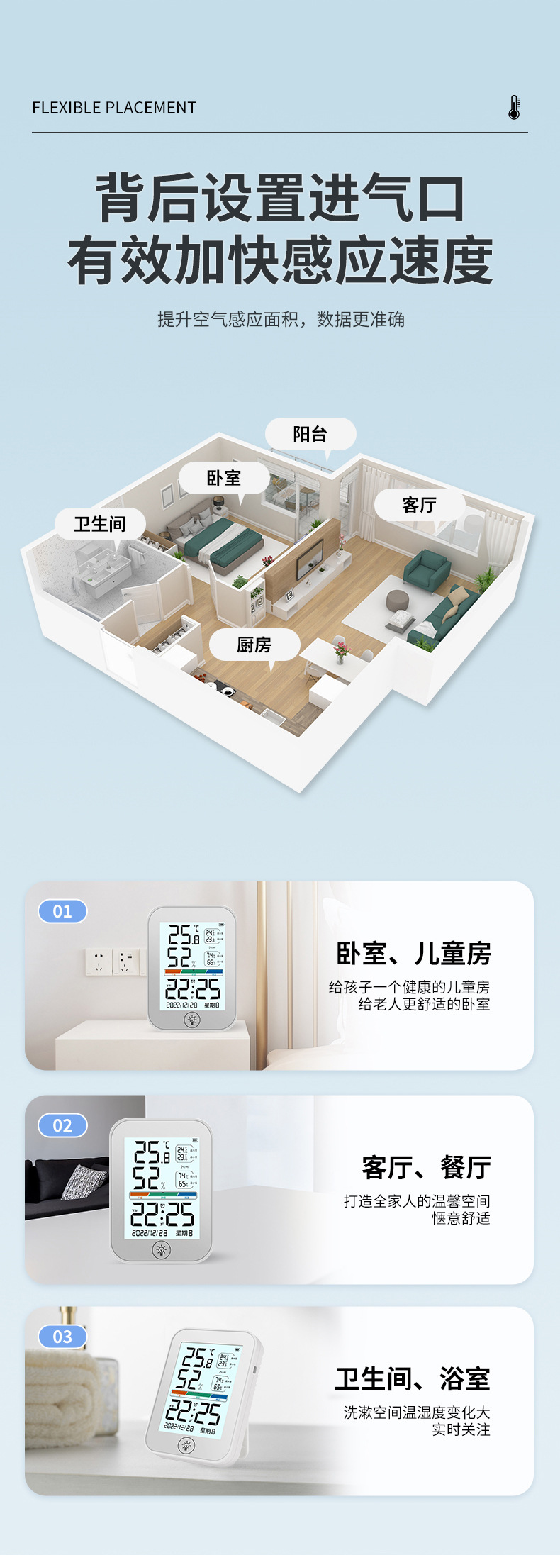새로운 컬러 스크린 온도 및 습도 측정기는 걸고 세울 수 있으며, 알람 시계가 있는 고화질 대형 스크린 온도계는 다기능 온도 및 습도 측정을 정확하게 측정합니다.