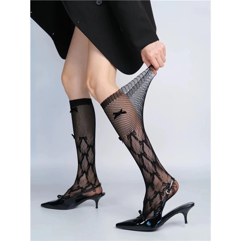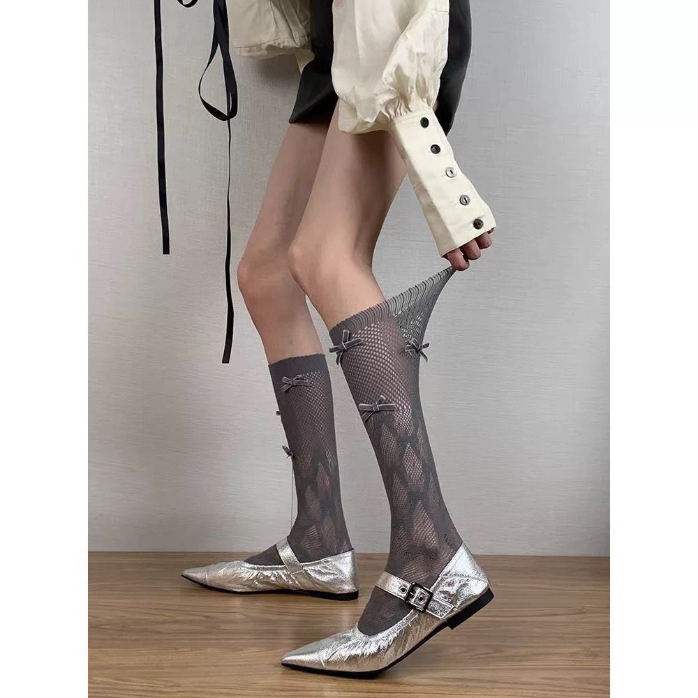 "브라운은 너무 좋아요" 한국 스타일의 여름 트렌드인 여성을 위한 게으른 리본 슬리밍 중공 종아리 양말