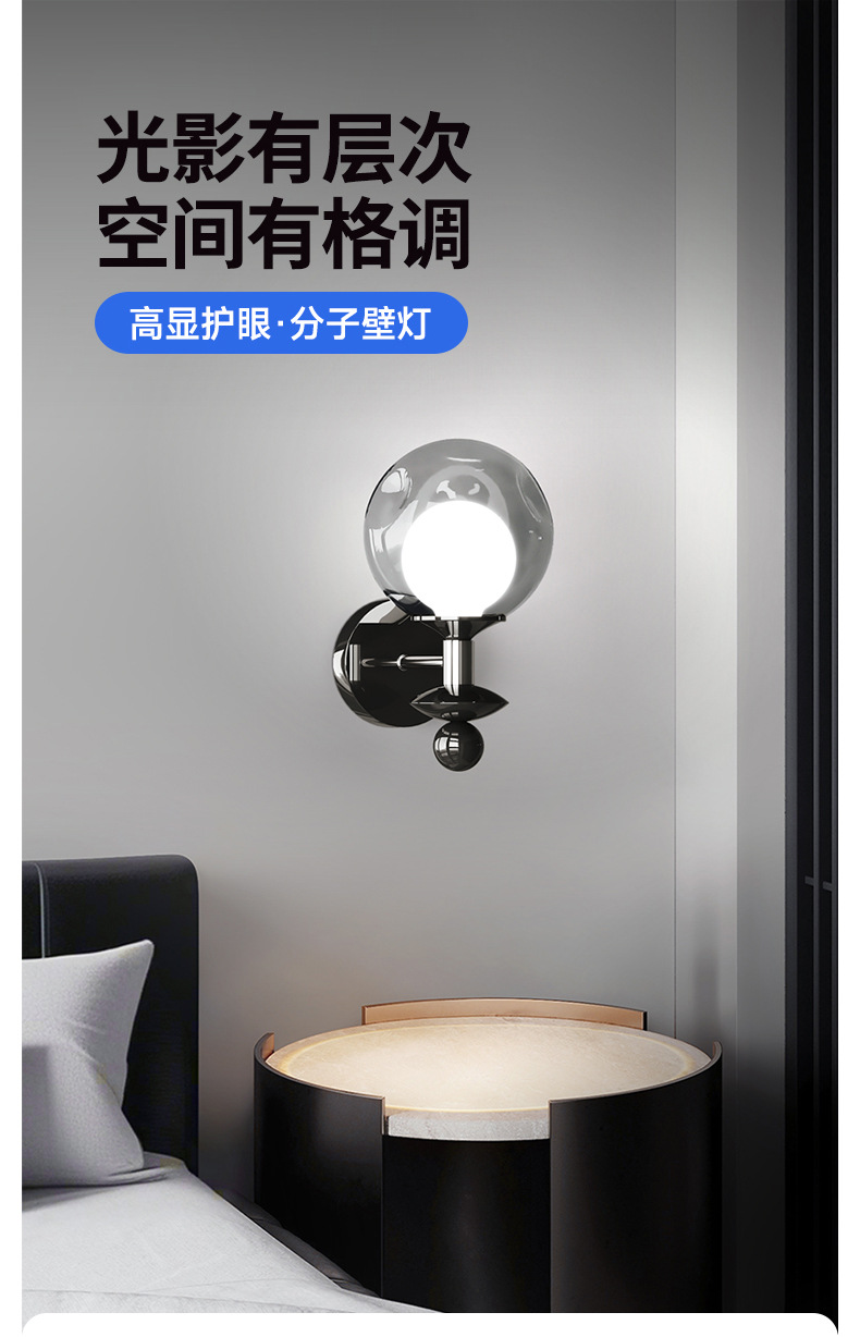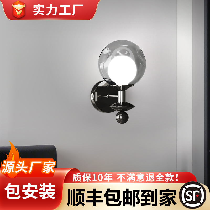 새로운 2025 침대 옆 벽 램프 침실 통로 램프 어린이 방 벽 램프 전체 스펙트럼 눈 보호 유리 창조적 인 분위기 램프스토어 가기